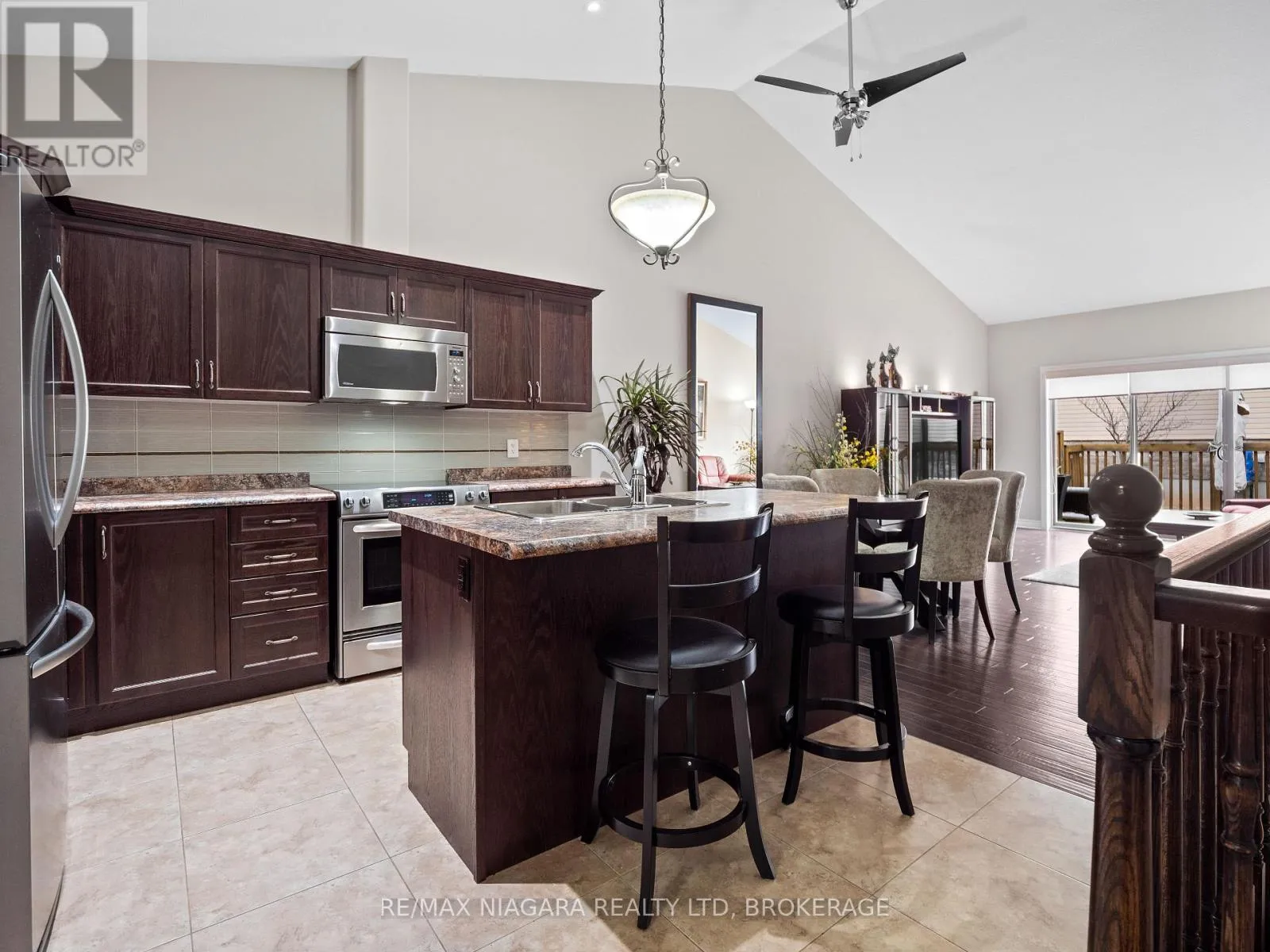 Cross Streets: Garner Rd and Hendershot Blvd. ** Directions: Garner Rd to Hendershot to Osprey to Eagle Ridge. Nestled in the sought-after Fernwood Estates, this beautiful end-unit bungalow townhouse offers a perfect blend of style and functionality with 3 bedrooms and 3 full bathrooms. The main floor features an airy, open-concept design anchored by vaulted ceilings and a spacious kitchen with a large island and ample cabinetry-perfect for both quiet nights and entertaining. The primary suite serves as a true retreat with a walk-in closet and 3-piece ensuite, while a versatile front room works beautifully as an office or additional bedroom. Main-floor laundry adds a layer of everyday convenience. The finished basement expands your living space with a cozy yet expansive recreation room complete with a fireplace, a third bedroom, a 4-piece bath, a cold cellar, and extensive unfinished storage room. Outside the property shines with a sizeable deck perfect for unwinding or hosting gatherings, a charming flagstone-accented front porch and a double-car garage with heater and wired with 220V. Pack your bags-this beautiful home is waiting for you and is available for immediate occupancy. (id:27476)