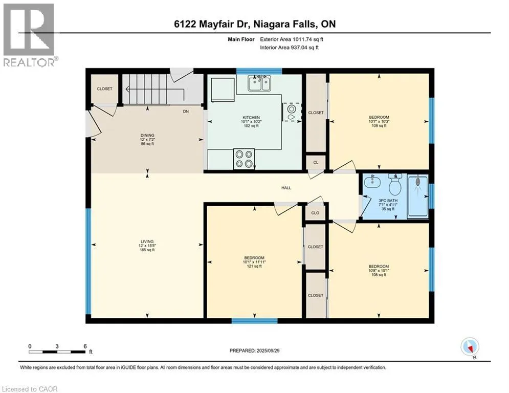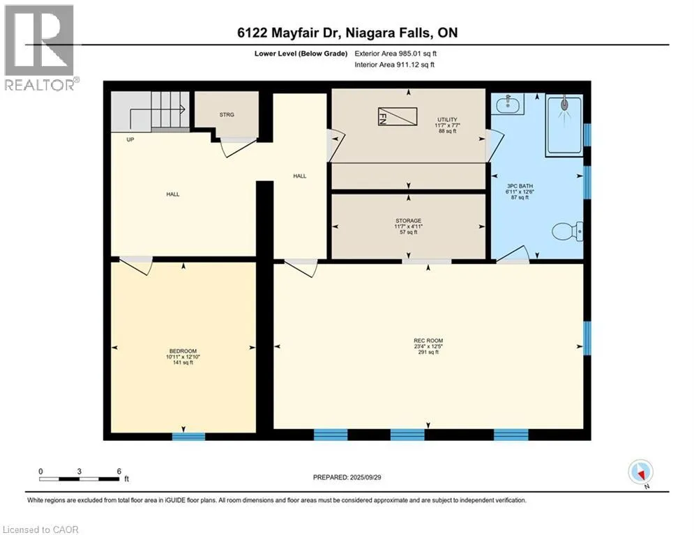 QEW, Exit 32 - Mountain Road, Left onto Mountain, right on Dorchester Road, left onto Thorldstone Road, right onto Montros Road, left on Church's land, right on Mayfair Drive - home is on the right. Welcome to 6122 Mayfair Drive, a beautifully updated home in a desirable Niagara Falls neighbourhood. The main floor features a lovely kitchen with rich cabinetry, granite countertops, a skylight for natural light, and included appliances. The open-concept dining and living areas showcase warm, rich-colour flooring, creating an inviting space for everyday living and entertaining. Three generous bedrooms and a completely redone 3-piece main bath complete this level. Freshly painted and thoughtfully updated, this home is truly move-in ready. The fully finished basement features a beautifully finished bath with a walk-in shower and a large, bright room with plenty of windowsâideal as a recreation room or an oversized bedroom with a walk-in closet. Excellent potential for an in-law suite or multigenerational living. Modern mechanicals include forced air natural gas, air exchanger with HEPA filter, on-demand tankless water heater, and water softener. Outside, enjoy the extended drive-through garage with front and rear doors, a double-wide paved/interlock driveway, and a lovely yard. The backyard also features a 10x20 shed with garage door, man door, and built-in shelvingâperfect for storage or hobbies. Centrally located between the QEW and Highway 405, just minutes to Niagara Falls, Clifton Hill, schools, shopping, and parks. Book your showing today! Please note: some photos have been virtually staged. (id:27476)