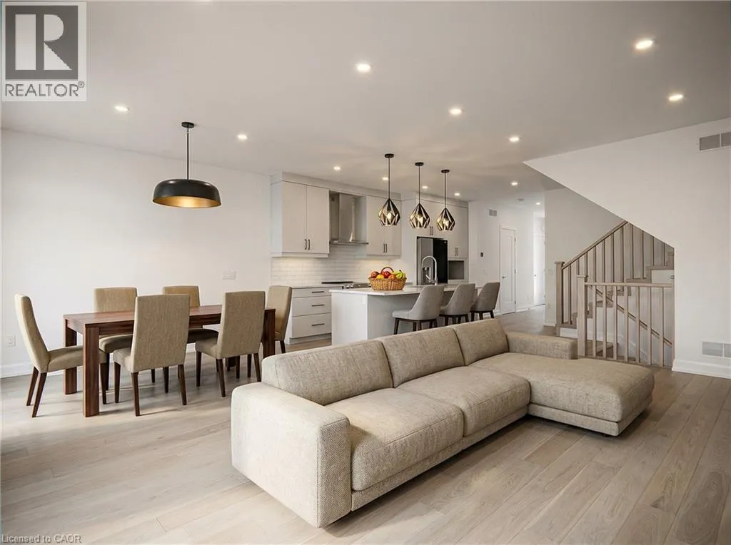 Mcleod Rd. & Garner Rd. Situated in sought-after neighborhoods like Forestview Estates, these almost-new freehold towns offer the perfect blend of modern style and family-friendly functionality. Showcasing stunning open-concept main floors with soaring 9' ceilings, upgraded kitchens featuring quartz countertops, large center islands, sleek cabinetry, and pot lights, these homes are designed for both everyday living and effortless entertaining. The spacious living and dining areas flow seamlessly to private, fully fenced backyards with wooden decks-ideal for young families seeking a safe outdoor space. Upstairs, you'll find generously sized bedrooms including a primary suite with a private ensuite and walk-in closet, plus convenient second-floor laundry. With built-in garages, interlocking or paved driveways, and high-end finishes like engineered hardwood floors, modern trim details, and neutral decor throughout, these homes are move-in ready. Located in vibrant, growing communities close to top schools, Costco, Walmart, the QEW, and all major amenities, they offer the ideal setting for first-time buyers and growing families looking for a low-maintenance, stylish place to call home. Priced as the lowest for such a unit, this home provides exceptional value-the cooperative tenant is moving out to deliver vacant possession, and 24 hours' notice is required for showings. (id:27476)