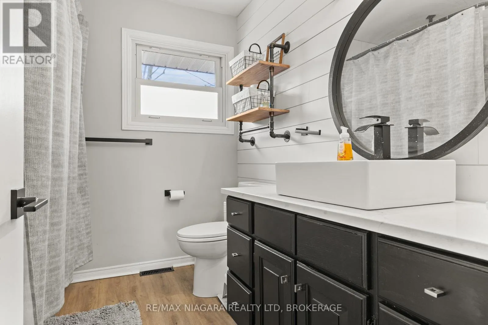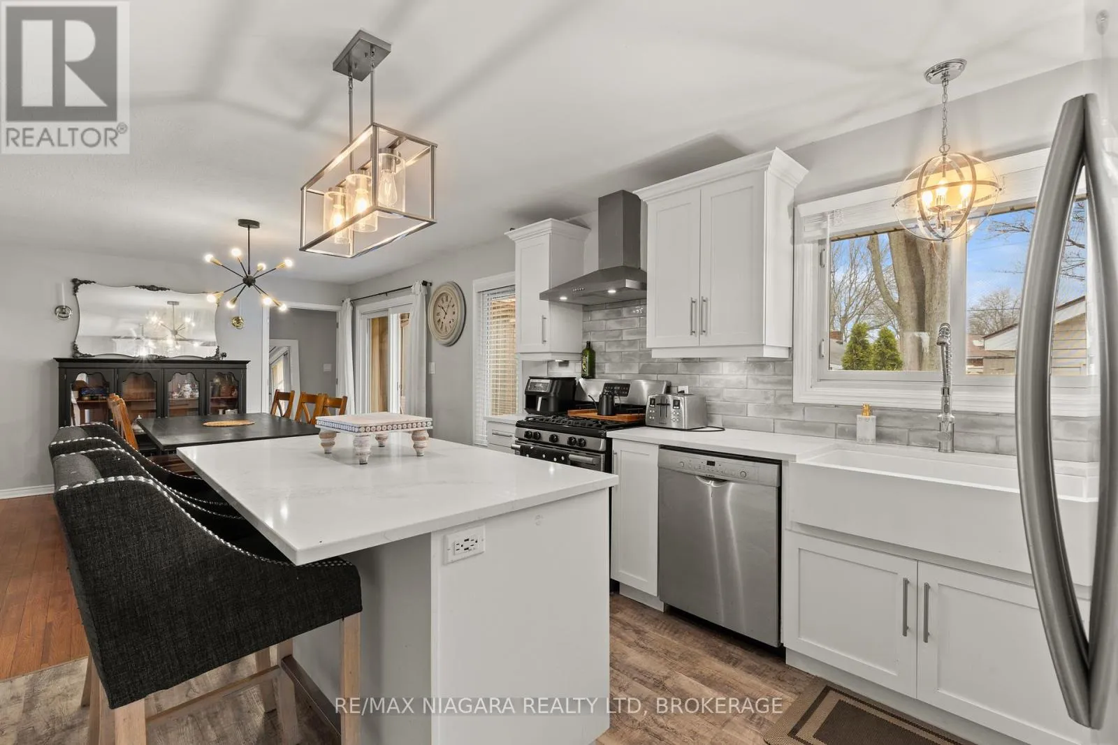 Cross Streets: Sodom / Willoughby. ** Directions: Lyons Creek - Sodom Road - Welland St - Banting - Champlain. Welcome to 8739 Champlain Drive in the charming and sought-after village of Chippawa. This well maintained & updated home offers comfort, style, and functionality in a quiet, community-focused setting just minutes from the Niagara River, parks, schools and amenities. Step inside to discover a thoughtfully refreshed interior featuring a modernized kitchen with new cabinetry, quartz countertops, updated flooring, and sleek finishes throughout. The bathroom has also been tastefully upgraded with quartz surfaces, new fixtures, and a tiled tub surround, creating a clean and contemporary feel. Fresh lighting throughout most of the home adds a bright, inviting atmosphere, while added closets in the bedrooms enhance everyday practicality. The home continues to impress outside with landscaped grounds, multiple storage sheds, and a newly installed driveway gate offering both convenience and privacy. Don't forget to check out the fully winterized garage, complete with its own 60-amp panel and climate control with heating and air conditioning. With additional updates already underway in the basement and nothing left to do but move in and enjoy your new home in one of Niagara's most desirable riverside communities. (id:27476)