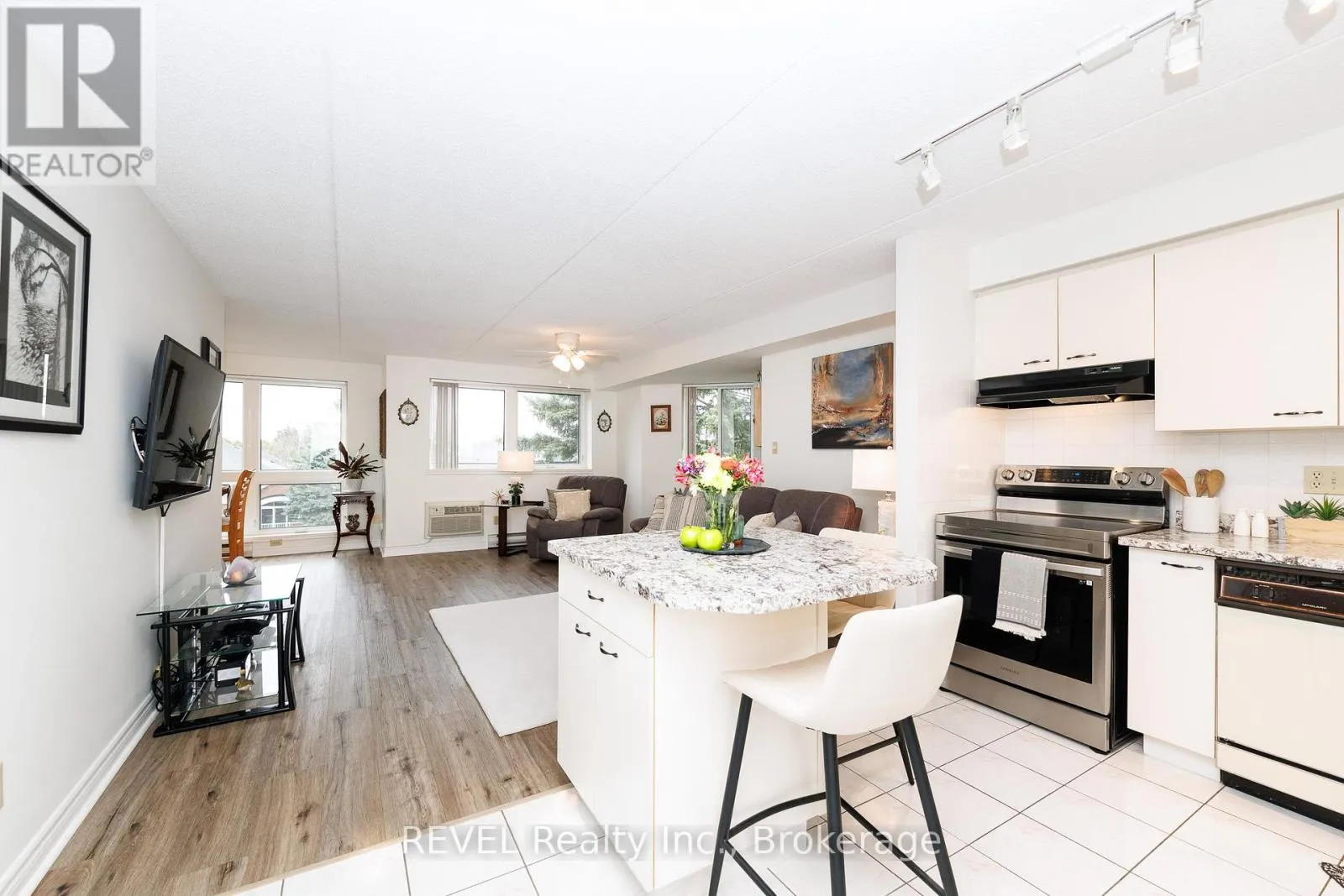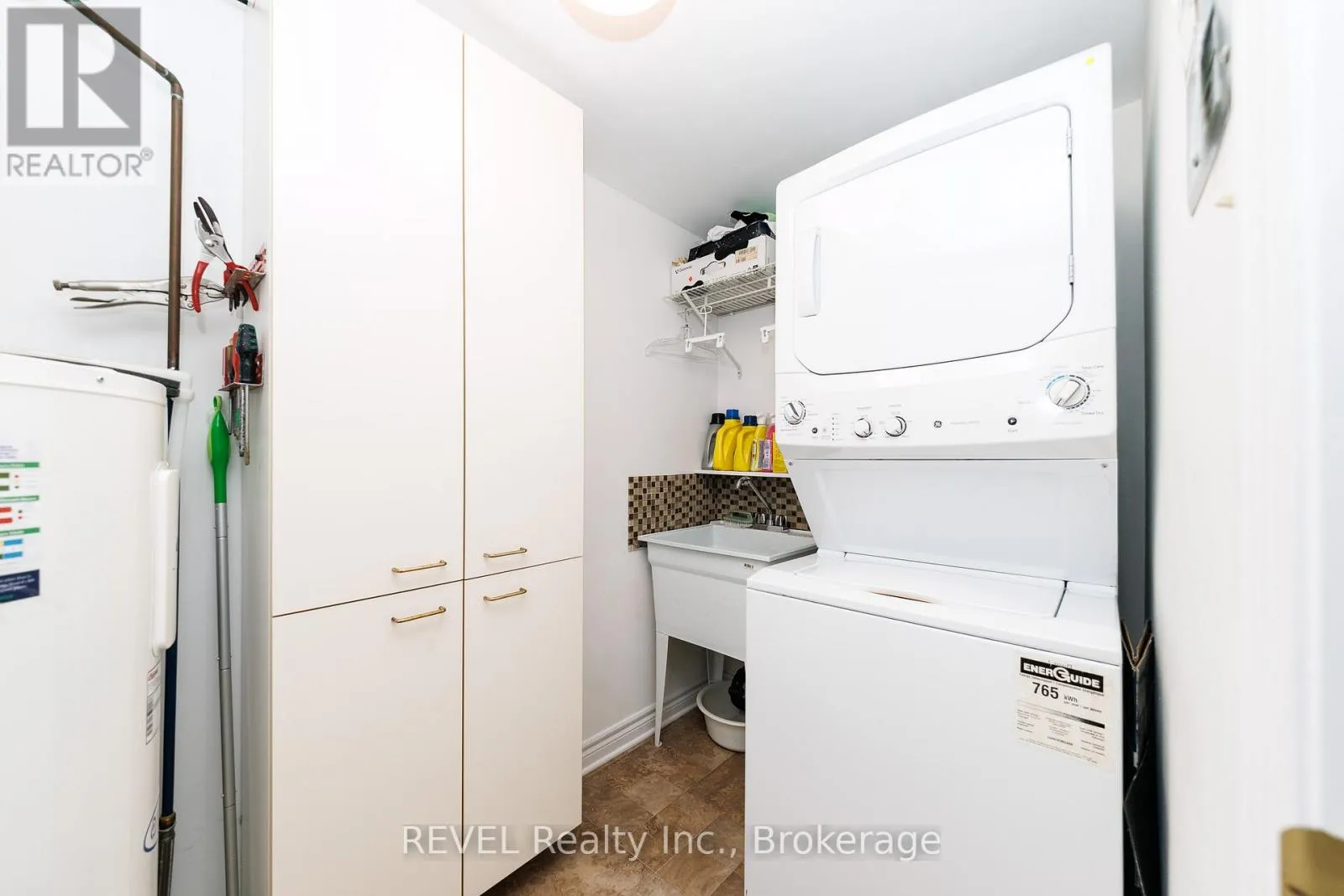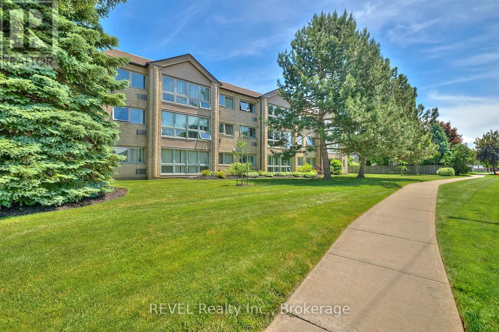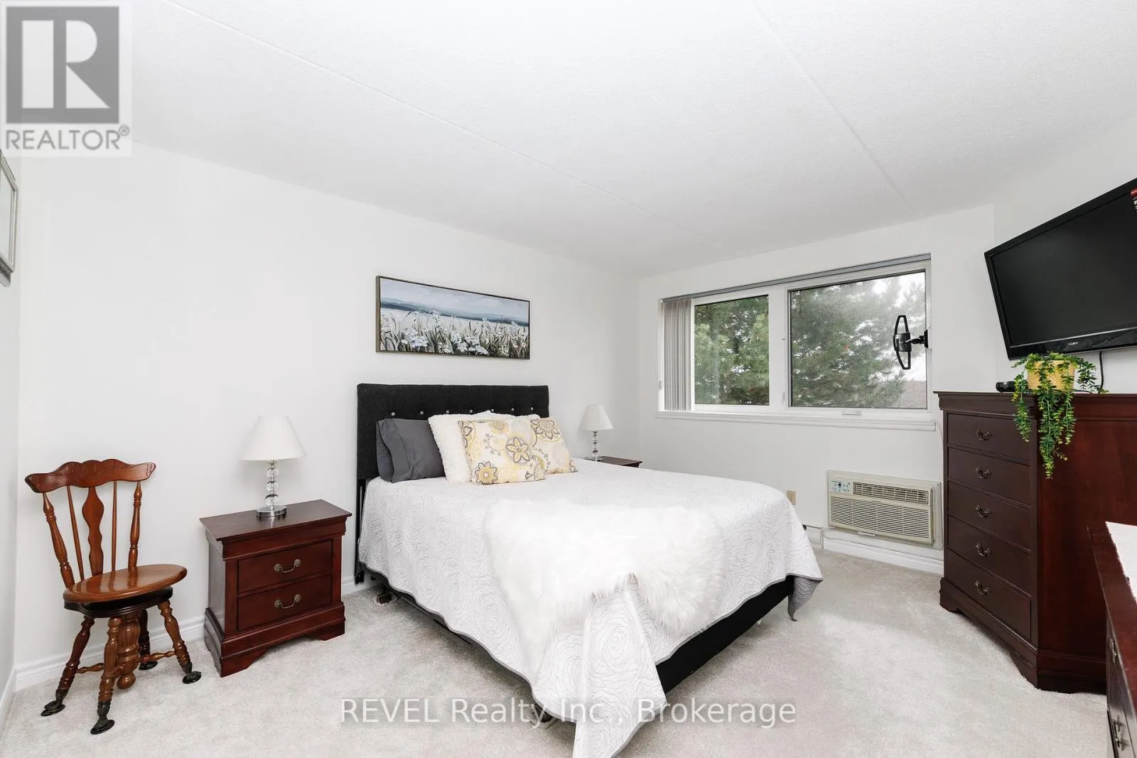 Cross Streets: Montrose Rd/Thorold Stone Rd. ** Directions: Thorold Stone Road to Montrose. Welcome to this bright and beautifully maintained 2-bedroom condo in the highly desirable Kaitlin Court. Featuring large windows that flood the space with natural light, this super clean unit offers a warm and inviting atmosphere perfect for comfortable everyday living. The open concept kitchen with countertop seating boasts updated counters, new sink and faucets, exhaust fan and appliances. The living and dining room have newer laminate flooring and the carpets in the bedrooms have been recently replaced. This unit has its own utility room with in-suite laundry (stacked washer and dryer), and an oversized bathroom complete with a walk-in shower and a luxurious jacuzzi tub-ideal for relaxing at the end of the day. Situated in a quiet, well-maintained building, residents of Kaitlin Court enjoy access to excellent amenities including a party room and storage lockers. Located in the sought-after Mount Carmel neighbourhood, you're just minutes from everyday conveniences, quick access to the QEW, the vibrant Niagara Falls tourist district, and the renowned wineries of Niagara-on-the-Lake. Perfect for retirees, downsizers, or anyone seeking low-maintenance living in a peaceful community-this condo is a must-see! (id:27476)