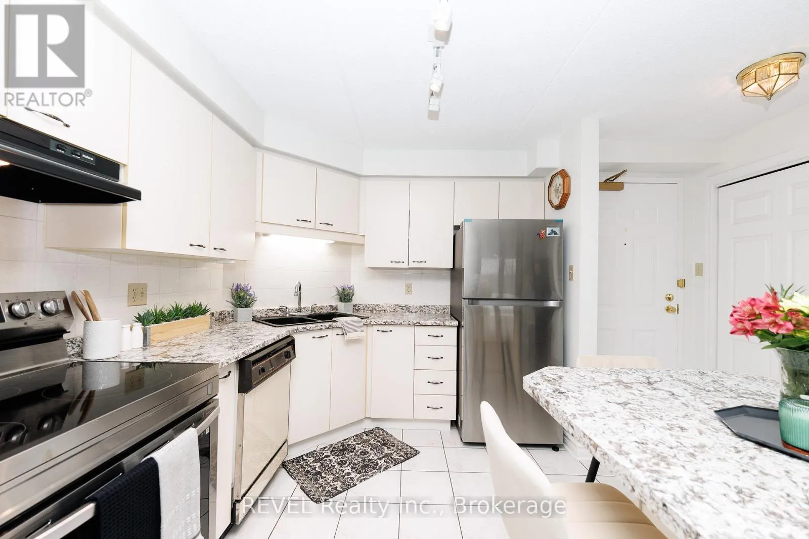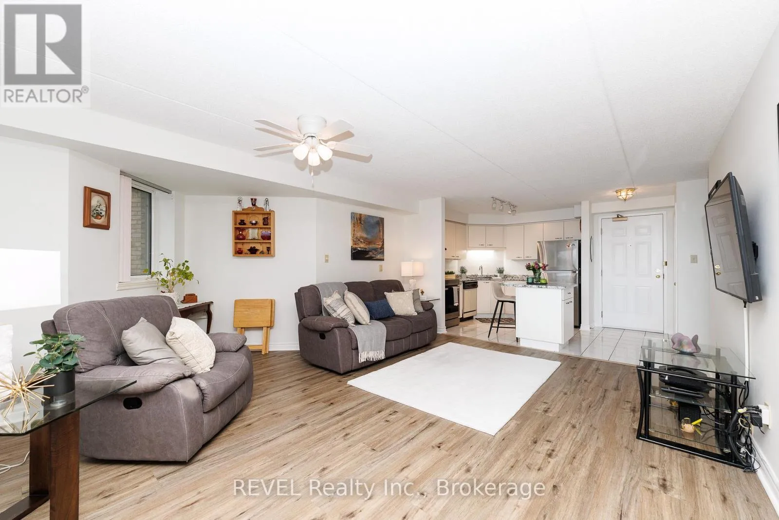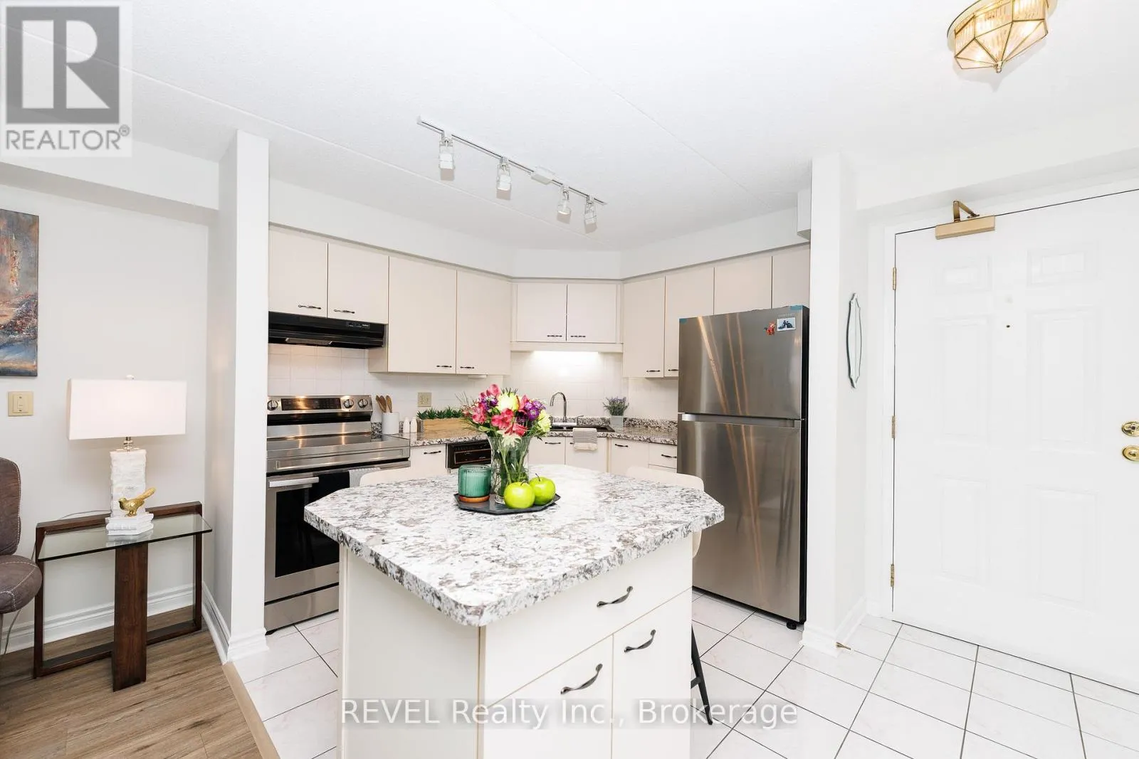 Cross Streets: Montrose Rd/Thorold Stone Rd. ** Directions: Thorold Stone Road to Montrose. Welcome to this bright and beautifully maintained 2-bedroom condo in the highly desirable Kaitlin Court. Featuring large windows that flood the space with natural light, this super clean unit offers a warm and inviting atmosphere perfect for comfortable everyday living. The open concept kitchen with countertop seating boasts updated counters, new sink and faucets, exhaust fan and appliances. The living and dining room have newer laminate flooring and the carpets in the bedrooms have been recently replaced. This unit has its own utility room with in-suite laundry (stacked washer and dryer), and an oversized bathroom complete with a walk-in shower and a luxurious jacuzzi tub-ideal for relaxing at the end of the day. Situated in a quiet, well-maintained building, residents of Kaitlin Court enjoy access to excellent amenities including a party room and storage lockers. Located in the sought-after Mount Carmel neighbourhood, you're just minutes from everyday conveniences, quick access to the QEW, the vibrant Niagara Falls tourist district, and the renowned wineries of Niagara-on-the-Lake. Perfect for retirees, downsizers, or anyone seeking low-maintenance living in a peaceful community-this condo is a must-see! (id:27476)