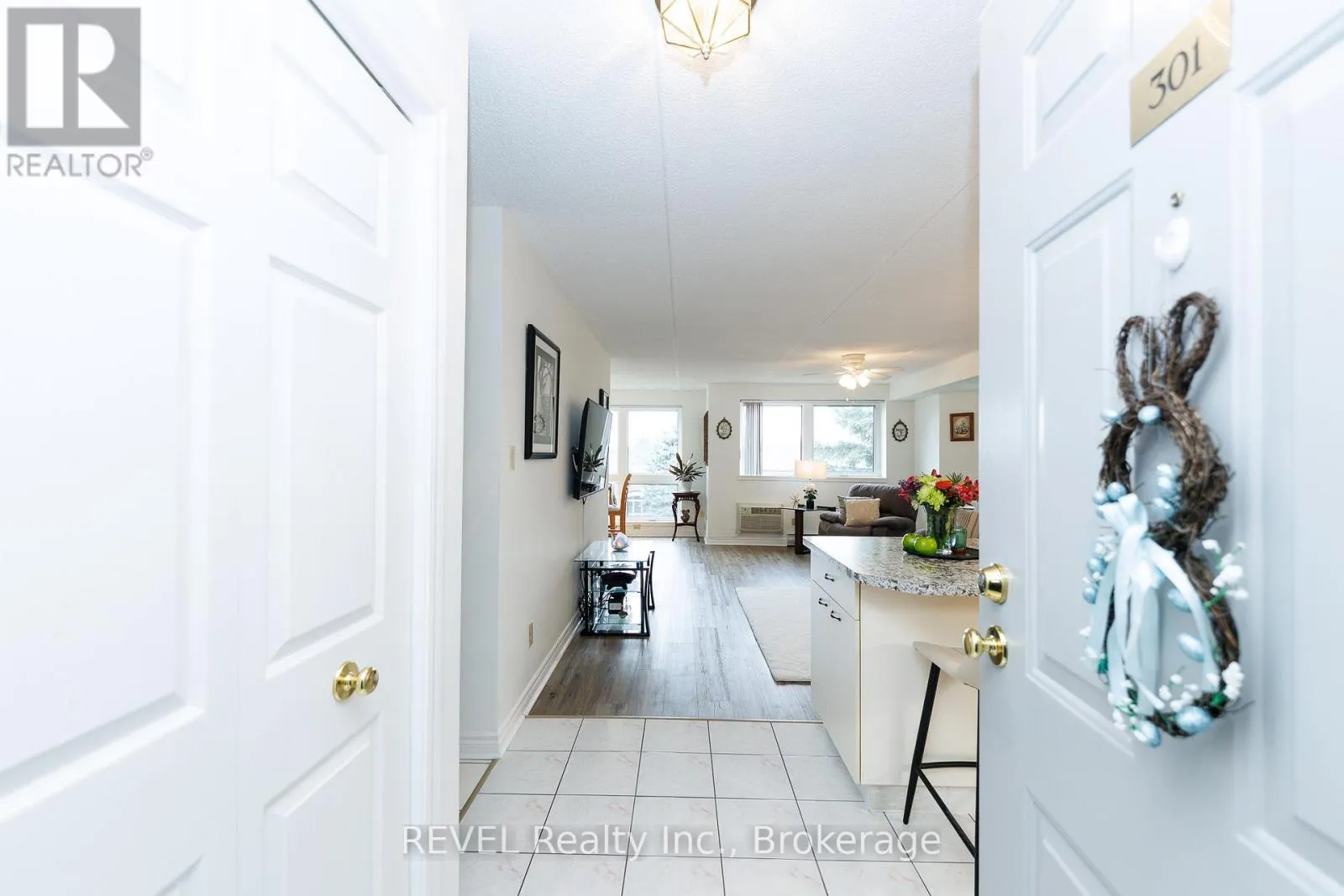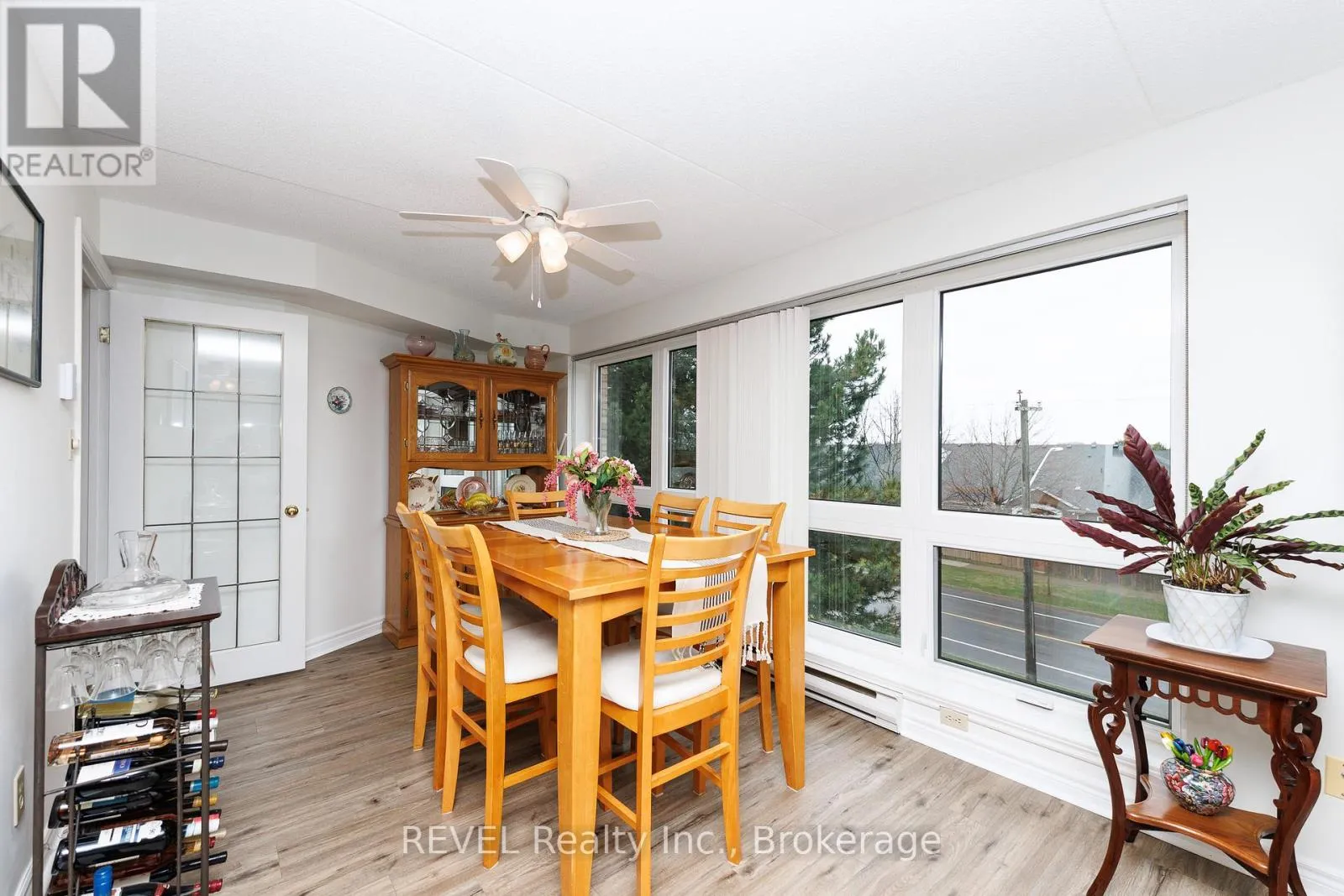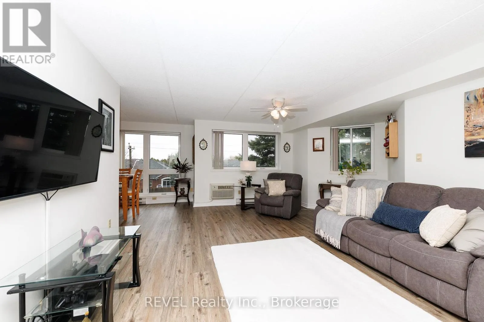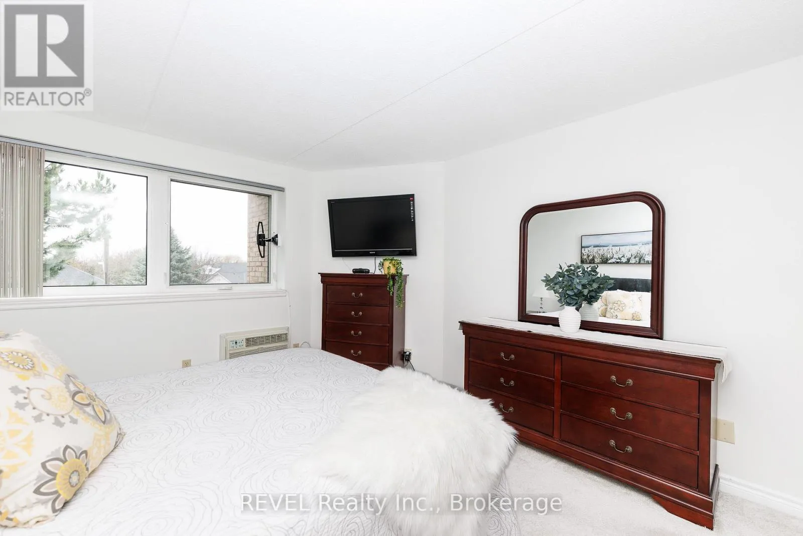 Cross Streets: Montrose Rd/Thorold Stone Rd. ** Directions: Thorold Stone Road to Montrose. Welcome to this bright and beautifully maintained 2-bedroom condo in the highly desirable Kaitlin Court. Featuring large windows that flood the space with natural light, this super clean unit offers a warm and inviting atmosphere perfect for comfortable everyday living. The open concept kitchen with countertop seating boasts updated counters, new sink and faucets, exhaust fan and appliances. The living and dining room have newer laminate flooring and the carpets in the bedrooms have been recently replaced. This unit has its own utility room with in-suite laundry (stacked washer and dryer), and an oversized bathroom complete with a walk-in shower and a luxurious jacuzzi tub-ideal for relaxing at the end of the day. Situated in a quiet, well-maintained building, residents of Kaitlin Court enjoy access to excellent amenities including a party room and storage lockers. Located in the sought-after Mount Carmel neighbourhood, you're just minutes from everyday conveniences, quick access to the QEW, the vibrant Niagara Falls tourist district, and the renowned wineries of Niagara-on-the-Lake. Perfect for retirees, downsizers, or anyone seeking low-maintenance living in a peaceful community-this condo is a must-see! (id:27476)