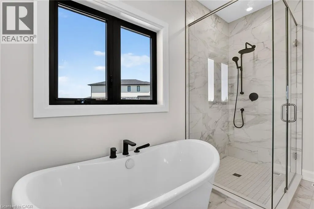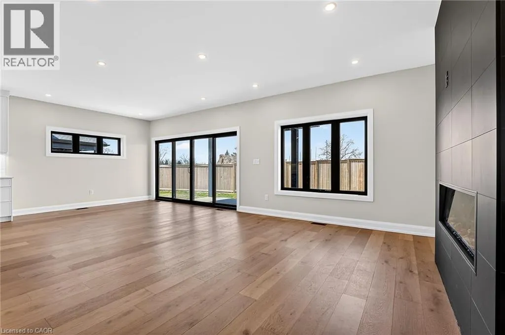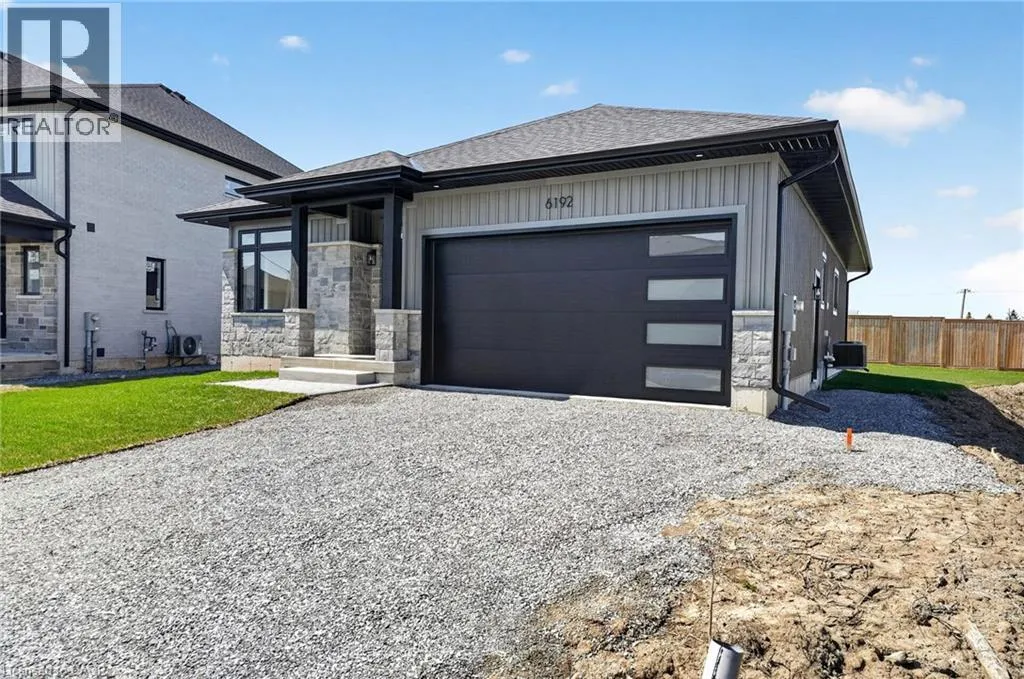 Take Lundy's Lane, turn South on Graner Rd, then east on Angie Dr., North on Curlin Cres Welcome to this sleek, modern bungalow in the sought-after Forestview Estates neighbourhood, where thoughtful design and elevated finishes define every space. The main floor features soaring 9-foot ceilings and engineered hardwood throughout, creating a bright, seamless flow from room to room. An open-concept kitchen, living, and dining area forms the heart of the home, complete with a modern electric fireplace, a walk-in pantry, and a generous island with seating for four. Large windows frame views of the covered patio out back, extending your living space outdoors. The main floor offers two well-appointed bedrooms and two full bathrooms, including a serene primary suite with a luxurious 5-piece ensuite featuring a deep soaker tub and double-sink vanity. Practicality meets convenience with indoor access from the two-car garage into a combined mudroom and laundry room, all located on the main level. The finished basement expands your lifestyle possibilities with two additional rooms, two full bathrooms, and a spacious recreation area enhanced by a wet barâperfect for entertaining or extended family living. Impressively high ceilings in the lower level add to the open, inviting feel. Ideally situated close to highway access, shopping, golf, and Niagaraâs renowned attractions, this home blends modern comfort with exceptional convenience in one of the regionâs most desirable communities. Taxes not yet assessed as it is a new build (id:27476)