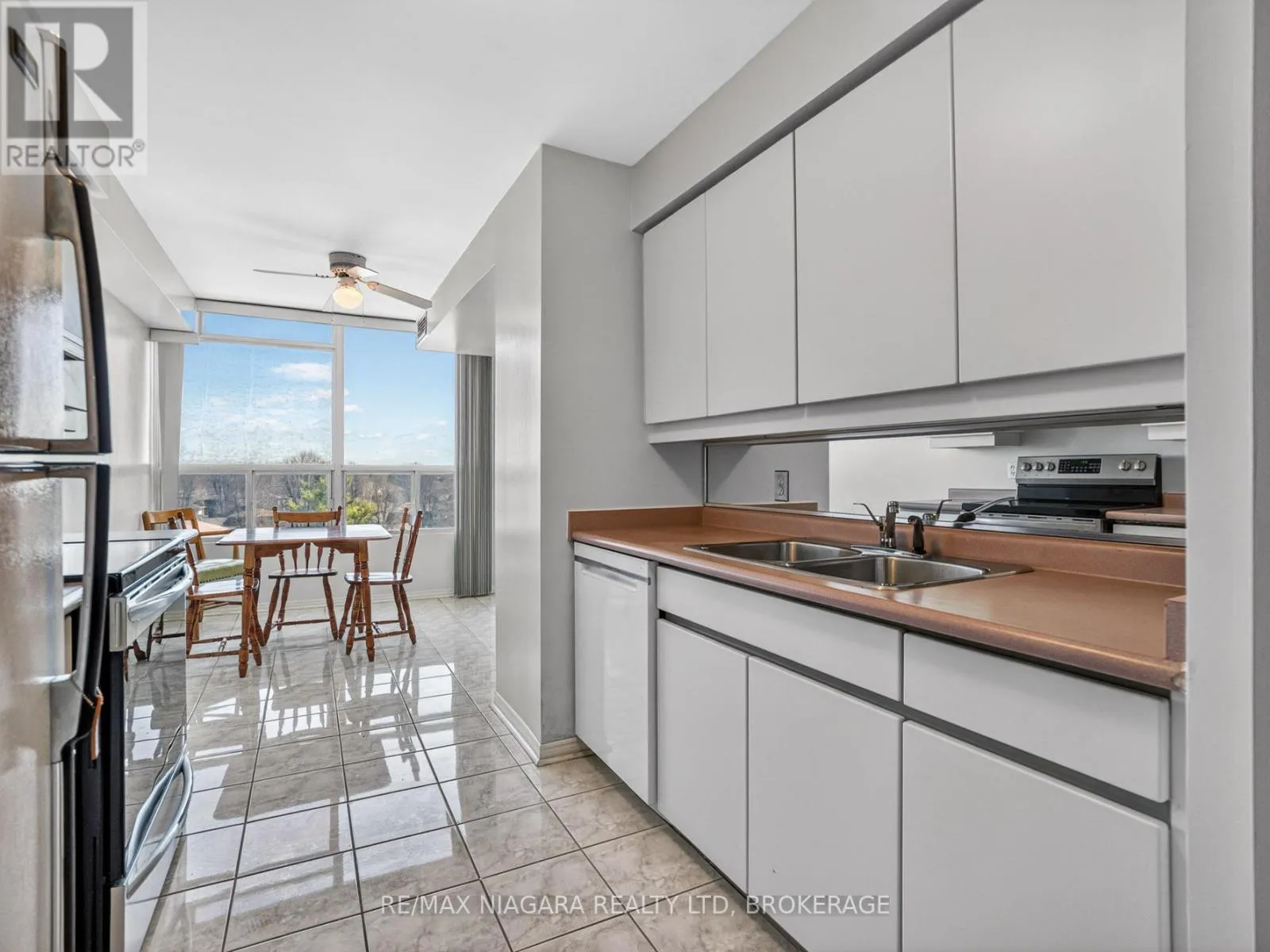 Cross Streets: Dawson and Dorchester. ** Directions: between Dawson and QEW ramp. Dufferin Place is centrally located with proximity to the QEW, shopping, churches, and public transit. Well-maintained security building with elevators, underground parking, outdoor inground pool with washroom facilities, community BBQ and outdoor Social area. The building also features a gym, a social room with a kitchen for hosting events and meeting with other residents. Unit 701 is a well-kept, spacious 2-bedroom, 2-bath unit featuring a sun room, eat-in kitchen, newer convection oven and newer dishwasher, stacking washer and dryer in suite, large walk-in storage closet, freshly painted throughout, Lovely east view overlooking the pool area. This unit comes with 2underground parking spots,#33 and #42 and a storage locker (id:27476)