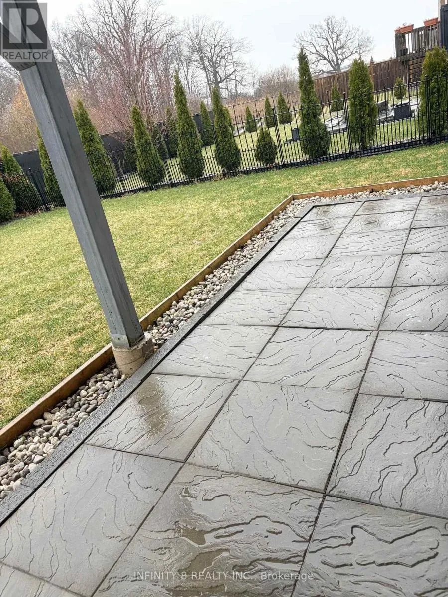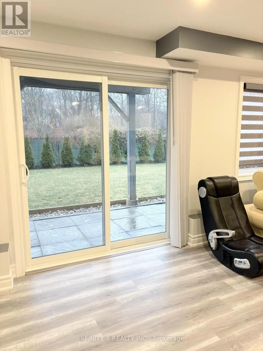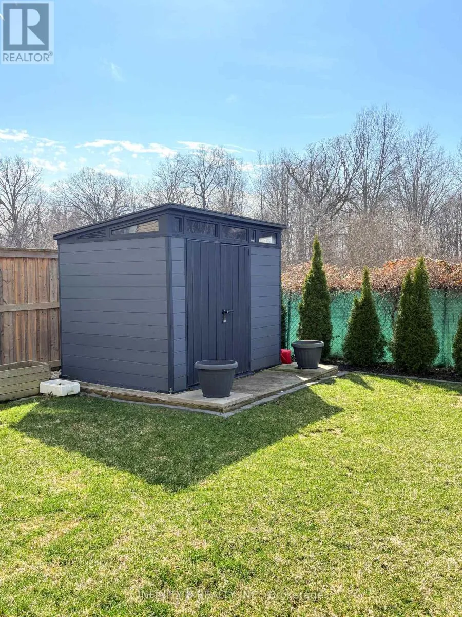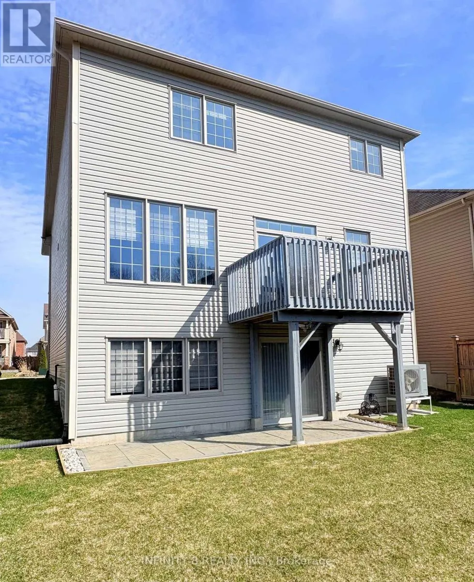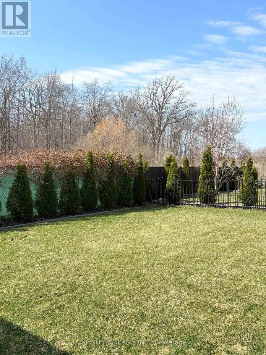 Cross Streets: Kalar Rd & McLeod Rd. ** Directions: Kalar Rd to Elderberry Dr to Dogwood Crescent. RARE RAVINE LOT - No Rear Neighbours! 2,254 sq ft + 800 sq ft Finished Walk-Out Basement. Heat Pump (2023), 13' Ceilings, Renovated 2020. Spectacular Hudson model by Empire Homes on a premium 44.09' x 99.70' ravine lot backing directly onto Warren Woods trails. No rear neighbours, no pedestrian pathway to driveway - total privacy. 2,254 sq ft above grade + 800 sq ft finished basement with walk-out to backyard. 3 bed, 3.5 bath. Renovated throughout in 2020 - quartz counters, laminate & ceramic flooring, wrought iron railings, smart lighting + Google voice commands. Showstopper family room: 18'x20' with 13' ceiling. Primary suite: 17'x15'3" with spa ensuite - Ocean Blue 52" 8-jet shower system, double vanity. Two more good-sized bedrooms + full bath + compact laundry upstairs. Energy efficiency: 3-ton Gree heat pump (Oct 2023) + tankless water heater. LED pot lights throughout. Extras: Samsung appliance package (gas range + hood fan), front balcony, rear deck, 8'x10' vinyl shed, 6 exterior Blink cameras, keyless entry. Ecobee Central App that allows owner to control & set Home Temperature with the use of their phone. Steps to schools, Costco, McBain, highway, parks. Move-in ready - ravine living, no compromises. (id:27476)