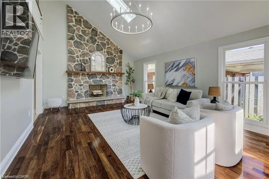 DORCHESTER TO DAWSON TO SOUTHGATE Welcome to serenity!! This stunning home is situated in a beautiful and QUIET neighbourhood with mature trees, yet only minutes to major hwys! Gorgeous fireplace with stone feature sets the tone for this lovey home creating a welcoming atmosphere. Professional upgrades include a Kitchen a chef would love! Stunning cabinetry, pot lighting, quartz countertop, island & stainless steel appliances. Main level primary bedroom with walk-in closet and fully updated bath. The view from the upper level looking over the living room is breathtaking!! An additional added feature, is the open upper hall (could be used as home office). Wood floors, freshly painted and ready for YOU! Enjoy this summer is a VERY large fully fenced yard where you can enjoy some family time! (id:27476)