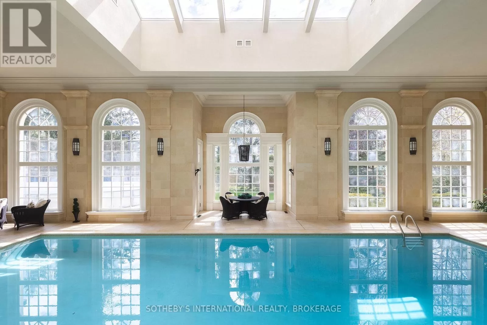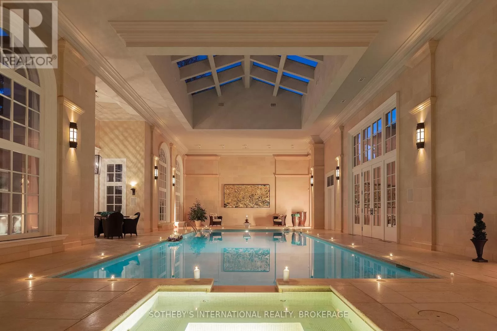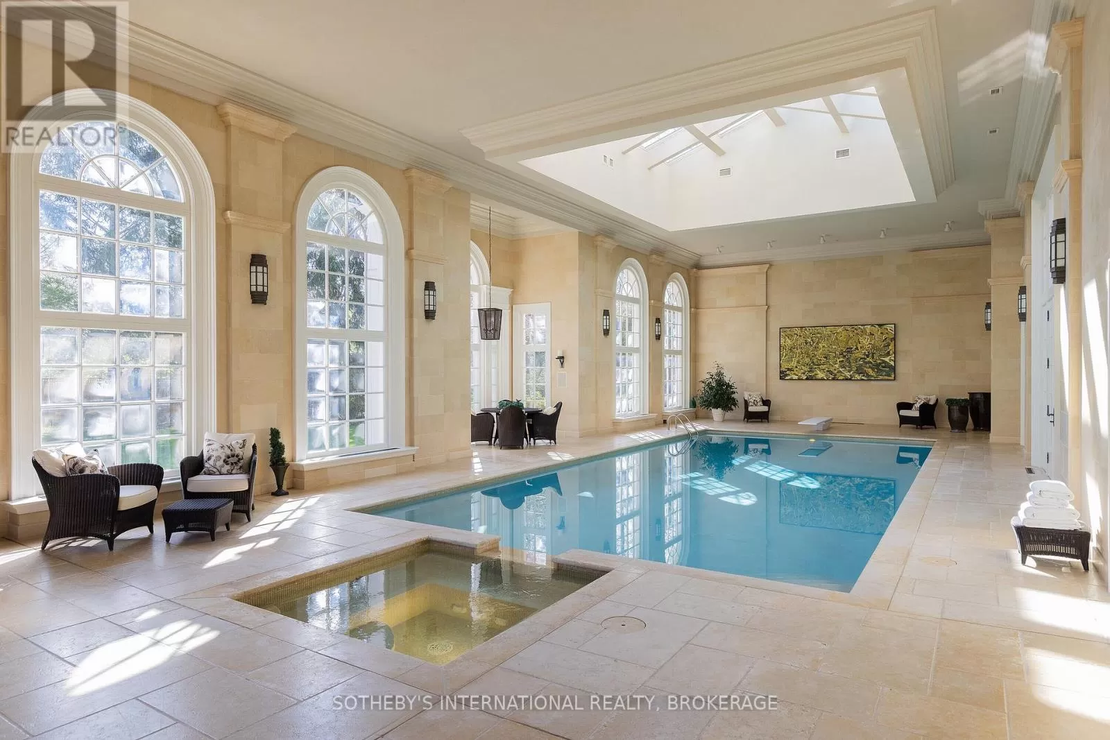 Nassau Street THE MOST PRESTIGIOUS HOME IN NIAGARA ON THE LAKE, this spectacular family estate in Old Towne, (featured in Canadian House and Home) has over 15,000 sq ft of living space. On nearly an acre of land just steps to the lake, this gorgeous residence manifests timeless elegance and warmth inside and out. Custom designed with exquisite attention to detail, it is both an entertainer's dream and true family home. The main floor features an office, formal living room with a fireplace and walkouts, dining room with bay window and fireplace, magnificent panelled games room with wet bar and fireplace. The chef's kitchen has a large island, Miele appliances & walkouts to a four season sunporch, custom greenhouse and conservatory, leading to outdoor fireplace, manicured gardens, lighted stone pathways and iron gates, all very private. Upstairs, a stunning large mahogany panelled office has a fireplace and a private two piece. The luxurious primary suite has a sitting room, sunroom, panelled walk in closet and six piece ensuite. All five bedrooms include ensuites. Enjoy the professional level oversized fitness room and convenient second floor laundry. The lower level has a craft room with built in cabinetry, family room and a 1000 bottle custom wine cellar. One spectacular feature of this home is the indoor pool house with an 18'x40' salt water pool enclosed in imported Jerusalem limestone, copper roof and skylights, hot tub, his/her change rooms each with a three piece bath, speakers, wet bar, fridge, dishwasher, mahogany windows and doors opening to the garden and patio. The 40'x80' rink easily converts to a paddle ball court for seasonal use. The brick Field House has a change room, three piece bath and upstairs studio. Enjoy the heated four car garage with two sinks and floor drains. The home features extensive A/C systems, multiple LED screens, smart home lighting and sound, TV, and cameras. This outstanding property is a jewel in the heart of Ontario Wine Country. (id:27476)