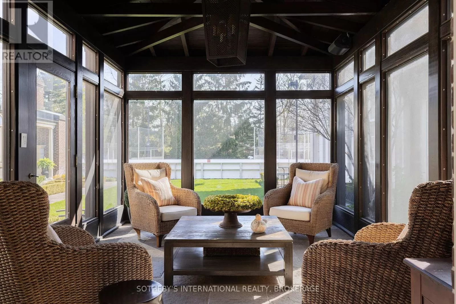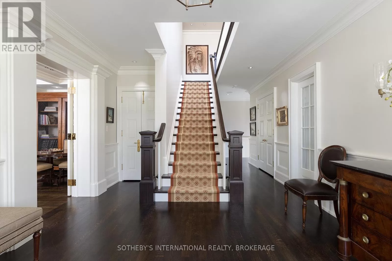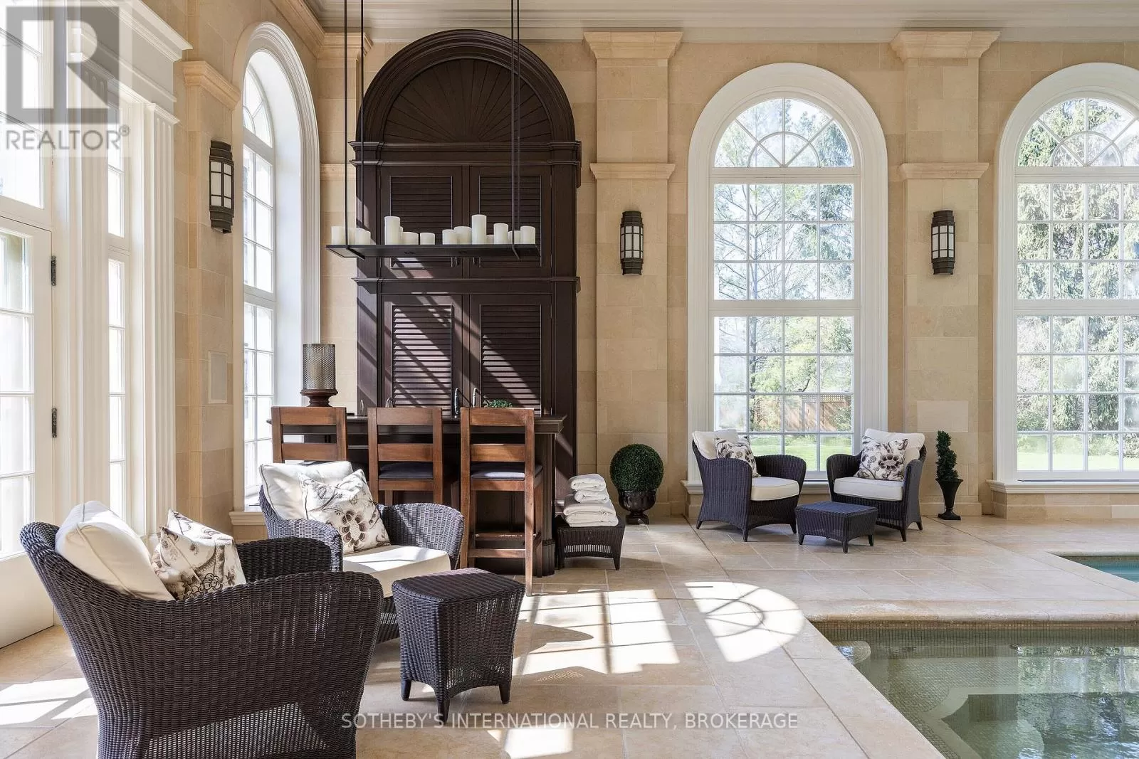 Nassau Street THE MOST PRESTIGIOUS HOME IN NIAGARA ON THE LAKE, this spectacular family estate in Old Towne, (featured in Canadian House and Home) has over 15,000 sq ft of living space. On nearly an acre of land just steps to the lake, this gorgeous residence manifests timeless elegance and warmth inside and out. Custom designed with exquisite attention to detail, it is both an entertainer's dream and true family home. The main floor features an office, formal living room with a fireplace and walkouts, dining room with bay window and fireplace, magnificent panelled games room with wet bar and fireplace. The chef's kitchen has a large island, Miele appliances & walkouts to a four season sunporch, custom greenhouse and conservatory, leading to outdoor fireplace, manicured gardens, lighted stone pathways and iron gates, all very private. Upstairs, a stunning large mahogany panelled office has a fireplace and a private two piece. The luxurious primary suite has a sitting room, sunroom, panelled walk in closet and six piece ensuite. All five bedrooms include ensuites. Enjoy the professional level oversized fitness room and convenient second floor laundry. The lower level has a craft room with built in cabinetry, family room and a 1000 bottle custom wine cellar. One spectacular feature of this home is the indoor pool house with an 18'x40' salt water pool enclosed in imported Jerusalem limestone, copper roof and skylights, hot tub, his/her change rooms each with a three piece bath, speakers, wet bar, fridge, dishwasher, mahogany windows and doors opening to the garden and patio. The 40'x80' rink easily converts to a paddle ball court for seasonal use. The brick Field House has a change room, three piece bath and upstairs studio. Enjoy the heated four car garage with two sinks and floor drains. The home features extensive A/C systems, multiple LED screens, smart home lighting and sound, TV, and cameras. This outstanding property is a jewel in the heart of Ontario Wine Country. (id:27476)
