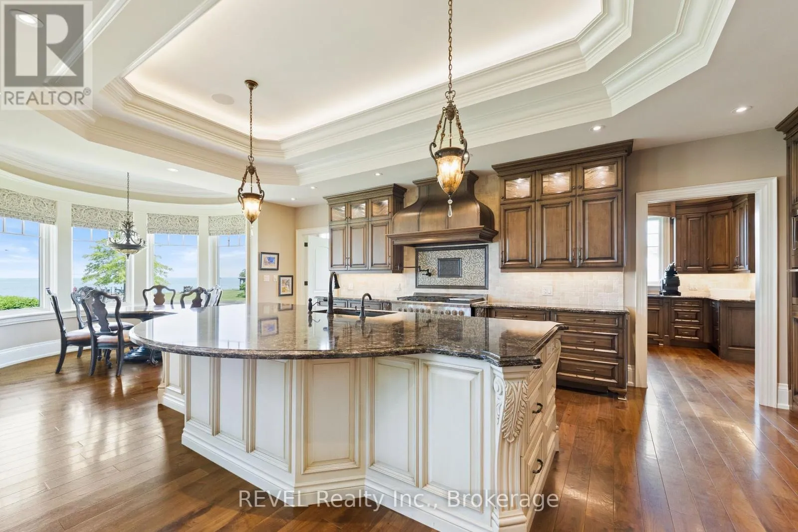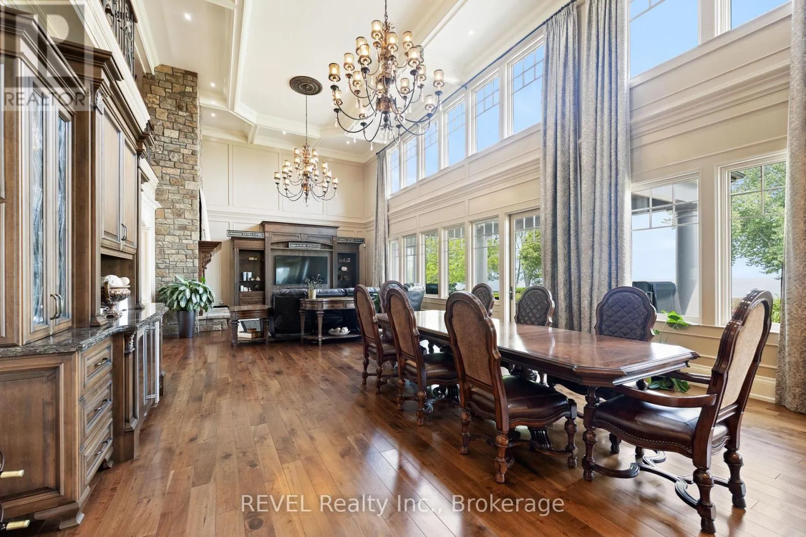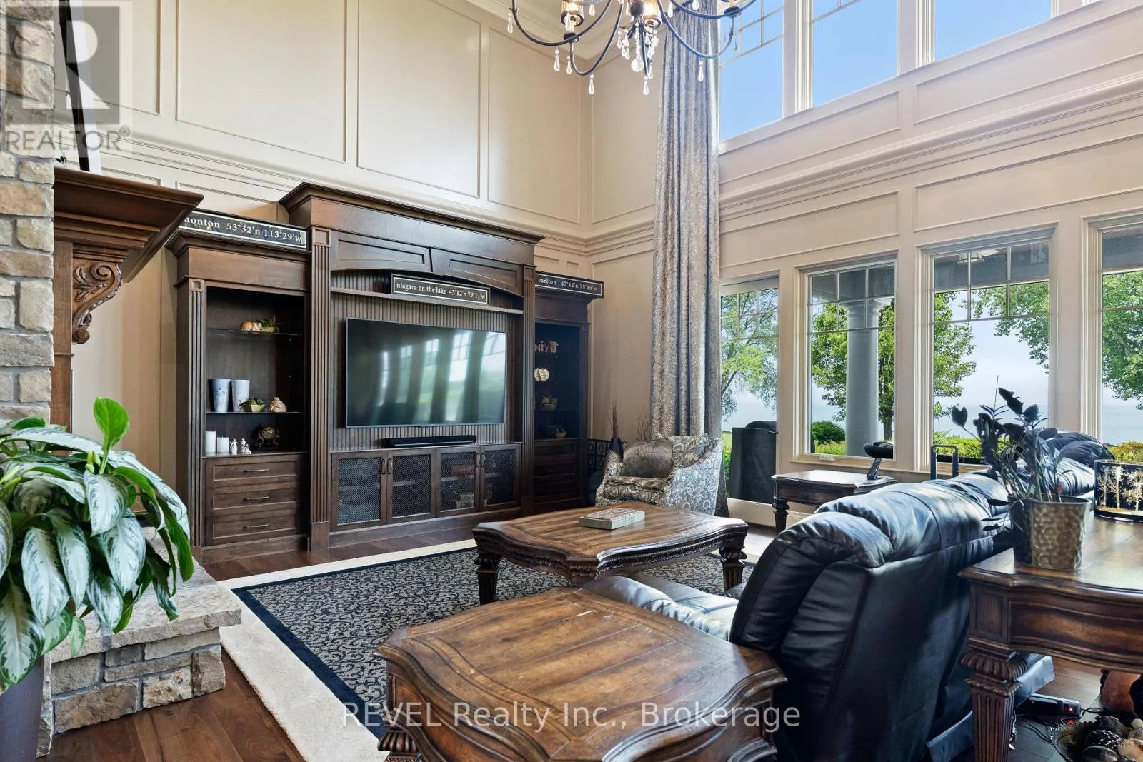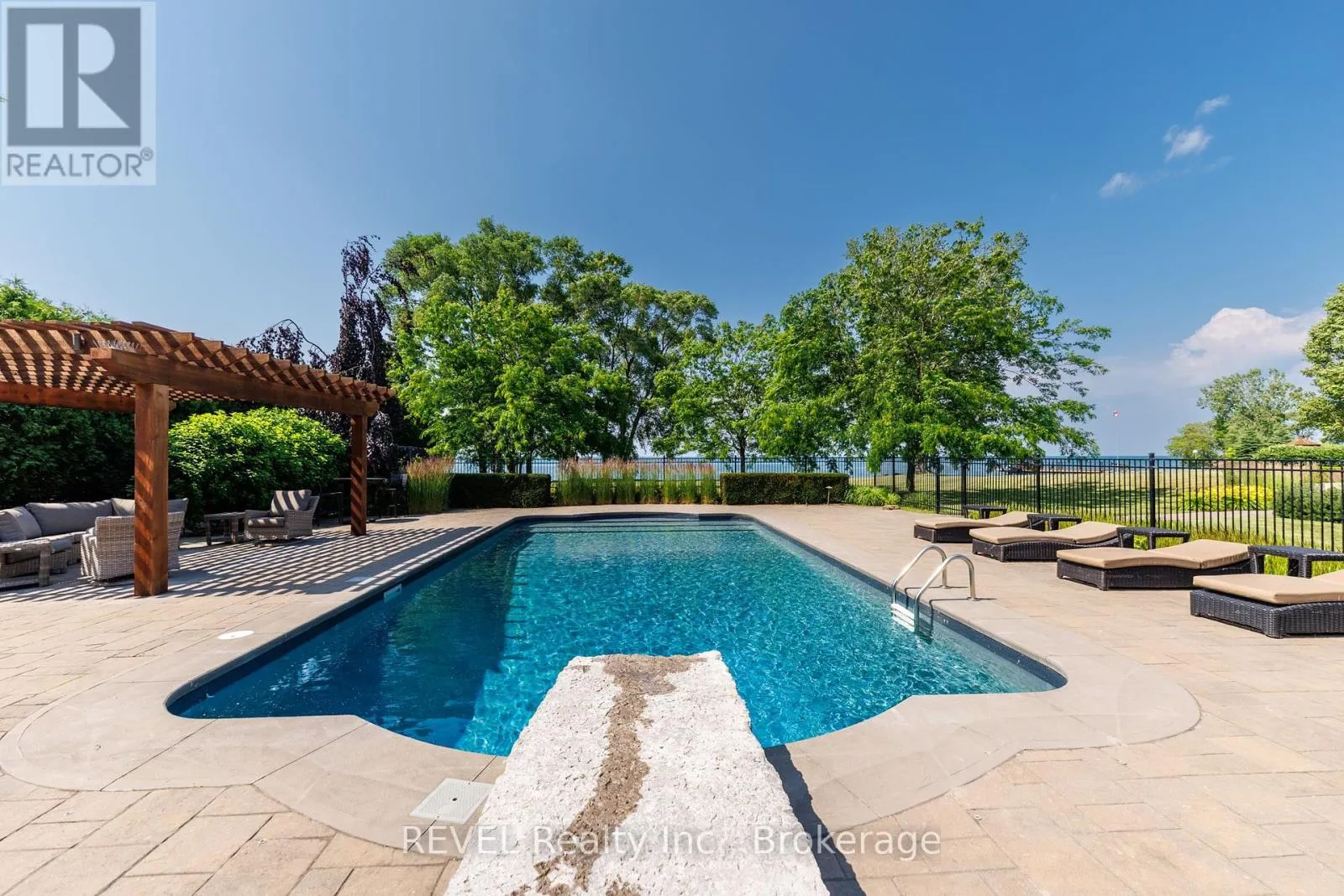 Cross Streets: Lakeshore and Four Mile Creek. ** Directions: Lakeshore. Exclusively positioned on nearly 13.4 acres of pristine land, this stunning luxury estate boasts nearly 500 feet of Lake Ontario shoreline with breathtaking views in Niagara-on-the-Lake. The property features a gated .5KM driveway flanked by meticulously maintained vineyards, leading to a masterpiece of design and construction. No detail has been spared in the creation of this unparalleled home, showcasing the finest materials, cutting-edge technology, and craftsmanship of the highest order. Enjoy resort-style living with a private pool, tennis courts, and a 4466 sq/ft bonus building, including 1936 sq/ft of finished space with 2 bathrooms. A state-of-the-art generator ensures uninterrupted power, while the dock and boat lift offer easy access to the lake. Experience the finest in both comfort and elegance at this exceptional waterfront retreat. (id:27476)