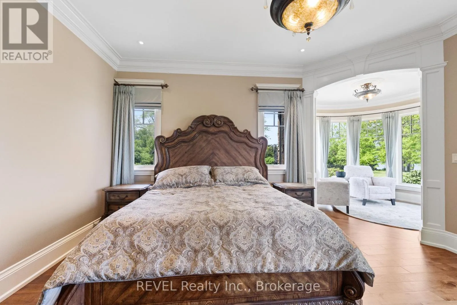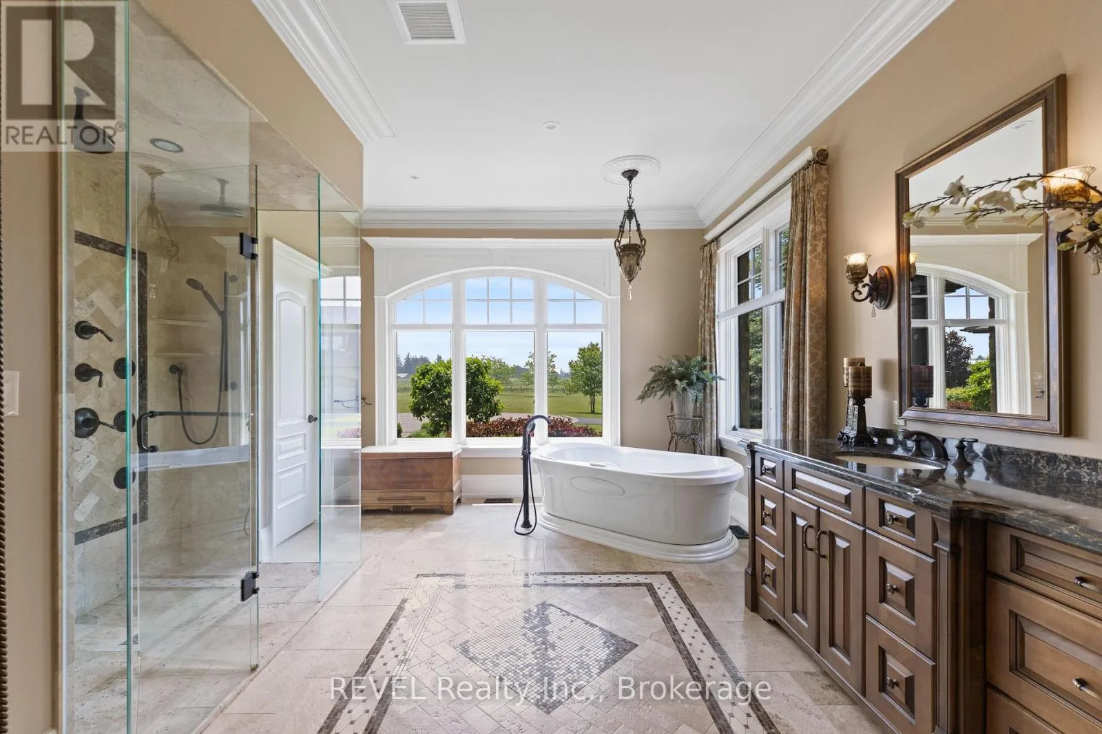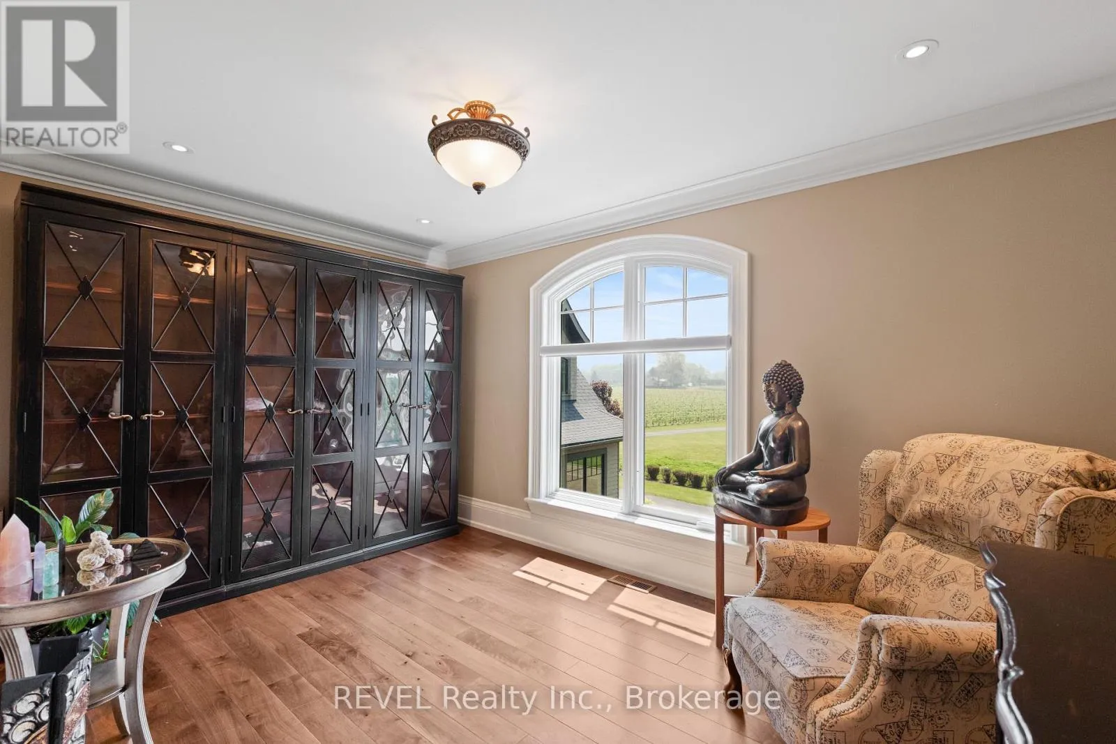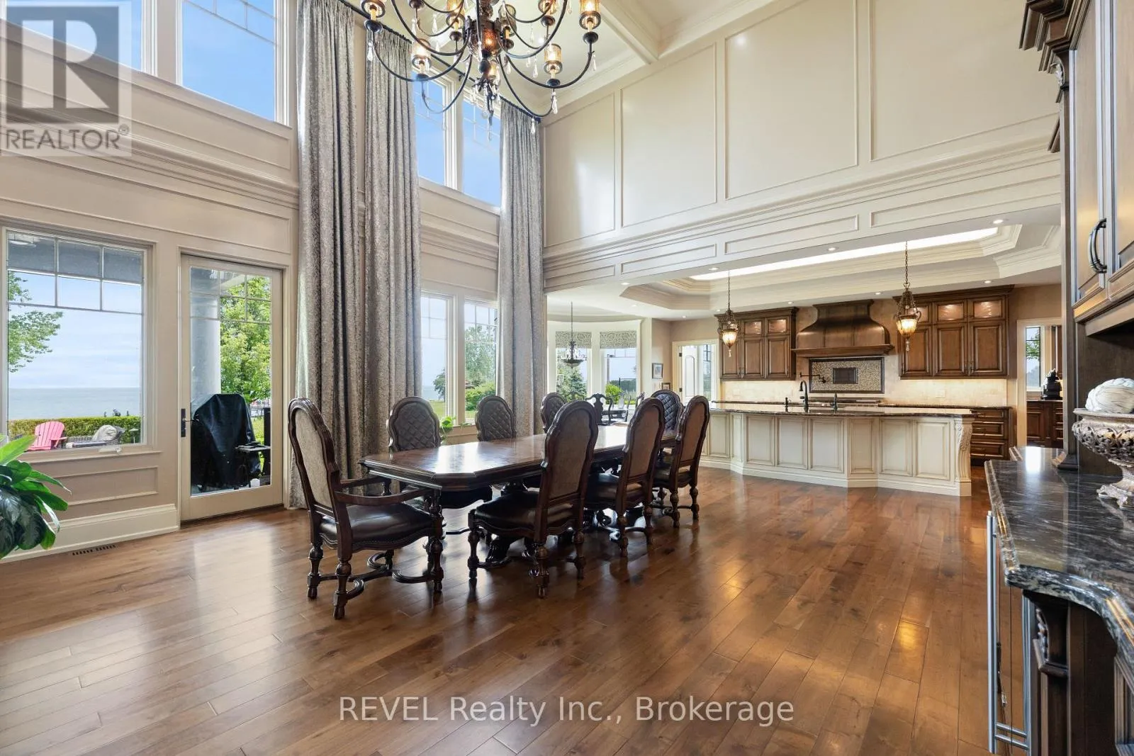 Cross Streets: Lakeshore and Four Mile Creek. ** Directions: Lakeshore. Exclusively positioned on nearly 13.4 acres of pristine land, this stunning luxury estate boasts nearly 500 feet of Lake Ontario shoreline with breathtaking views in Niagara-on-the-Lake. The property features a gated .5KM driveway flanked by meticulously maintained vineyards, leading to a masterpiece of design and construction. No detail has been spared in the creation of this unparalleled home, showcasing the finest materials, cutting-edge technology, and craftsmanship of the highest order. Enjoy resort-style living with a private pool, tennis courts, and a 4466 sq/ft bonus building, including 1936 sq/ft of finished space with 2 bathrooms. A state-of-the-art generator ensures uninterrupted power, while the dock and boat lift offer easy access to the lake. Experience the finest in both comfort and elegance at this exceptional waterfront retreat. (id:27476)