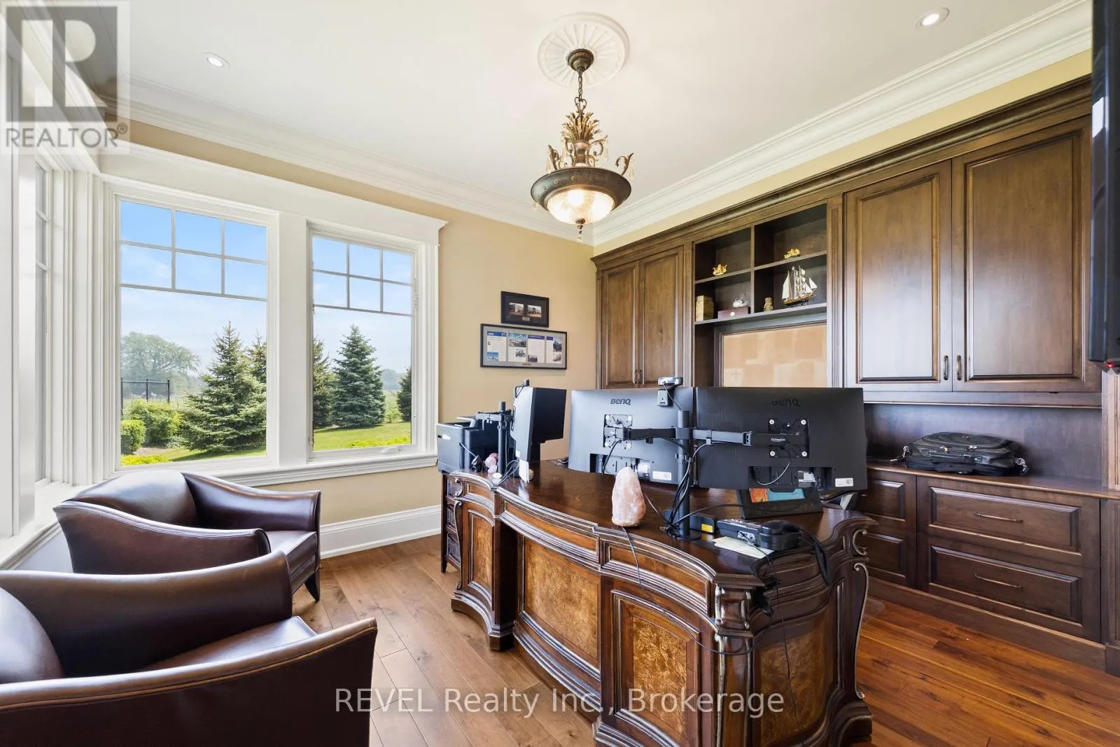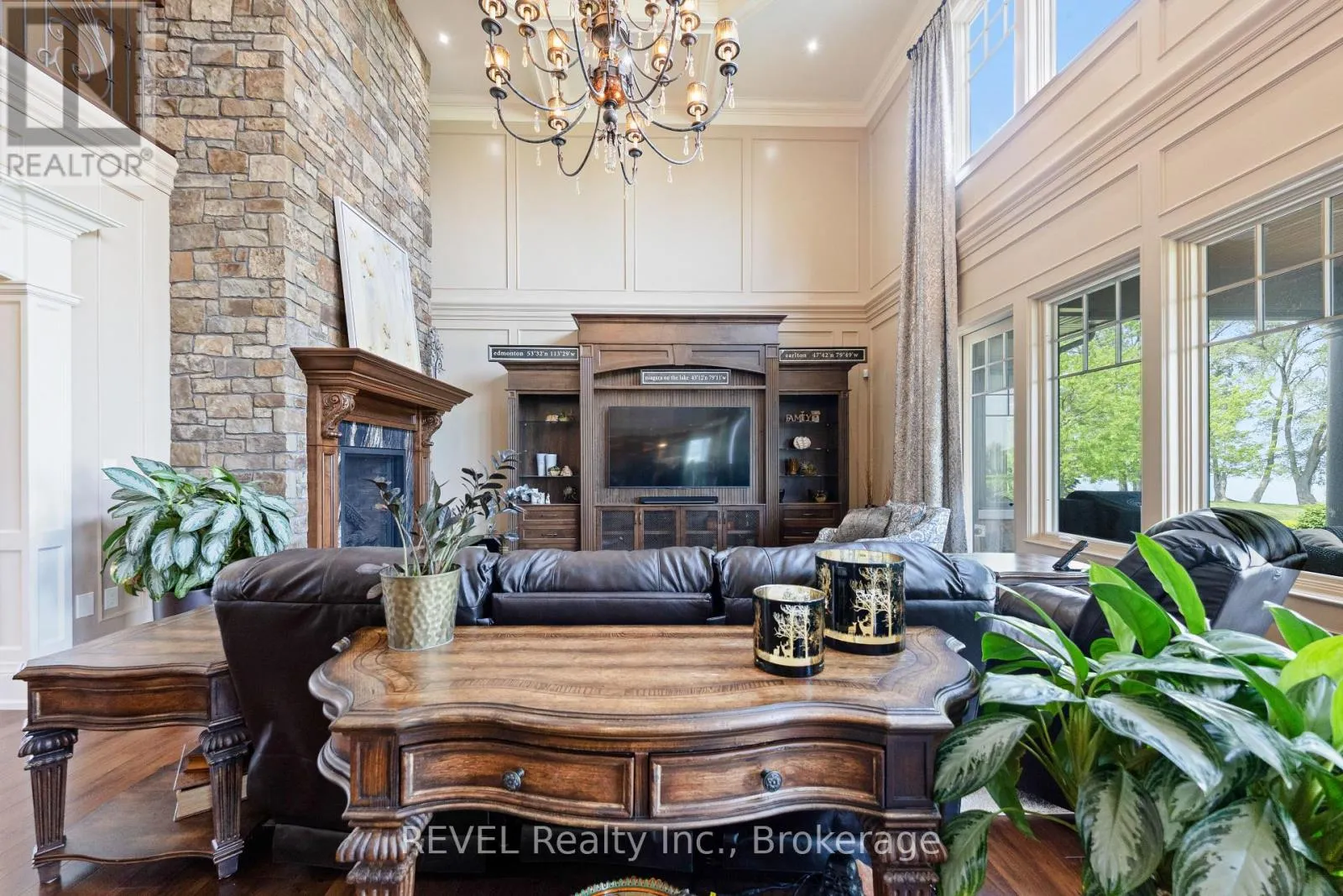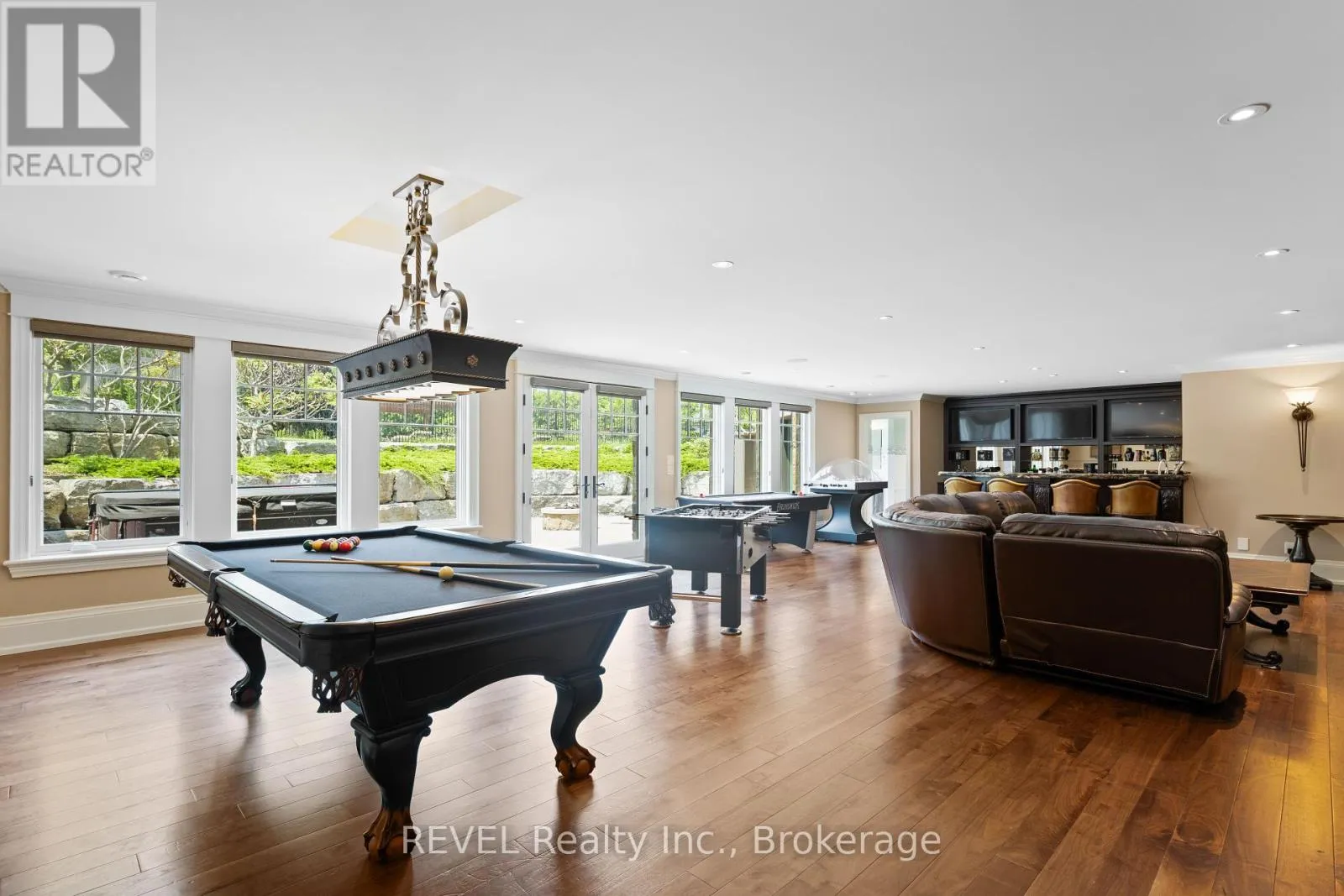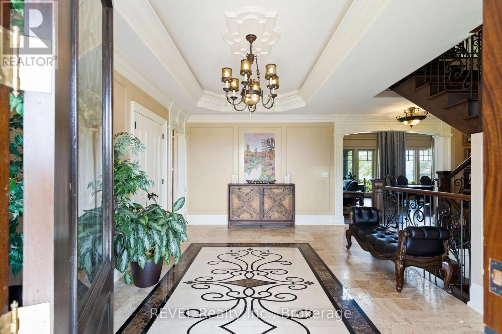 Cross Streets: Lakeshore and Four Mile Creek. ** Directions: Lakeshore. Exclusively positioned on nearly 13.4 acres of pristine land, this stunning luxury estate boasts nearly 500 feet of Lake Ontario shoreline with breathtaking views in Niagara-on-the-Lake. The property features a gated .5KM driveway flanked by meticulously maintained vineyards, leading to a masterpiece of design and construction. No detail has been spared in the creation of this unparalleled home, showcasing the finest materials, cutting-edge technology, and craftsmanship of the highest order. Enjoy resort-style living with a private pool, tennis courts, and a 4466 sq/ft bonus building, including 1936 sq/ft of finished space with 2 bathrooms. A state-of-the-art generator ensures uninterrupted power, while the dock and boat lift offer easy access to the lake. Experience the finest in both comfort and elegance at this exceptional waterfront retreat. (id:27476)