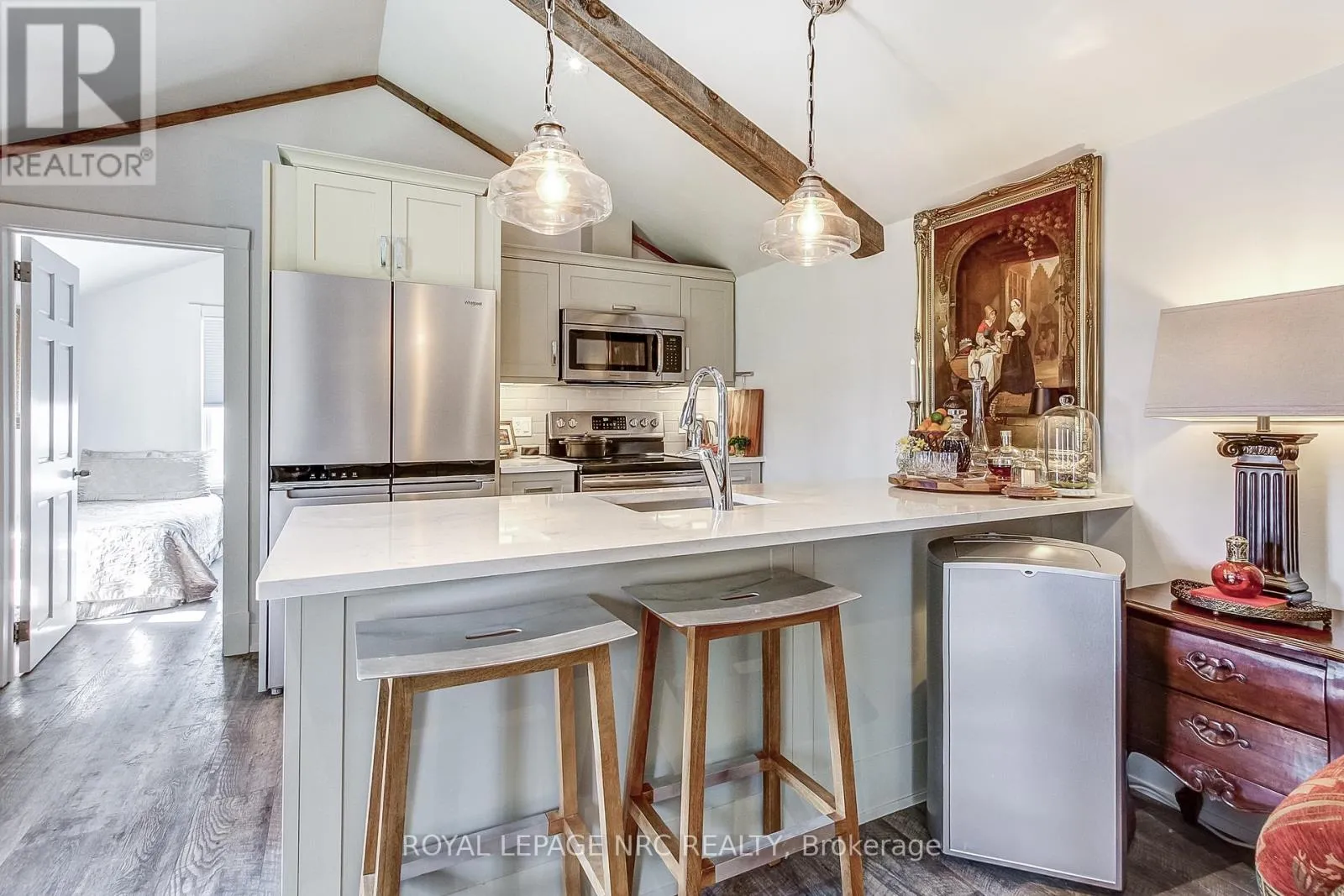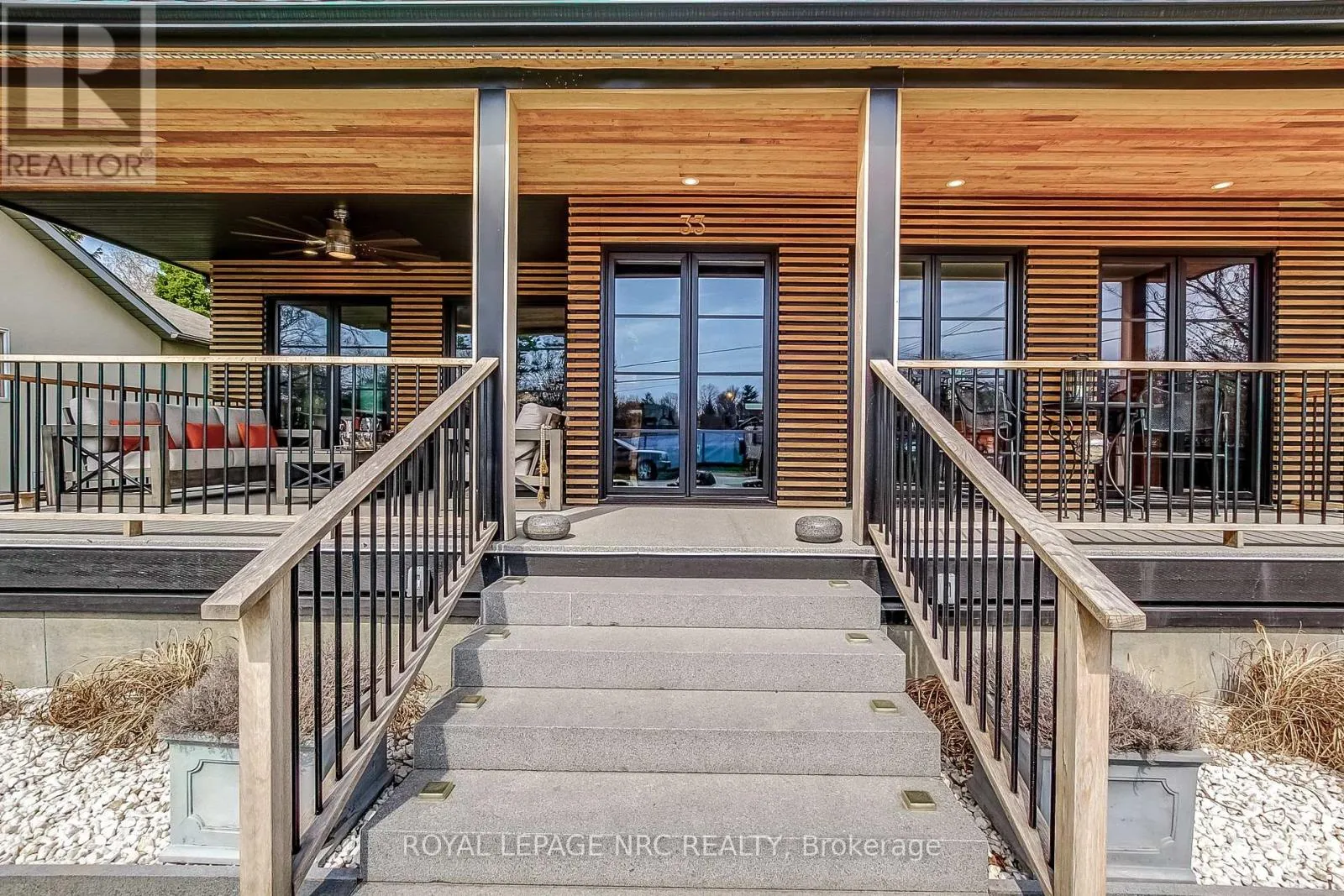 Cross Streets: King and Gage. ** Directions: King Street To Gage. Situated just two blocks from the historic and picturesque Queen Street, where gourmet dining, boutique shopping, and world-class theatre are part of everyday life, 33 Gage Street presents a rare and remarkable opportunity to acquire not only a beautifully renovated home, but a complete lifestyle experience in one of Canadas most celebrated communities.Set on an expansive and professionally landscaped lot, this sophisticated bungalow has undergone a comprehensive renovation over the past five years. Every detail has been thoughtfully curated to reflect a seamless blend of timeless elegance and modern design.The main residence offers a bright and beautifully proportioned interior, featuring 2 generously sized bedrooms and 2 fully updated, spa-inspired bathrooms. The heart of the home is the custom designed kitchen, equipped with a natural gas AGA two-oven range, and a Samsung Bespoke refrigerator and freezer with interchangeable glass panels, allowing for effortless personalization. Quality finishes, updated windows and doors, and a refined colour palette enhance the homes serene and sophisticated atmosphere.Outdoors, a spacious deck invites elegant entertaining or peaceful relaxation, surrounded by lush gardens and the tranquillity of a deep, private lot.What truly sets this property apart is the exceptional 2 bedroom guest house located at the rear of the lot. Offering approximately 675 sqft of fully self-contained living space, it is ideal for extended family, visiting guests, or adult children seeking privacy and independence. This secondary residence is fully serviced and designed with the same level of care and craftsmanship as the main home.Properties combining this level of renovation, land size, and dual-residence flexibility are extremely rare in Niagara-on-the-Lake. 33 Gage Street is not simply a residence it is a statement of lifestyle, comfort, and enduring value in one of the country's most prestigious and sought-after settings (id:27476)