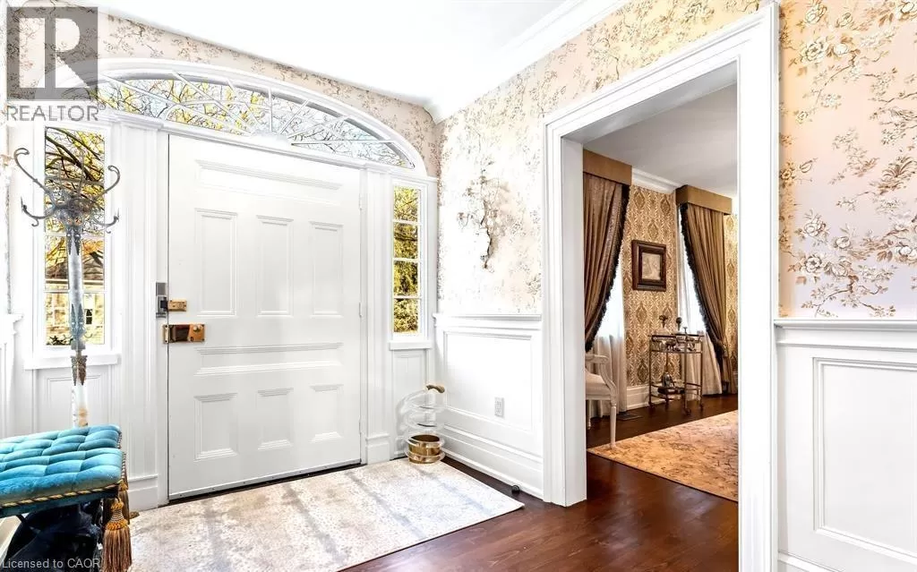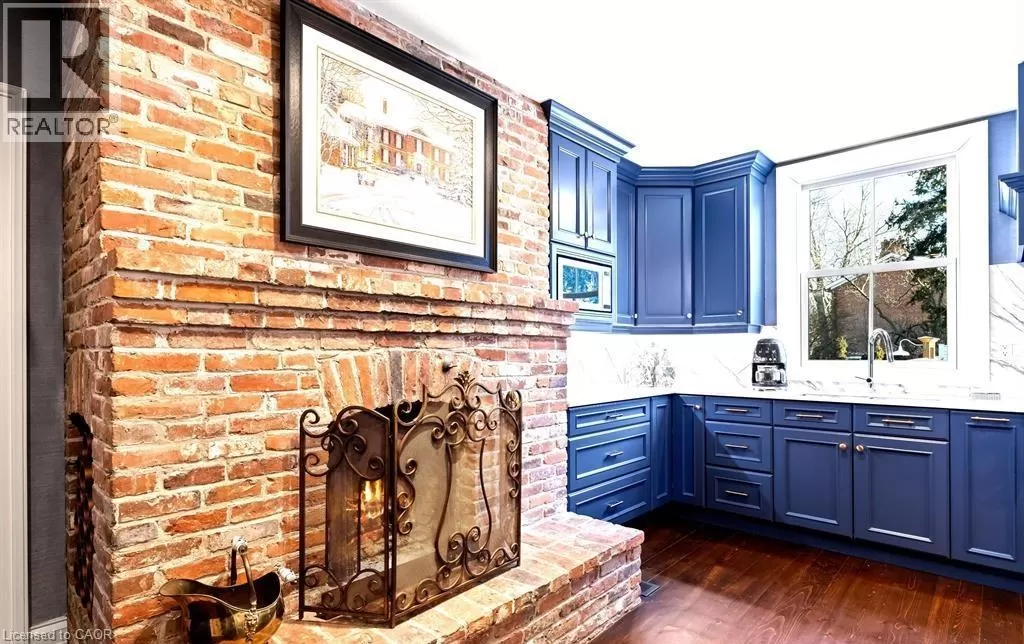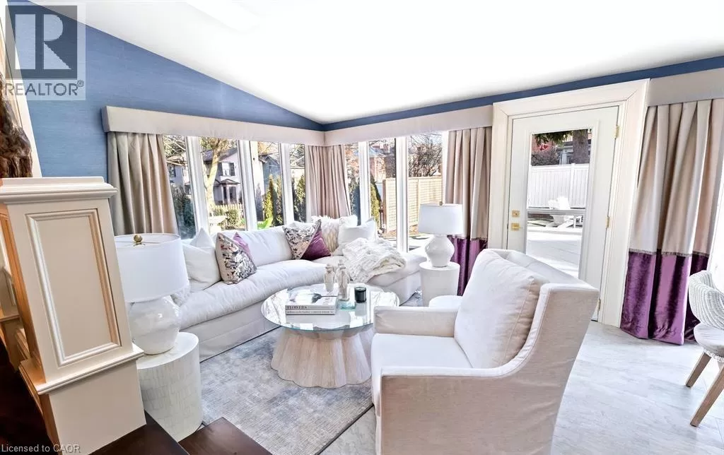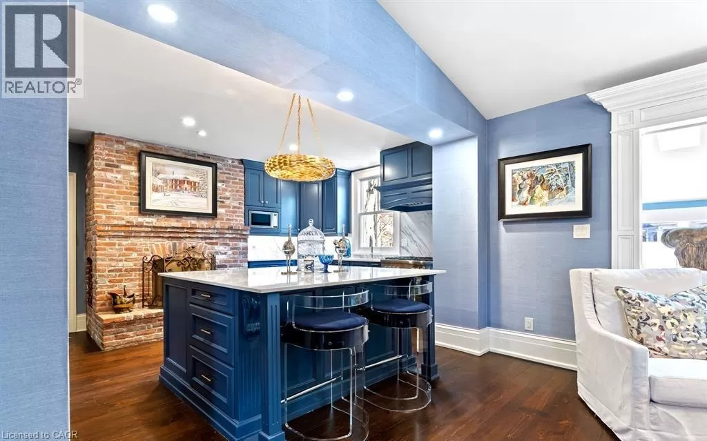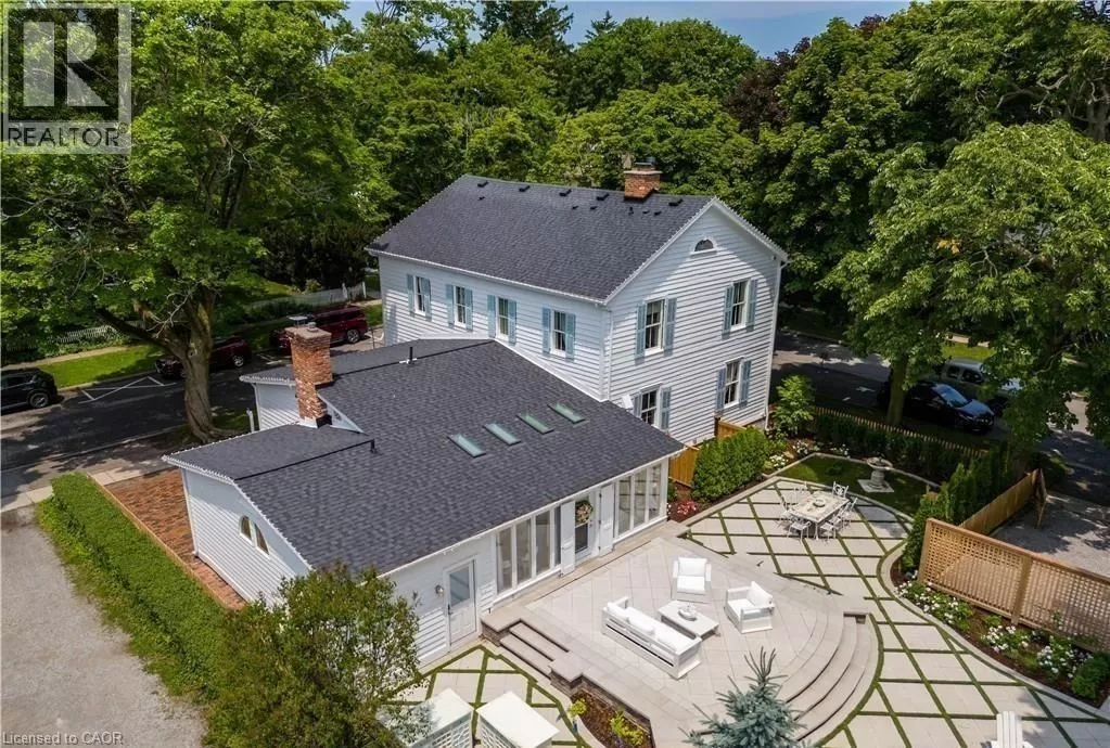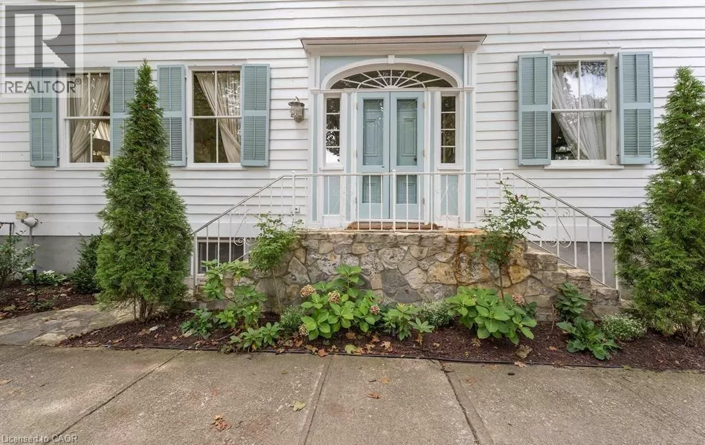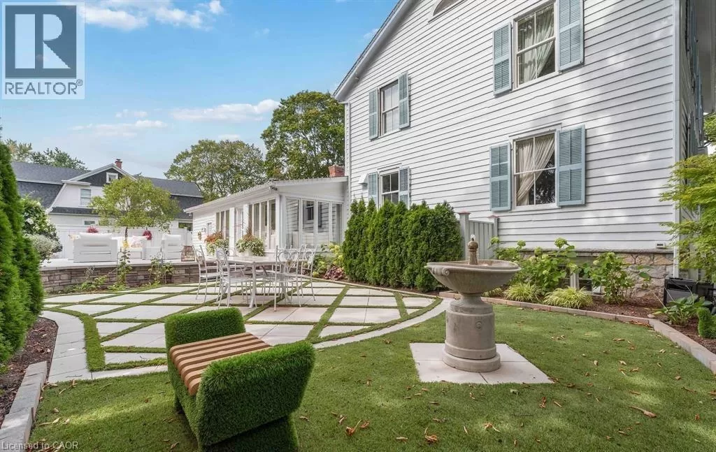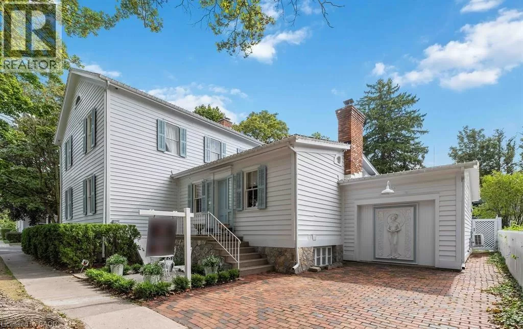 Corner of Prideaux and Victoria Located in one of the most desirable areas of Old Town, beautiful marriage of old-world charm and modern upgrades. Walk to iconic Queen St. with its boutiques, restaurants and theatres or take a short stroll to the waterfront. Enjoy the serenity of Queen's Royal Park or play a round of golf at Canada's oldest golf course. This home showcases stunning decor such as designer light fixtures, custom drapes, valances and luxurious wall coverings. Enter through the antique door into the elegant front entry with gleaming hardwood floors throughout. The formal dining room is sheer opulence with its antique chandelier set in a plaster ceiling medallion, decorative built-in shelving and fireplace with hand-crafted mantle. The grand living room features a beautiful archway with custom millwork set between coffered ceilings with designer brass fixtures, built-in bookcase and buffet with accent mirrored wall. Bright and airy, the kitchen is definitely the heart of the home with 5 stainless steel appliances, center island, quartz countertops, Nantucket grey cabinetry, heated floors and cozy fireplace. Spacious family room with its comfortable seating centered around a fireplace with hand-crafted mantle and soaring vaulted ceiling with contemporary bubble chandeliers. A gorgeous sunken sunroom which offers floor-to-ceiling windows and 4 skylights overlooking the jaw-dropping two-tiered yard. Main floor guest retreat with ensuite. The Grand Victorian staircase features designer runner and custom wainscotting leading to the elegant and spacious landing. Each of the 3 bedrooms have beautiful hardwood flooring, the Primary bedroom with private water closet and spa-like ensuite bath with heated herringbone tile, sumptuous soaker tub, walk-in glass rain shower. Second and third bedrooms share a bath with heated marble flooring and custom vanity. A cozy rec-room and 2nd kitchen in the lower level completes this charming home. (id:27476)