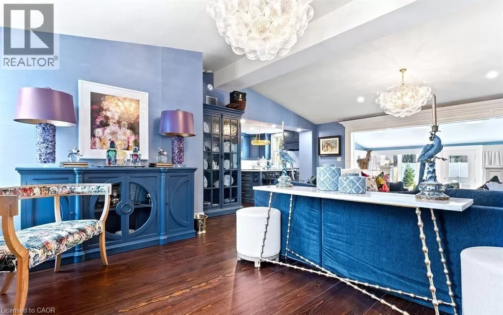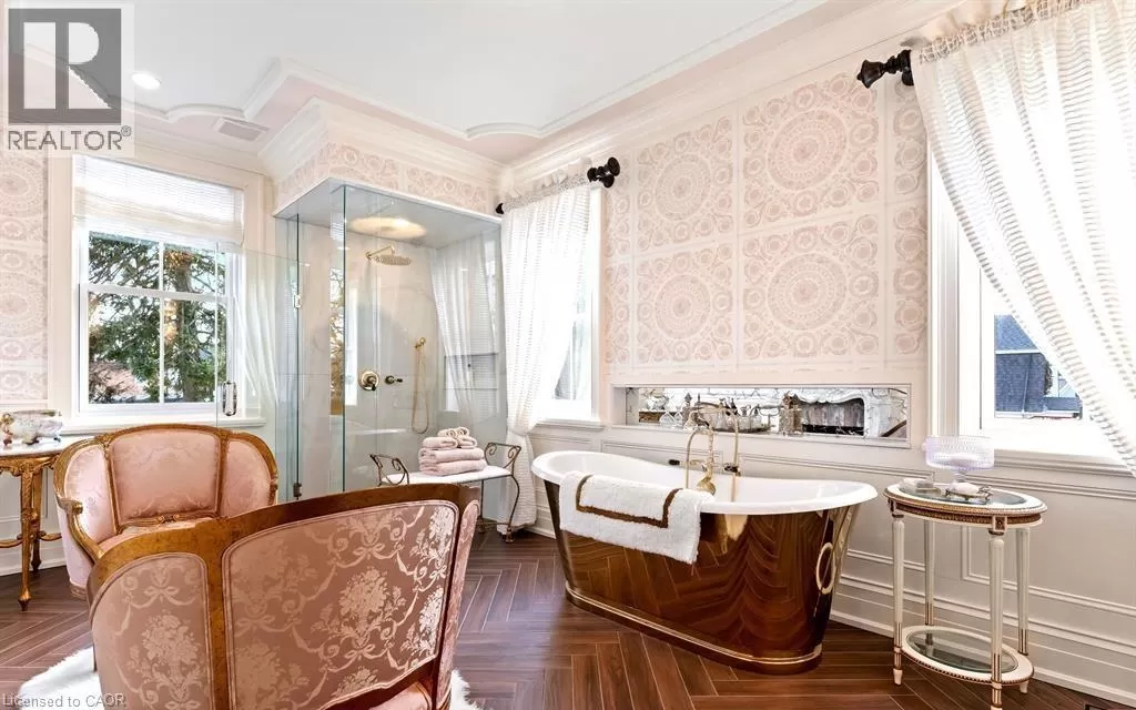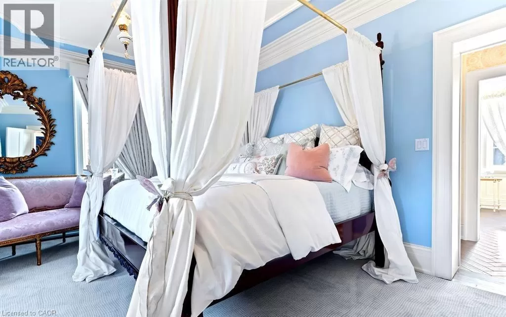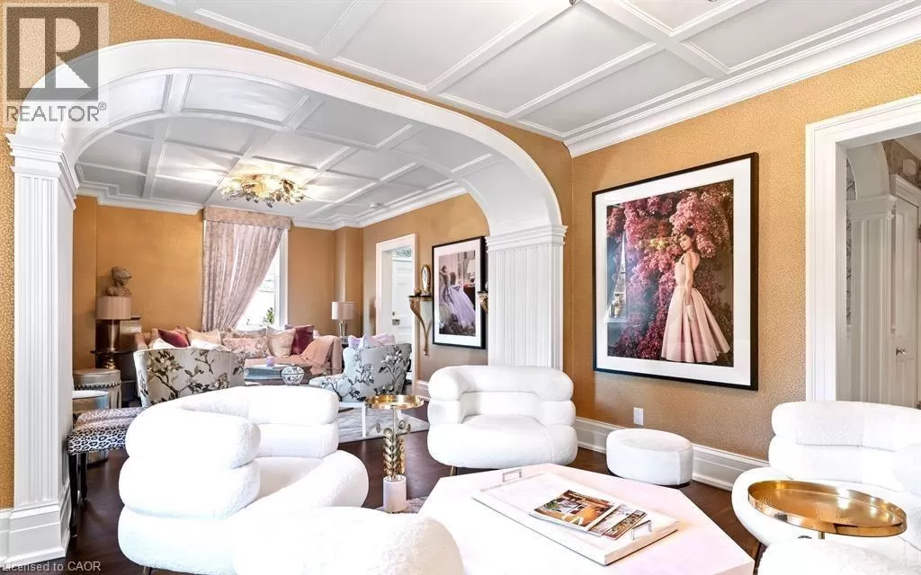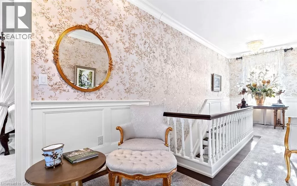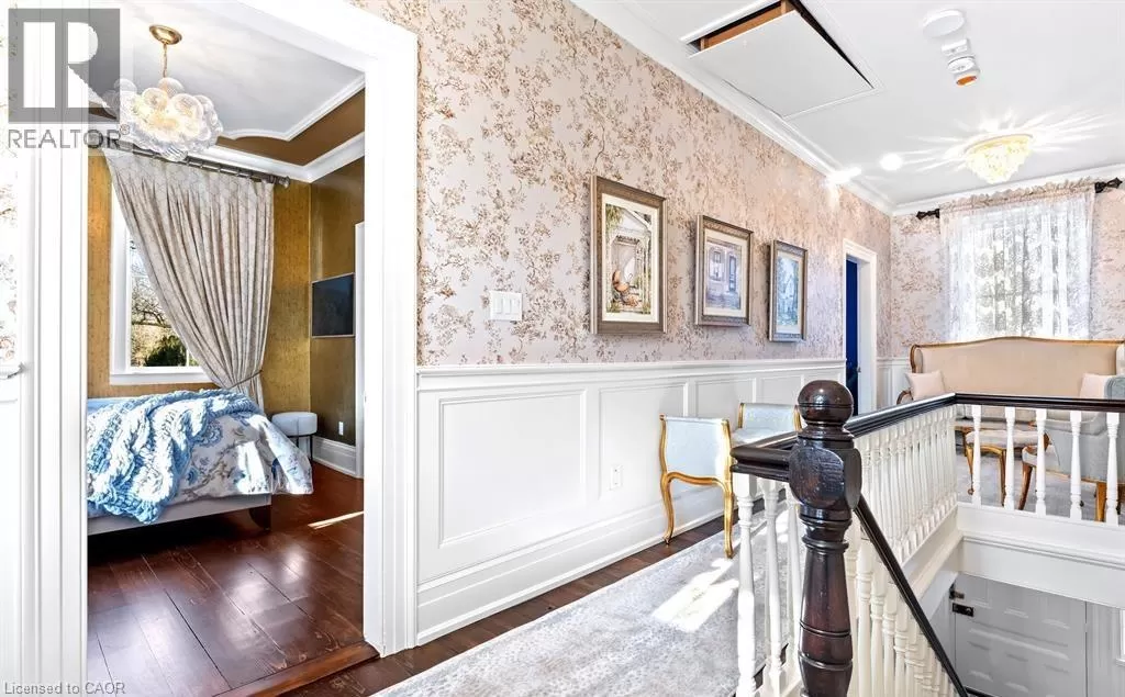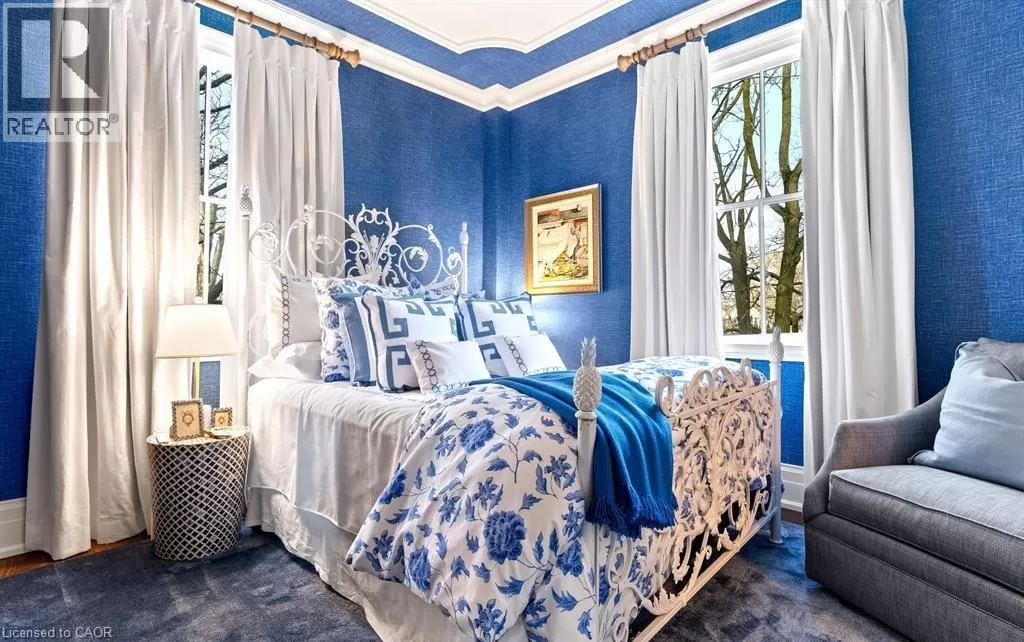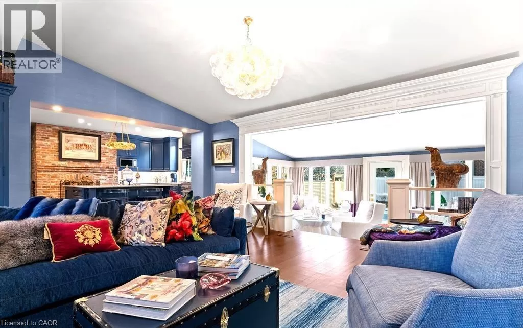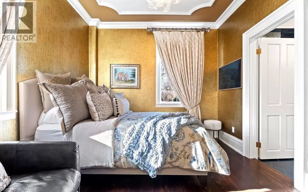 Corner of Prideaux and Victoria Located in one of the most desirable areas of Old Town, beautiful marriage of old-world charm and modern upgrades. Walk to iconic Queen St. with its boutiques, restaurants and theatres or take a short stroll to the waterfront. Enjoy the serenity of Queen's Royal Park or play a round of golf at Canada's oldest golf course. This home showcases stunning decor such as designer light fixtures, custom drapes, valances and luxurious wall coverings. Enter through the antique door into the elegant front entry with gleaming hardwood floors throughout. The formal dining room is sheer opulence with its antique chandelier set in a plaster ceiling medallion, decorative built-in shelving and fireplace with hand-crafted mantle. The grand living room features a beautiful archway with custom millwork set between coffered ceilings with designer brass fixtures, built-in bookcase and buffet with accent mirrored wall. Bright and airy, the kitchen is definitely the heart of the home with 5 stainless steel appliances, center island, quartz countertops, Nantucket grey cabinetry, heated floors and cozy fireplace. Spacious family room with its comfortable seating centered around a fireplace with hand-crafted mantle and soaring vaulted ceiling with contemporary bubble chandeliers. A gorgeous sunken sunroom which offers floor-to-ceiling windows and 4 skylights overlooking the jaw-dropping two-tiered yard. Main floor guest retreat with ensuite. The Grand Victorian staircase features designer runner and custom wainscotting leading to the elegant and spacious landing. Each of the 3 bedrooms have beautiful hardwood flooring, the Primary bedroom with private water closet and spa-like ensuite bath with heated herringbone tile, sumptuous soaker tub, walk-in glass rain shower. Second and third bedrooms share a bath with heated marble flooring and custom vanity. A cozy rec-room and 2nd kitchen in the lower level completes this charming home. (id:27476)