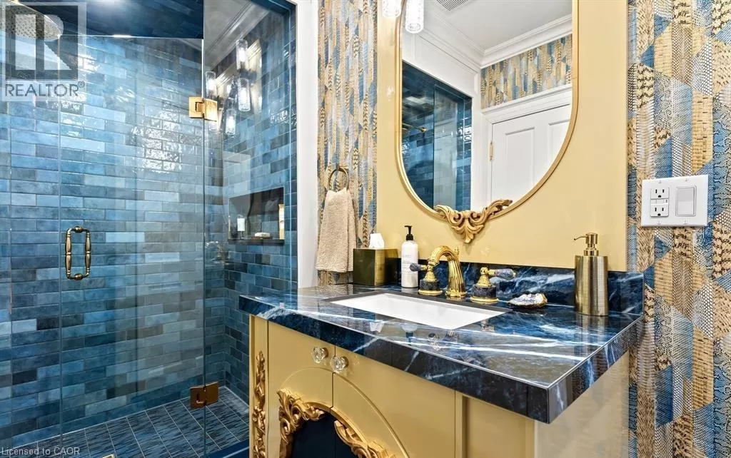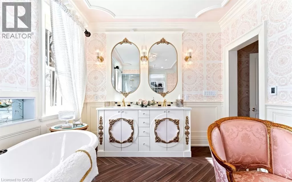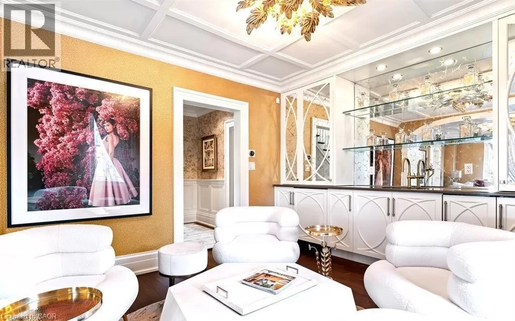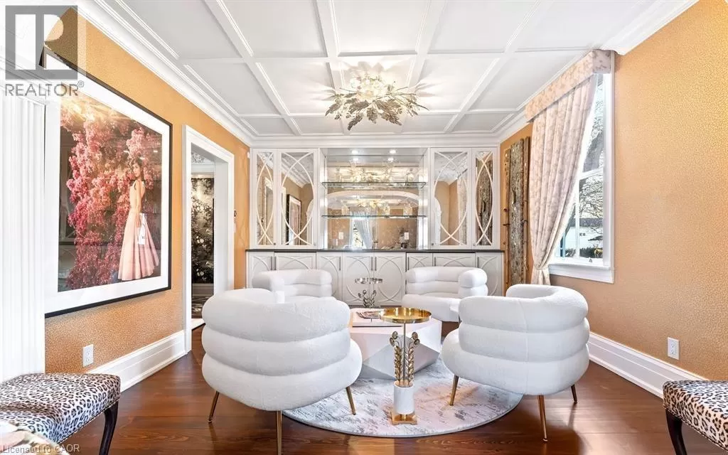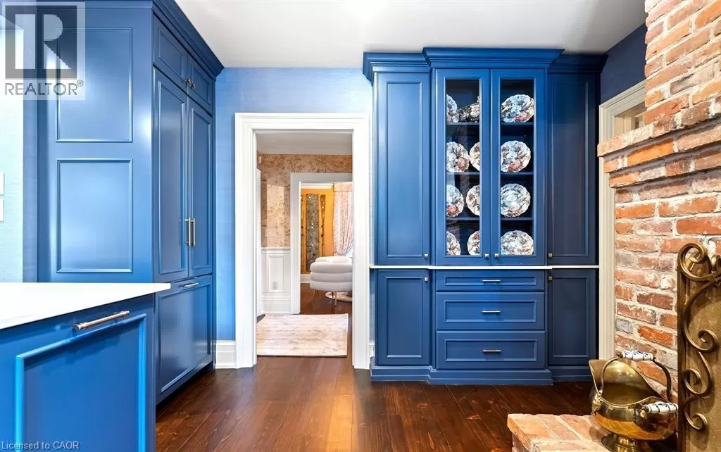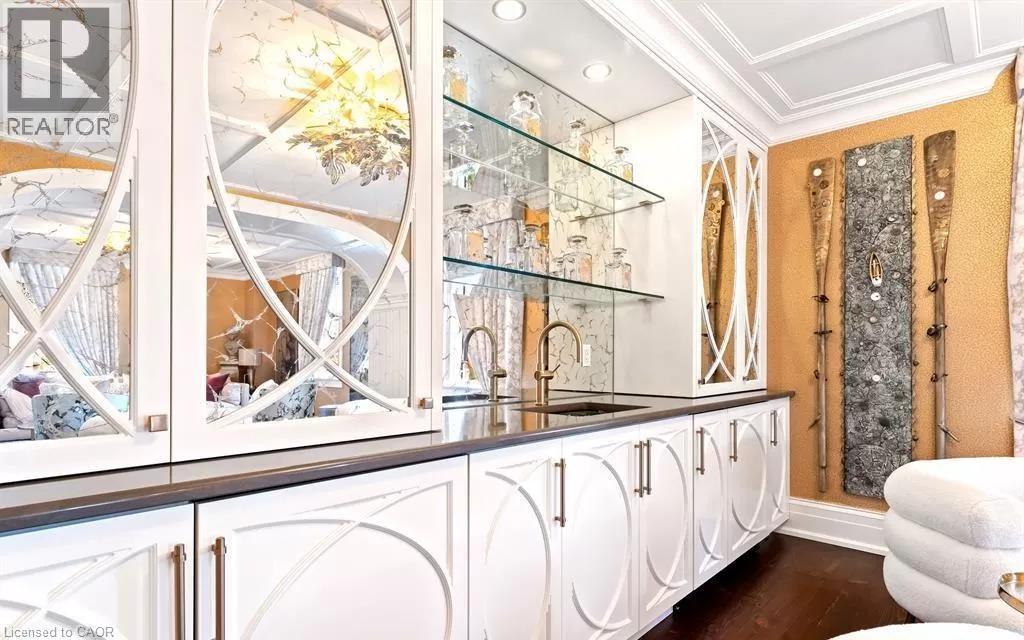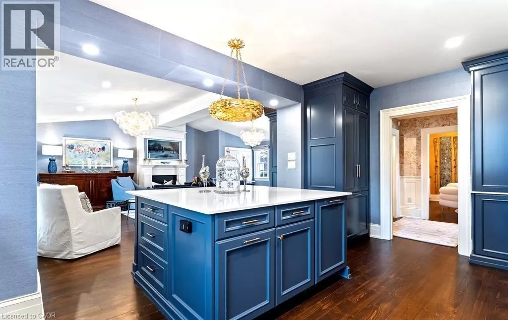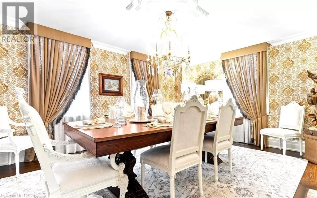 Corner of Prideaux and Victoria Located in one of the most desirable areas of Old Town, beautiful marriage of old-world charm and modern upgrades. Walk to iconic Queen St. with its boutiques, restaurants and theatres or take a short stroll to the waterfront. Enjoy the serenity of Queen's Royal Park or play a round of golf at Canada's oldest golf course. This home showcases stunning decor such as designer light fixtures, custom drapes, valances and luxurious wall coverings. Enter through the antique door into the elegant front entry with gleaming hardwood floors throughout. The formal dining room is sheer opulence with its antique chandelier set in a plaster ceiling medallion, decorative built-in shelving and fireplace with hand-crafted mantle. The grand living room features a beautiful archway with custom millwork set between coffered ceilings with designer brass fixtures, built-in bookcase and buffet with accent mirrored wall. Bright and airy, the kitchen is definitely the heart of the home with 5 stainless steel appliances, center island, quartz countertops, Nantucket grey cabinetry, heated floors and cozy fireplace. Spacious family room with its comfortable seating centered around a fireplace with hand-crafted mantle and soaring vaulted ceiling with contemporary bubble chandeliers. A gorgeous sunken sunroom which offers floor-to-ceiling windows and 4 skylights overlooking the jaw-dropping two-tiered yard. Main floor guest retreat with ensuite. The Grand Victorian staircase features designer runner and custom wainscotting leading to the elegant and spacious landing. Each of the 3 bedrooms have beautiful hardwood flooring, the Primary bedroom with private water closet and spa-like ensuite bath with heated herringbone tile, sumptuous soaker tub, walk-in glass rain shower. Second and third bedrooms share a bath with heated marble flooring and custom vanity. A cozy rec-room and 2nd kitchen in the lower level completes this charming home. (id:27476)