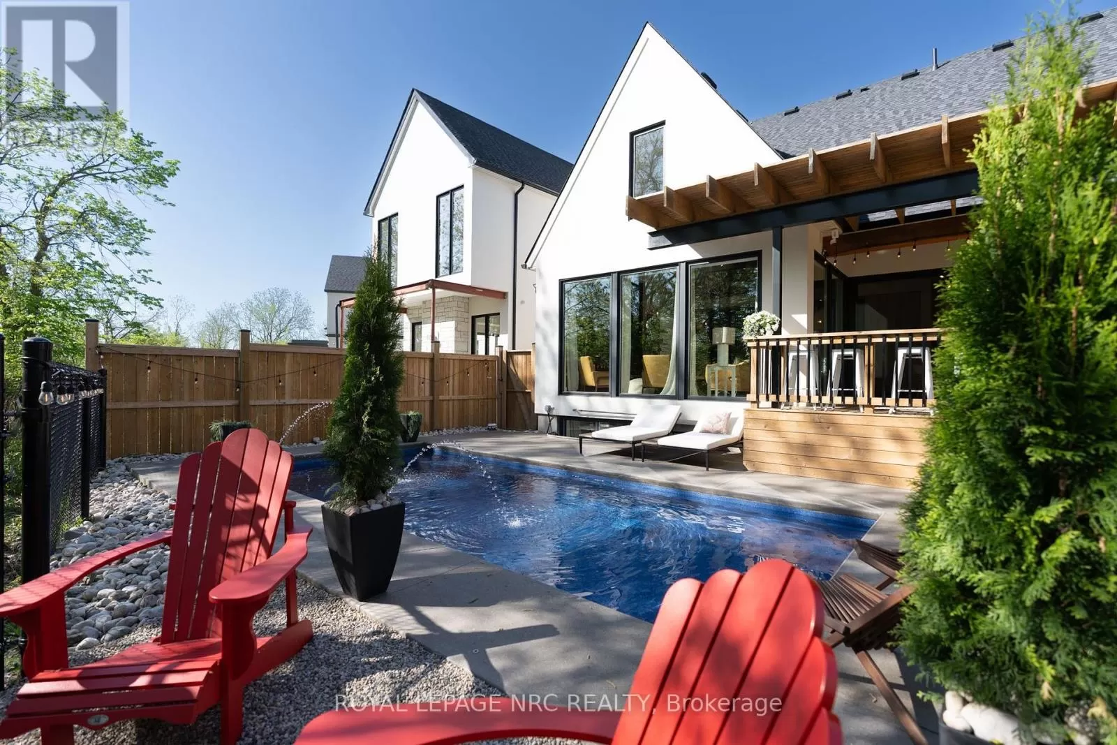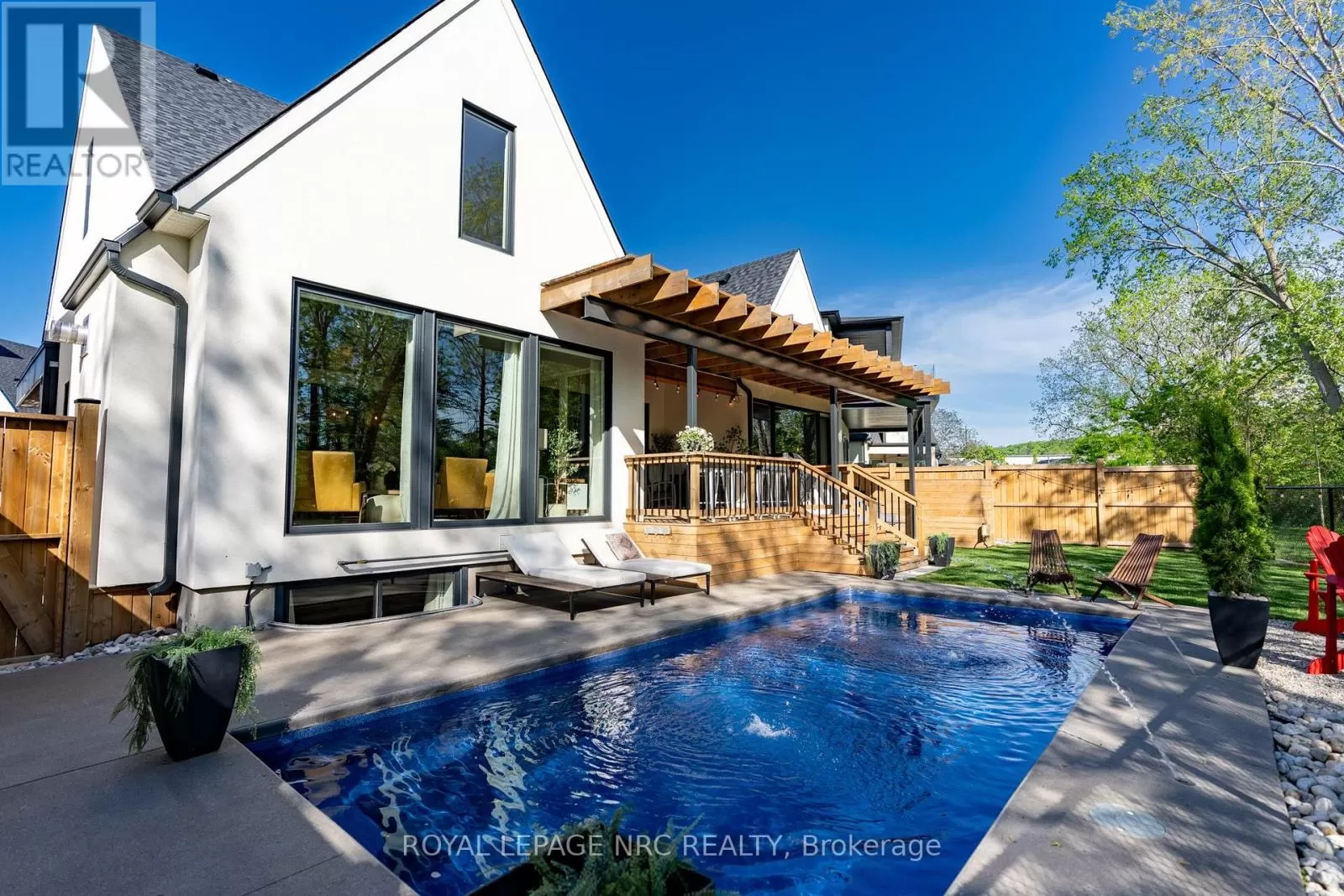 Cross Streets: York Road. ** Directions: Off Creek Road. A Perfect Blend of Luxury and Opportunity. Nestled on a tranquil crescent, this custom-designed Bungaloft offers a harmonious blend of elegance and functionality, perfect for those who value superior craftsmanship and modern conveniences. With breathtaking views of a ravine and an inviting in-ground heated saltwater pool, the covered terrace provides the perfect perch for relaxation and entertaining. With spacious and Thoughtfully designed living areas, this home boasts four well-appointed bedrooms, providing ample space for family or guests. The Great Room features exquisite wood flooring, while the ensuite bathroom is designed for comfort with heated floors. A private loft area adds versatility to the layout, complete with a 4-piece bathroom that ensures convenience and privacy. Chef's dream open-concept kitchen is a delight for culinary enthusiasts. Upgraded countertops provide both beauty and practicality, while ample workspaces and top-of-the-line appliances ensure effortless meal preparation. Adjacent to the kitchen, the dining area is perfectly designed for hosting, featuring a coffee bar and serving area. Access to the rear terrace through expansive sliding doors adds a seamless connection between indoor and outdoor spaces. The lower level offers endless possibilities and is substantially completed, offering tremendous flexibility to personalize and expand your living space. It features extra-large egress windows that invite natural light and will accommodate three future bedrooms, two rough-in bathrooms, and a future recreational room designed with a wet bar. Additional amenities include cold storage and laundry rough-ins, making this space a blank canvas to suit your needs. Choose your paint, flooring finishes, and trim to transform this area into your dream extension. Experience the perfect blend of sophistication, comfort, and creative freedom with this stunning Bungaloft. This property is more than a house - it's a canvas for your dream home (id:27476)