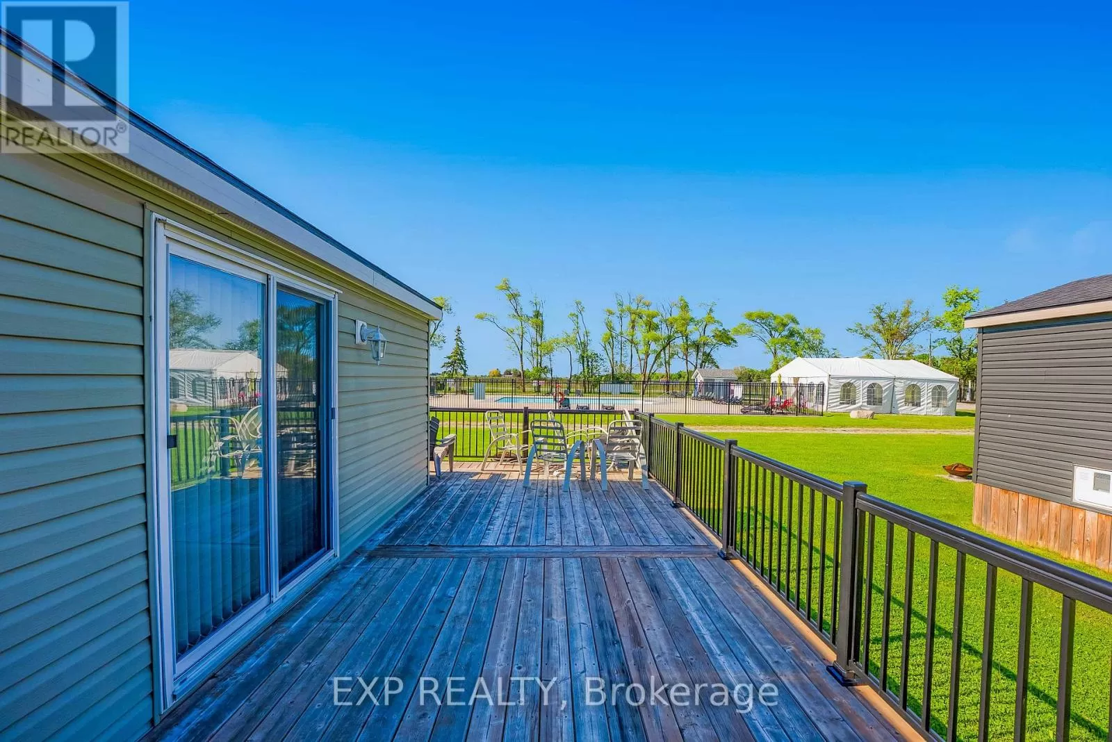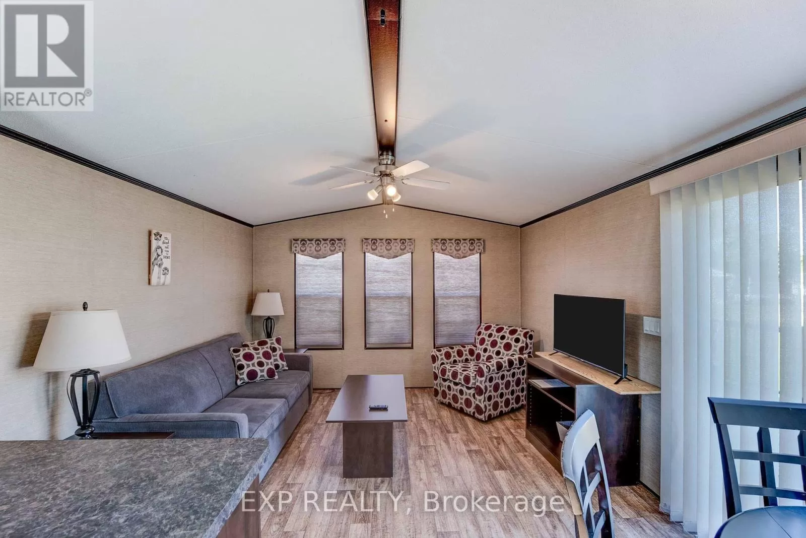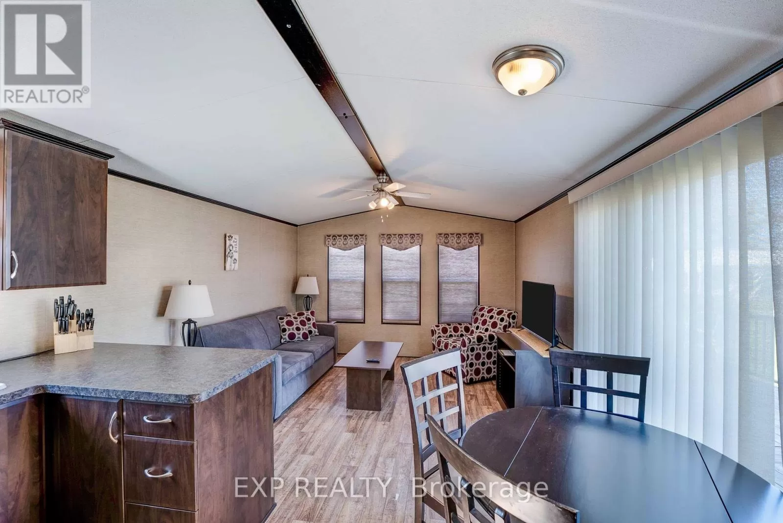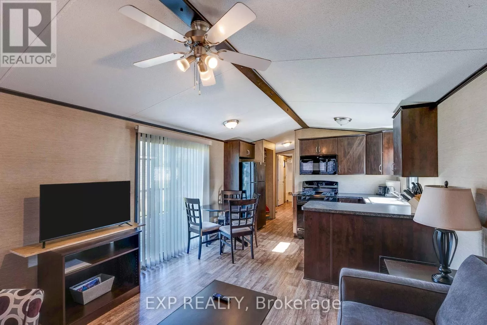Cross Streets: Niagara Parkway & Line 8 Road. ** Directions: Niagara Parkway. Welcome to Unit #308 at 1501 Line 8 Road in beautiful Niagara-on-the-Lake your perfect seasonal getaway at the sought-after Vine Ridge Resort. Ideally situated directly across from the resorts pool and multi-sport courts, this premium-located cottage lets you enjoy front-row access to all the action and amenities without ever leaving your deck. Whether you're relaxing inside or lounging on the patio, you're just steps away from fun and family-friendly entertainment. This well-appointed unit features 2 comfortable bedrooms, 1 full bathroom, a functional kitchen, and a spacious living area perfect for creating unforgettable summer and fall memories. As a seasonal property, the park operates from May 1 to October 31giving you six months of carefree living in one of Niagara's most desirable vacation destinations. Enjoy all the perks of resort-style living with no property taxes and no utility bills. Your ownership includes unlimited use of all resort facilities for you, your family, and your guests: a massive 1-acre splash pad, in-ground pool, Kids Klub, multi-sport courts, playgrounds, special events, and even WiFi access at the Welcome Centre. The Annual Resort Management fee is $8490 (2025), which cover water, sewage, hydro, grass cutting, and general maintenance, so you can focus entirely on relaxation. Owners are only responsible for propane and insurance. For more information about the resort and its offerings, visit vineridgeresort.com. Don't miss your chance to own one of the best-located units in the park. Your perfect seasonal escape awaits! (id:27476)