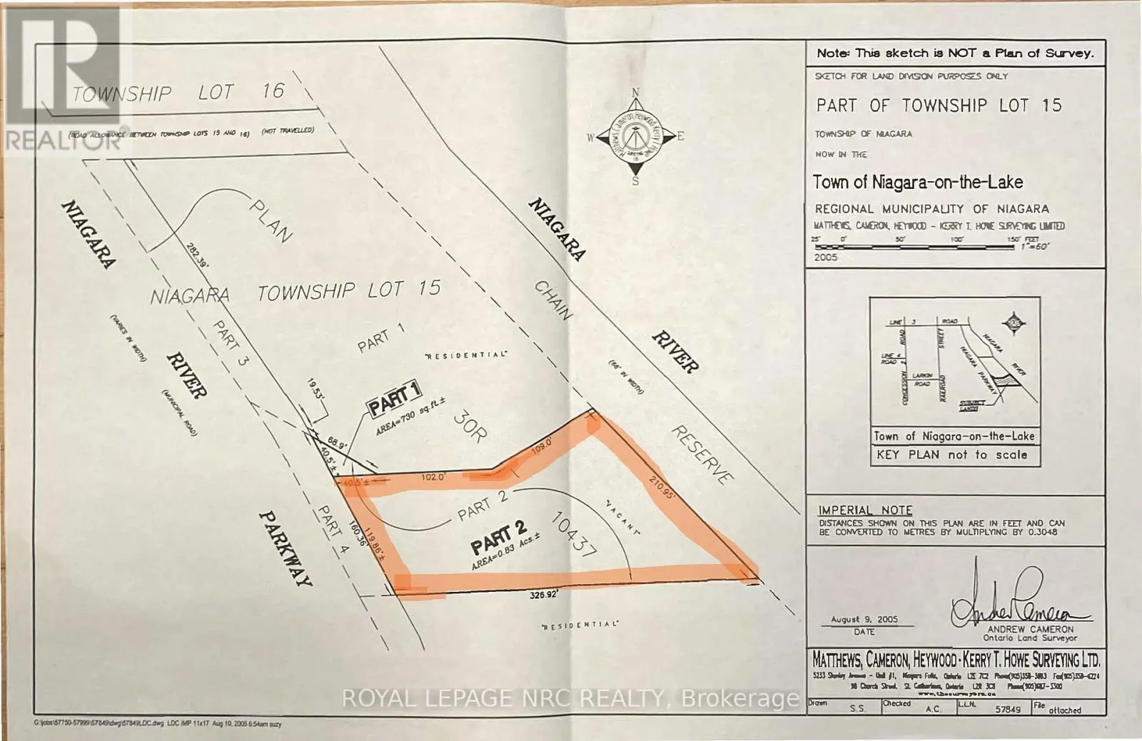 Cross Streets: Service Road 60. ** Directions: Located in front of Servise Road 60, riverside. A Rare Waterfront Vacant Lot on the lower Niagara River on the gorgeous Niagara Parkway, A truly exceptional opportunity, this beautiful building lot offers 210 feet of frontage on the majestic Niagara River. Enjoy breathtaking, unobstructed views of the international waterway, with tranquil sunrises, passing boats, and stunning natural surroundings at your doorstep. Nestled in a serene and prestigious Niagara-on-the-Lake location, this rarely available property combines privacy and unparalleled river frontage. Whether you envision a luxurious custom home or a peaceful retreat, this lot offers the perfect canvas for your dream waterfront lifestyle. Don't miss this rare public offering of riverfront properties of this caliber, which seldom come to market. (id:27476)