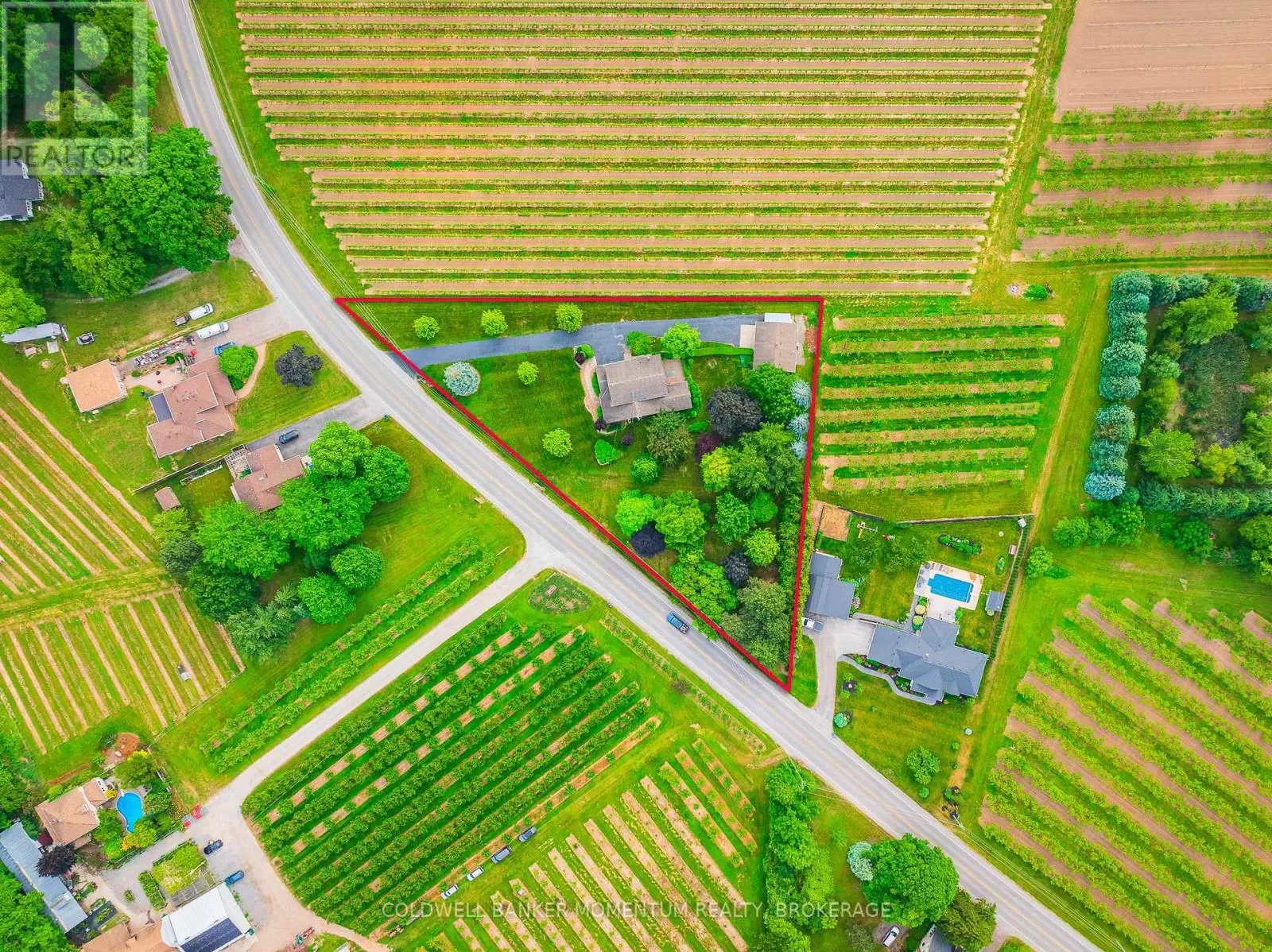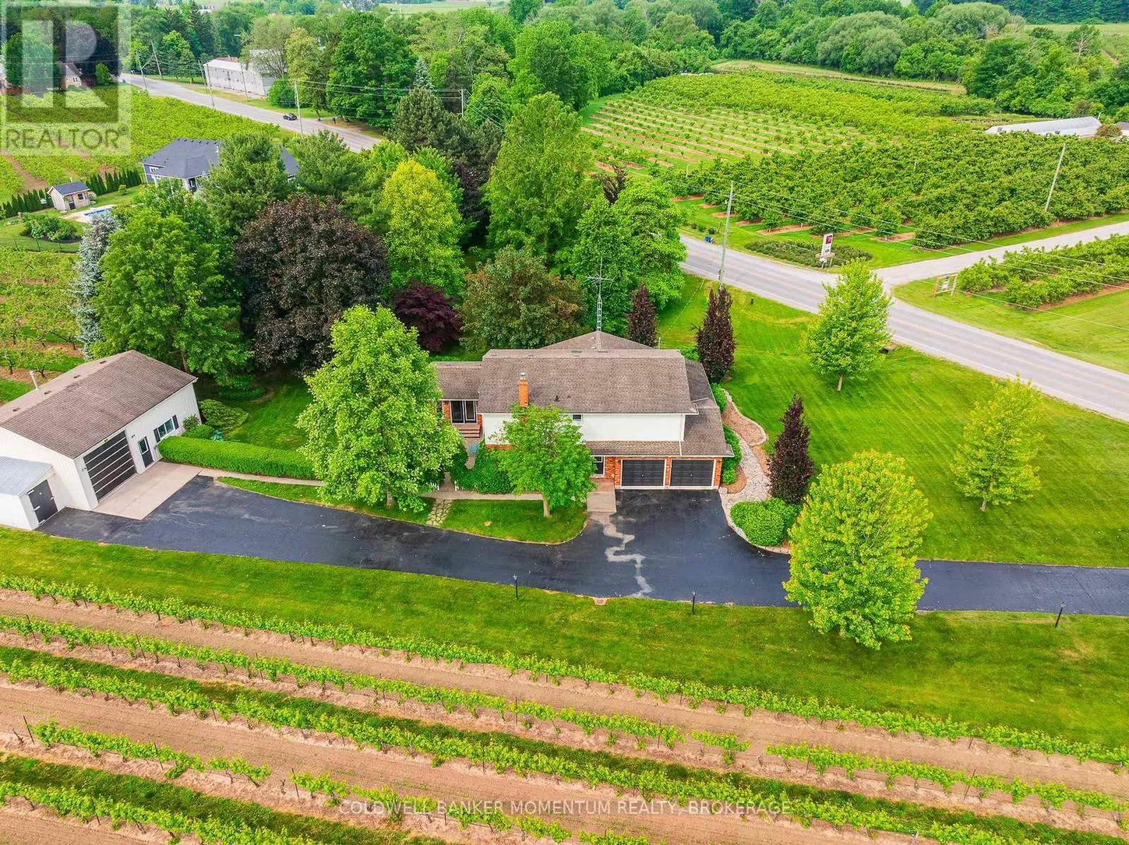 Hunter Road and Four Mile Creek Road ABSOLUTELY STUNNING! This beautiful home in tranquil Niagara-on-the-Lake sits on 1.1 acres and is being offered by the original owners. This gorgeous 2 storey home is located just minutes from dozens of wineries and tourist attractions but also offers quiet country living. The pie shaped lot features a 3 bedroom home with large living spaces, beautiful private patio off the kitchen, a 30ft x 36ft shop, and plenty of mature trees.. The main floor is perfect for a growing family as it features a living room, family room, 3 piece bathroom, large kitchen and dining area and a main floor laundry room. The second floor has a large master bedroom with 2 large walk-in closets, a 5 piece bathroom and 2 more spacious bedrooms. The basement has high ceilings and is just waiting to be finished as you please. There is an attached 2 car garage and also lots of driveway parking. The large shop has a dedicated furnace and 100 amp service. This property is also on municipal sewers and water which is not common in the area. Book your showing today and start planning your future on this stunning property. Serenity awaits. (id:27476)