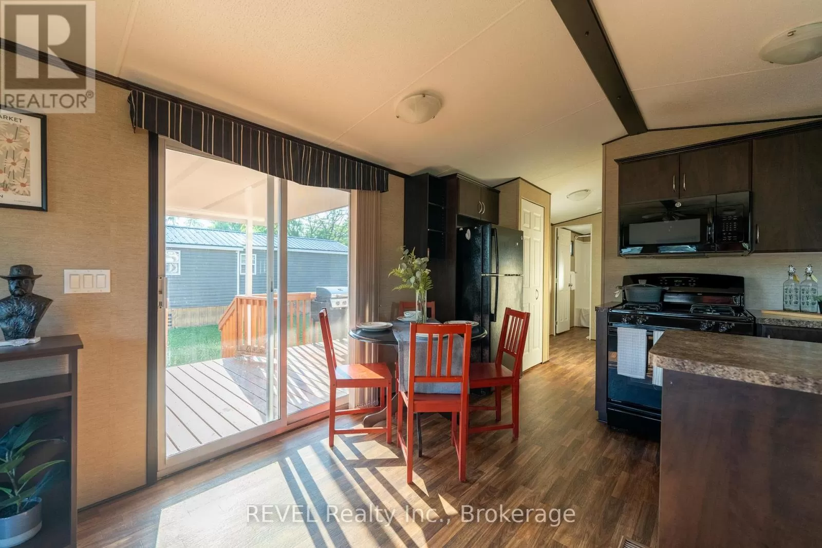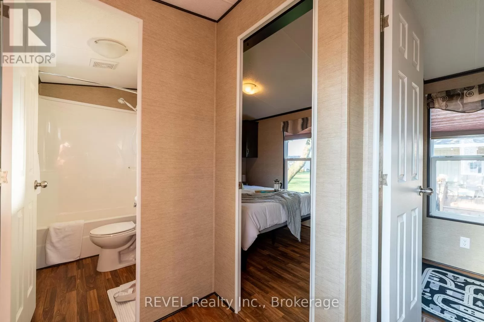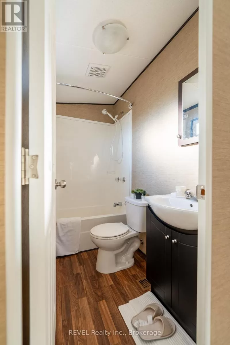 Niagara Parkway to Line 8 Road 2026 Resort Fees included in price!!!! Welcome to 342 Merlot, this beautifully updated 2-bedroom, 1-bath vacation cottage at Vine Ridge Resort has just received a full makeover and is ready for you to enjoy. Situated on the largest lot in the resort, the property now features a brand-new 3-car private driveway, freshly stained decking, rails, shed, and skirting, giving it a polished and inviting look. The spacious side deck with a covered roof is ideal for relaxing or entertaining, while the open-concept living and dining area offers a bright and welcoming interior. Fully furnished and move-in ready, it also includes a shed and an upgraded fire pitjust bring your suitcase. Enjoy peaceful, quiet surroundings with the convenience of being within walking distance to all amenities. Located in scenic Niagara-on-the-Lake, the cottage boasts panoramic views of the surrounding vineyards and access to exceptional resort amenities, including a 4000 sq ft fun pool, a second heated pool, a pavilion for events, courts for pickleball, tennis, and basketball, beach soccer, multiple kids' playgrounds, horseshoe pits, and on-site laundry and store. This rare offering is the perfect retreat for families or couples looking for a turn-key getaway in wine country. Financing available $15,900 down/ $168 weekly. Seasonal resort-open May 1-October 31. Annual fee included for the 2026 season and includes hydro, water, septic, landscaping and grass cutting, use of the resort amenities for friends and family, full entertainment program and Airbnb options. (id:27476)