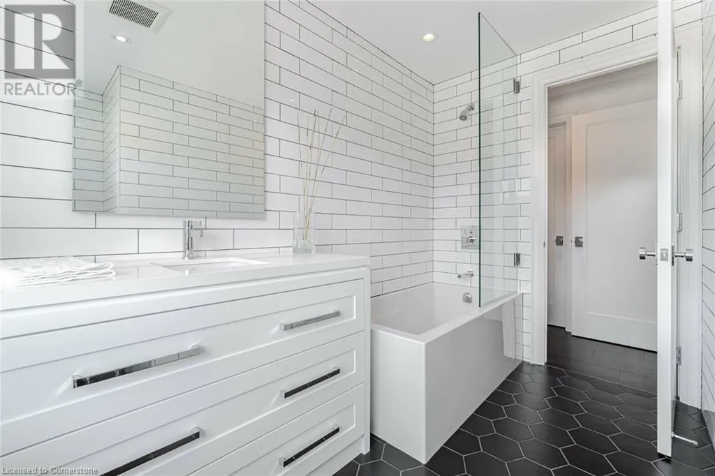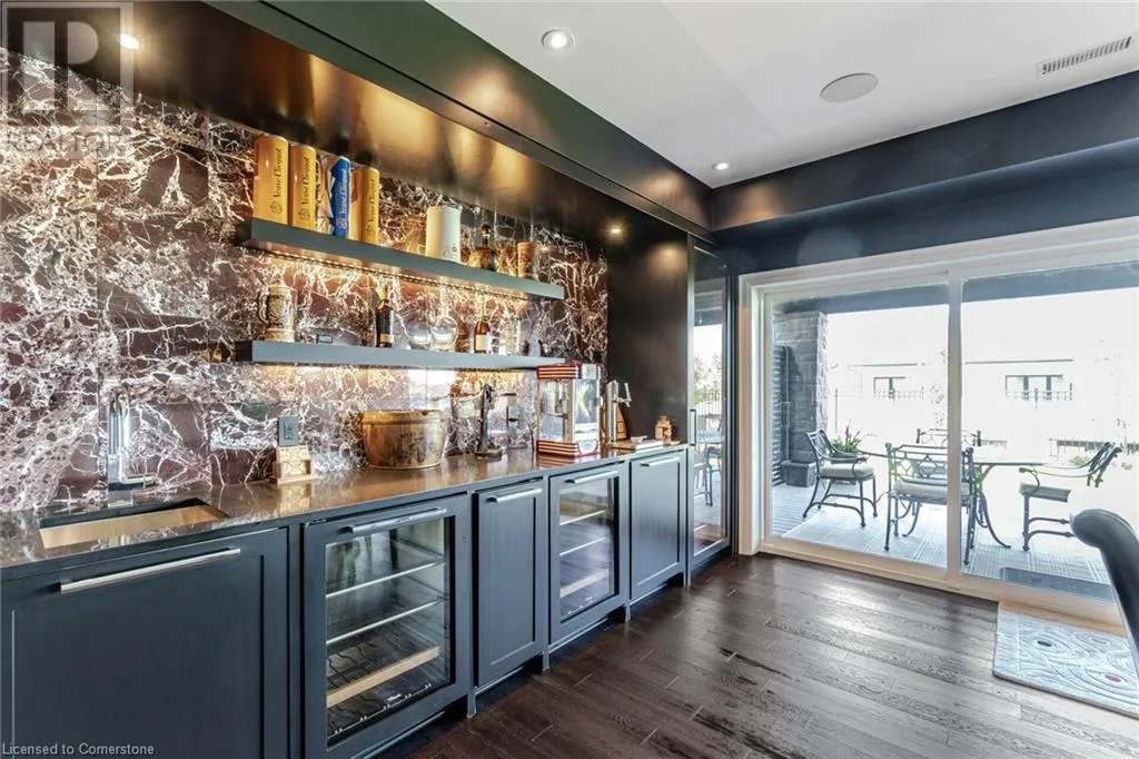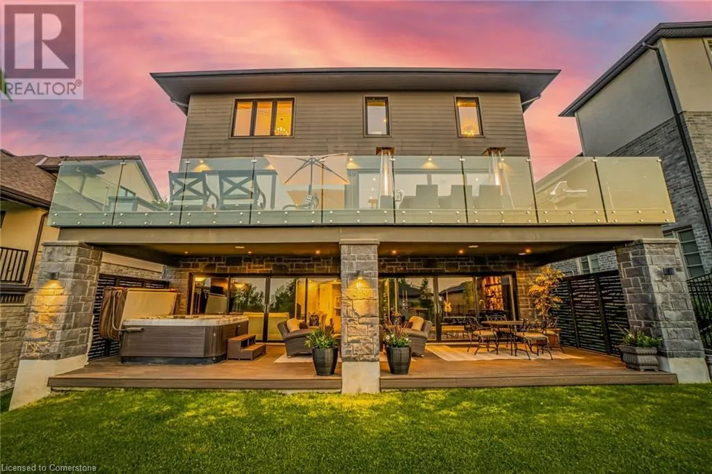 Tanbark Rd/Kenmir Ave Escape to this lavish retreat located in the prestigious St. Davids area. This luxurious home offers a break from the city hustle, inviting you to indulge in tranquility and sophistication. No expense spared in creating this custom-built 4bdrm, 5 bath estate home. Over 4,100sqft boasting high-end finishes throughout. Grand entrance, adorned with Italian marble, features 9â ceilings on the main floor w/private office. A gourmet chef's kitchen, w/professional-grade built-in appliances, custom cabinetry, pantry, & island/breakfast bar open to dining area. The exquisite great room w/marble feature wall, gas FP, and in-floor/in-direct lighting. Wall-to-wall sliding doors lead to 12âx40â stone/glass deck, offering incredible north views. The second level boasts 3bdrms each w/WIC & ensuites. Revel in the comfort of the primary suite, 10â vaulted ceilings, custom WIC, luxurious 6pc ensuite, dual vanities, designer soaker tub & shower. Lower level is an entertainer's dream w/theatre, wine cellar, wet bar w/keg taps & 4th bdrm w/ensuite. A full W/O leads to an outdoor patio w/built-in Sonos, 6-seater MAAX spa tub, & Trex decking w/privacy screening. Enjoy the convenience of a 2-car garage. Professionally landscaped yard w/in-ground irrigation. Surrounded by famed, picturesque vineyards, historic NOTL Old Town & 8 different golf courses within a 15-min drive. Easy access to QEW, HWY 405 & US border completes this perfect city escape. (id:27476)