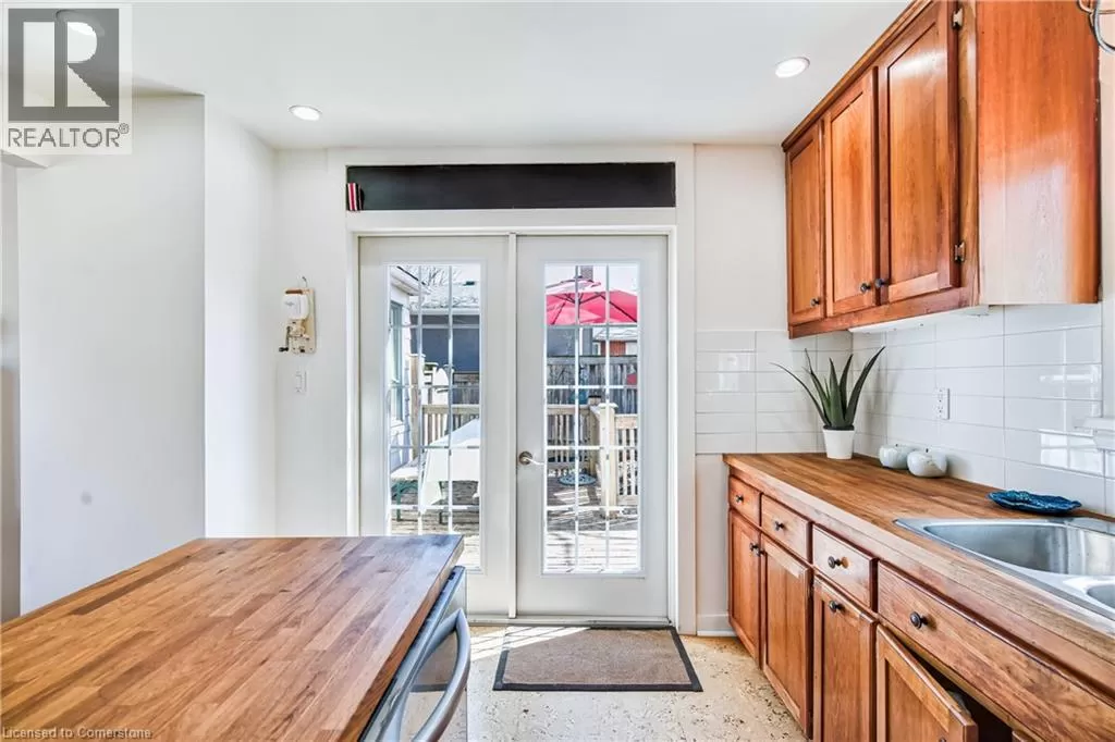 Mississauga to Mary Street Welcome to 124 Mary Street, an adorable 2-bedroom cottage nestled steps to historic old town NOTL! With its convenient location, this property offers easy access to all amenities, shops, and wineries in beautiful Niagara-on-the-Lake. Cute and cozy sums this up with all the classic charm you expect. The major updates have been done here, full tear off roof, soffit, fascia, kitchen backsplash (2024), Some windows replaced, newer flooring. 200-amp service and owned high efficiency furnace and how water tank. Attached garage boasts wood stove for the cozy fall nights enjoying many of the local artisan foods and wines. Kitchen walks out to spacious deck and fully fenced nice deep lot prefect for entertaining and garden enthusiasts. Whether you're looking for a retirement home, a family residence, an investment property, or a weekend getaway, this versatile cottage offers endless possibilities. (id:27476)