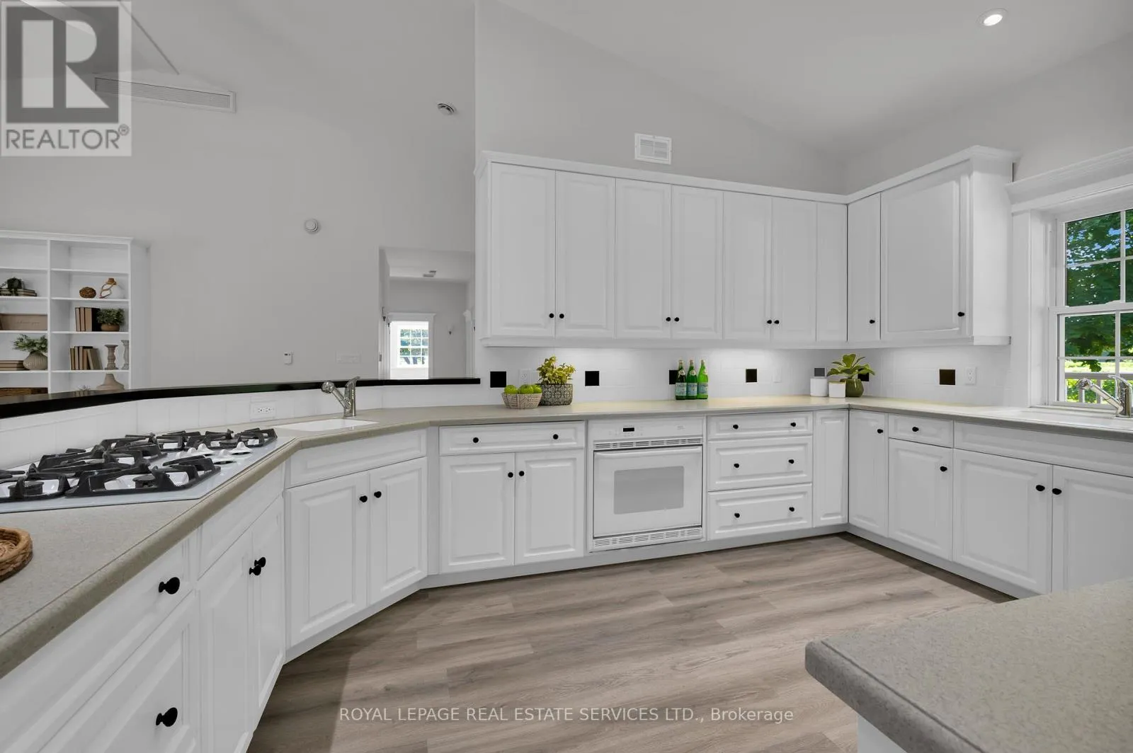 EAST/WEST LINE Nestled in an idyllic setting amidst picturesque vineyards, this exquisite 3+3 bedroom - 2 family home offers unparalleled exclusivity in Niagara-on-the-Lake. Boasting over half an acre of meticulously landscaped grounds, this professionally renovated bungalow is in pristine condition, awaiting your personal touch. Step through the inviting front porch into a bright, open-concept living space adorned with expansive windows and garden doors that frame the lush, private yard. The generously-sized master bedroom, adorned with tasteful decor, features a spacious walk-in closet and a luxurious 5-piece ensuite bathroom.The lower level presents a fully finished area with three additional bedrooms, a 4-piece bath, and a full kitchen, perfect for extended family or guests. Outside, a rear deck offers a serene retreat overlooking your tranquil backyard oasis, complete with low-maintenance landscaping that allows for effortless enjoyment. Escape the hustle and bustle of the city and indulge in the tranquility of this exclusive property. Welcome to your own slice of paradise in Niagara-on-the-Lake, where luxury meets serenity amidst the vineyards. (id:27476)