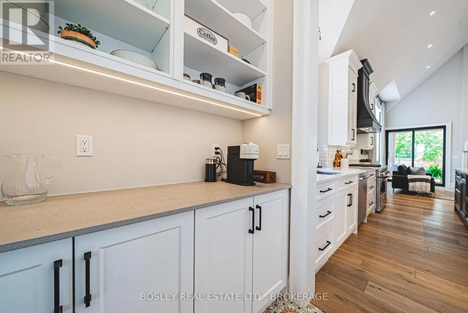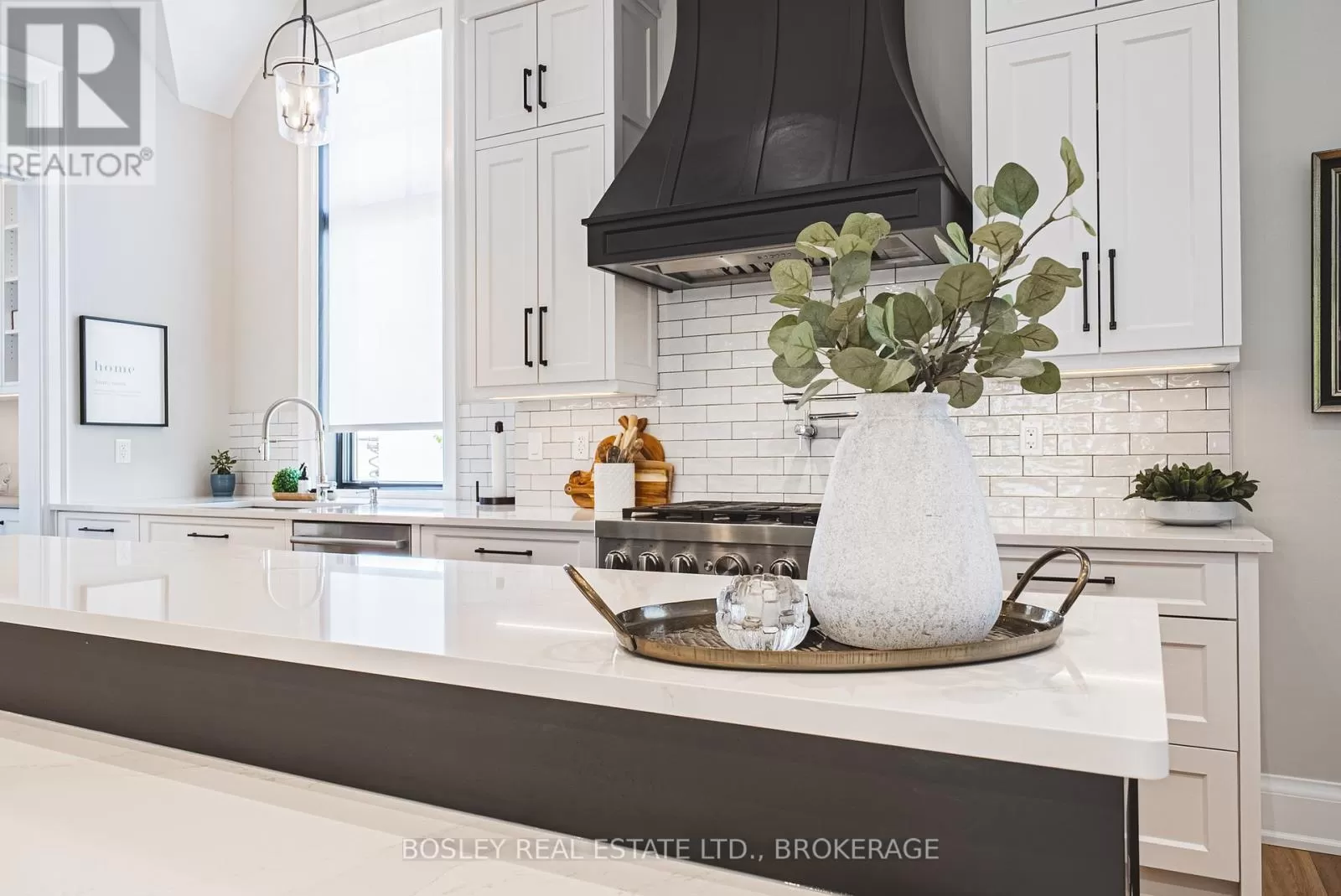 Cross Streets: Four Mile Creek Rd/York. ** Directions: North on Four Mile Creek Rd. from York Millpond on Left Side. Discover 110 Millpond Road, a stunning custom-designed bungalow built by Ridgeline Homes, one of Niagara's local boutique builders. Located in the charming Village of St. David's, Niagara-on-the-Lake, surrounded by award-winning wineries, restaurants, and golf courses, all just minutes from Highway 405. The property features professional landscaping, hardscaping and irrigation system, plus a double-wide aggregate driveway and elegant stone walkways leading to multiple tranquil sitting terraces perfect for relaxation. Inside, the open-concept kitchen, living, and dining room is simply breathtaking. The gourmet kitchen boasts custom cabinetry, a massive island, and a stylish butler's pantry. The living room features a gas fireplace with modern mantle surround, while the inviting dining area is ideal for hosting large gatherings. The attention to detail throughout this home is remarkable. Impressive ceiling heights, unique architectural angles and arches, expansive windows flood every space with natural light, creating an airy and sophisticated ambiance. The primary bedroom is a serene retreat with a spacious walk-in closet and a luxurious five-piece ensuite bath, including in-floor heating, a custom double-sink vanity, a deep soaker tub, and a spacious walk-in glass shower. The equally gorgeous second bedroom features vaulted ceilings and warm hardwood flooring, along with a convenient three-piece ensuite privilege bath. The main floor is completed by a highly functional mudroom with ample custom cabinetry and a well-designed laundry room. The lower level is unfinished but fully insulated, offering a fantastic opportunity to create an additional living space of your own creation. (id:27476)