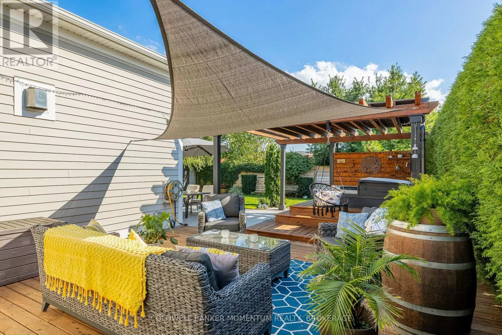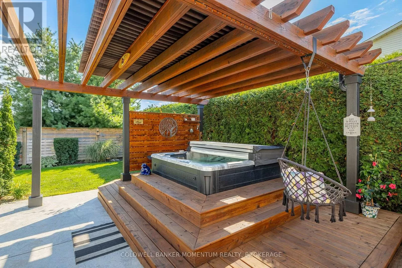 Cross Streets: ANDRES / LINE 2 HWY 55 - ANDRES - LINE 2. ** Directions: Niagara Stone Road to Line 2 Road. Custom designed and built absolutely stunning 4+ bedroom, 3.5 bath home that will exceed any meticulous buyers expectations. Great curb appeal and beautiful entrance welcomes you to the foyer which is flanked by the main floor primary bedroom with a spa like bath & walk-in closet, and a second bedroom which can easily be used as a den. Pass by the powder room and laundry and across the sun drenched back of the home is the great room with custom built-ins either side of the gas fireplace a gorgeous kitchen where you will find an abundance of storage and solid surface counters to prepare meals to entertain guests and family. The cozy dining room leads to the private fully fenced yard with pergola covered hot tub area an outdoor dining area and a very secluded gathering area. The upper level has two generous sized bedrooms, a full bath and a huge bright family room. Access to the basement is off the garage and through the laundry so one can easily accomodate a private multi generational setup in the basement. The basement offers a huge recreation / games room with bar. There is a fourth bedroom or craft room, ample storage, and full bath. This home is conveniently located close to all community amenities and schools. Don't hesitate to view this one of a kind truly turn key oppotunities (id:27476)