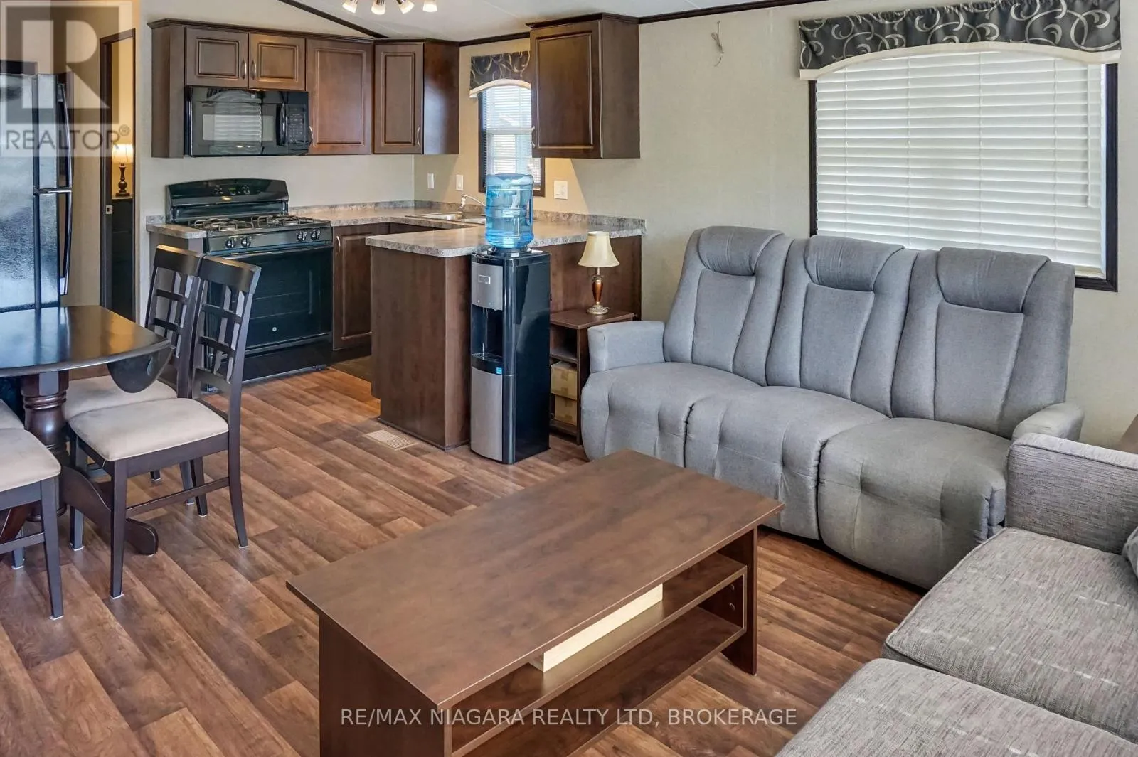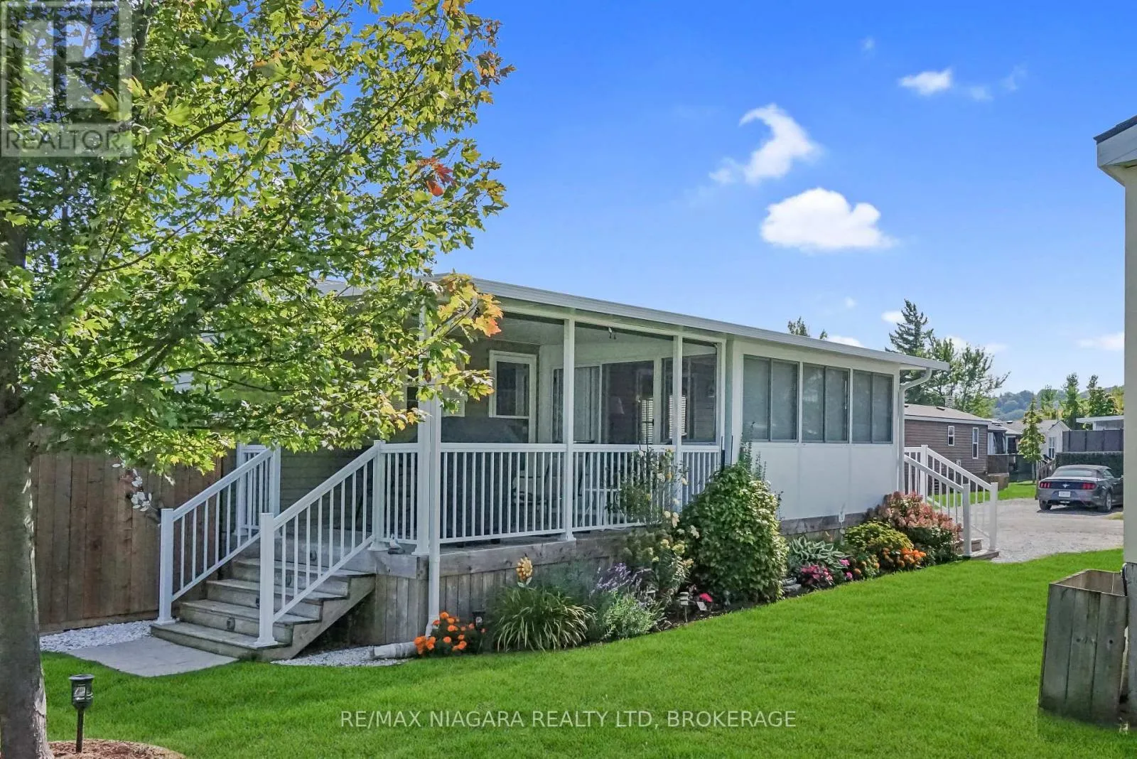 Cross Streets: Niagara River Pkwy. ** Directions: Go to first stop sign and turn right. Lot is on right side. Welcome to your perfect seasonal escape in Niagara-on-the-Lake, surrounded by lush vineyards and peaceful scenery. Situated on a spacious lot with plenty of green space, this fully furnished 2-bedroom, 1-bathroom retreat offers comfort and convenience. With a full kitchen and room to sleep up to 6 people comfortably, it's ideal for family getaways or hosting friends. Step outside and enjoy two fantastic features: a large covered deck for shaded relaxation and a bright sunroom where you can unwind and take in the views rain or shine. Whether you're sipping your morning coffee or enjoying a summer evening with a glass of wine, this property has all the makings of a relaxing seasonal home. Turnkey and move-in ready, its the perfect spot to enjoy Niagara living, spring through fall. Enjoy the ease of resort-style living in one of Niagaras most desirable vacation destinations. This seasonal property at Vine Ridge Resort offers a peaceful getaway from May through October, with no property taxes and full access to everything the resort has to offer. As an owner, youll have unlimited use of the resorts impressive amenities, including a massive one acre splash pad, in-ground pool, Kids Klub, sports courts, playgrounds, special events, and even WiFi at the Welcome Centre. Its all designed for you, your family, and your guests to enjoy. The 2026 Annual Resort Management Fee of $9,825 covers water, hydro, sewage, grass cutting, taxes, and general maintenancemaking it easy to focus on relaxation. You're only responsible for propane and insurance. Not able to use the trailer every week? No problem you can rent it out on Airbnb when you're not there (some conditions apply).To learn more about the resort and everything it offers, visit vineridgeresort.com. Dont miss your opportunity to own one of the best-located units in the park. (id:27476)
