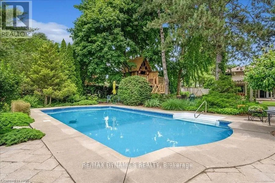 Cross Streets: Near: EAST WEST LINE. ** Directions: service 72. This spectacular property is situated on the prestigious and beautiful Niagara River Parkway, just minutes from the restaurants, shops, and theatres of downtown Niagara-on-the-Lake. The well-maintained and updated 2+1 older home features an open kitchen with quartz countertops, stainless appliances, and Millbrook cabinetry, a master bedroom with a walk-in California closet, a large 4-season sunroom, and, in the family room, a gas fireplace with custom doors, marble surround, and Cherrywood mantel. Embrace Niagara sunsets in the professionally landscaped perennial garden with mature trees, an in-ground watering system, and professionally installed low-voltage lighting. Relax on a custom stone deck with an impressive cedar pergola, and enjoy the in-ground saltwater pool with solar heating and a newly built tree house. The backyard also features a gas fire pit. This backyard can only be described as an oasis. (id:27476)