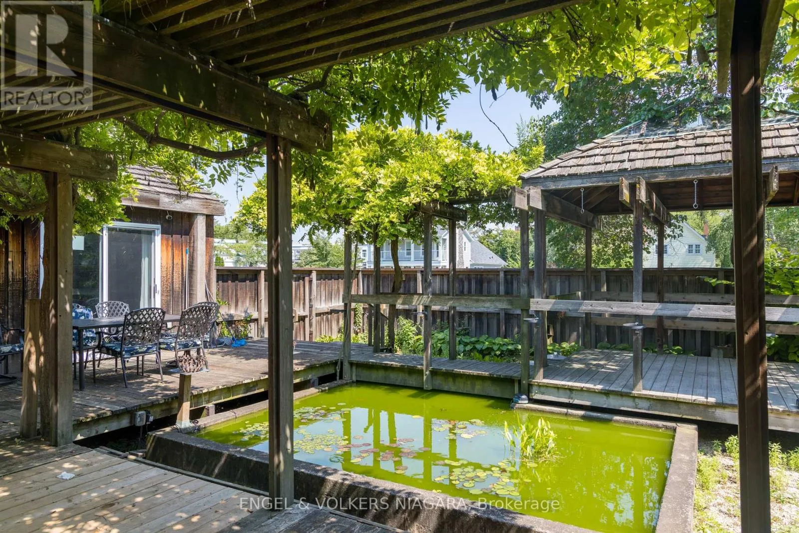 Cross Streets: Wellington. ** Directions: corner of Wellington. Custom built by artist Campbell Scott, this cedar clad house is totally unique. This is a Niagara on the Lake landmark building. Has been featured numerous magazines in North America and UK. Completly built of heavy west coast cedar and hardwood. House could be power washed to bring back the original golden colour of the cedar wood. Complete privacy. 2 fireplaces and 2 furnaces, all levels are finished. 650 sq' courtyard with fish pond and fountain are totally private. Soaring vaulted ceilings with ample natural light. A one of a kind home, with incredible workmanship. Walk to Old Town with its ample shops and restaurants. Lake Ontario is a short walk as well. (id:27476)