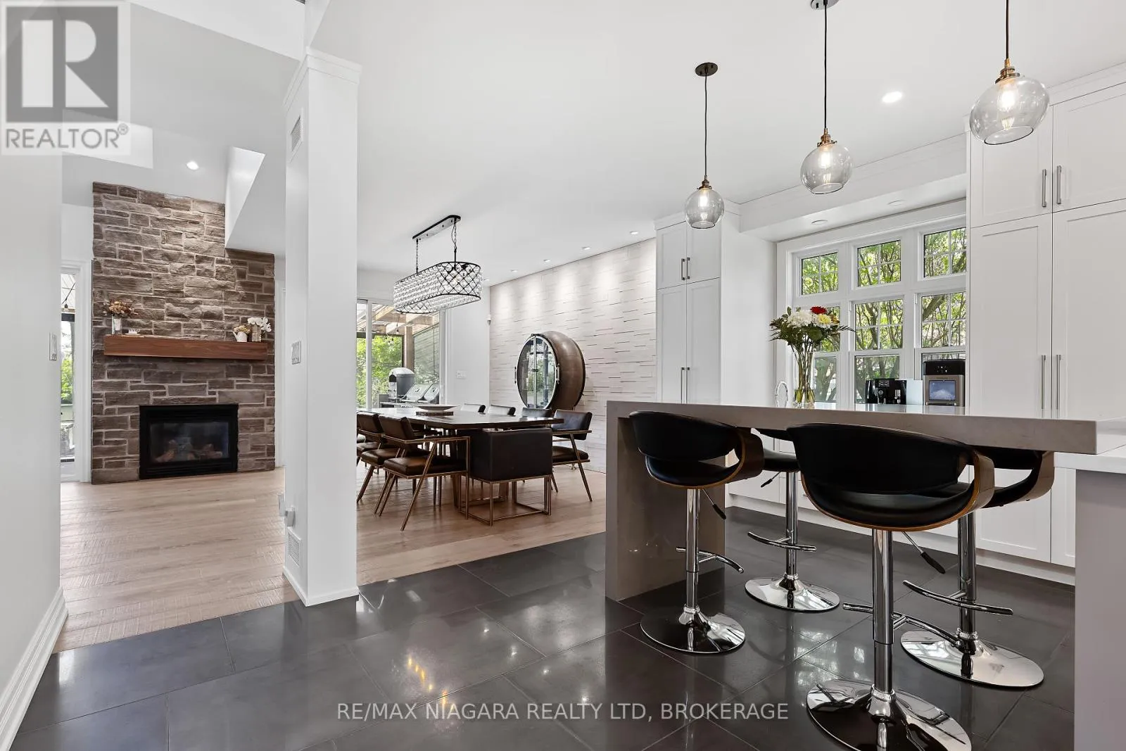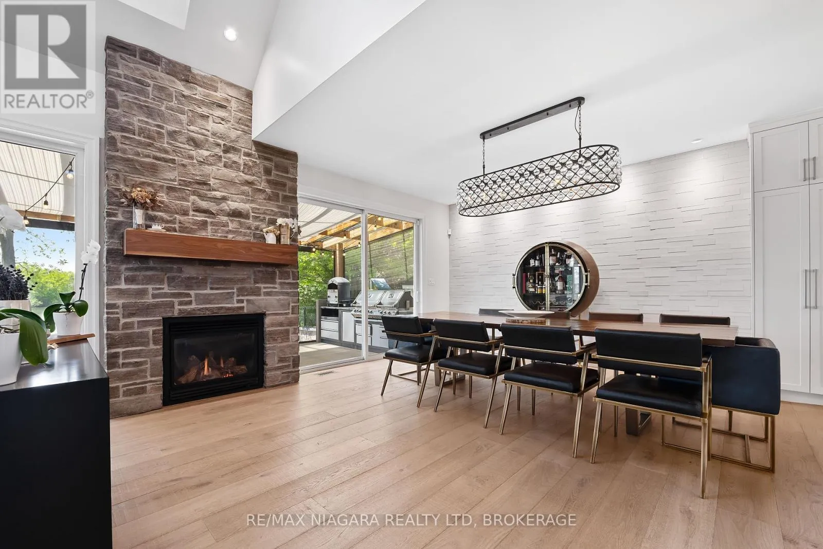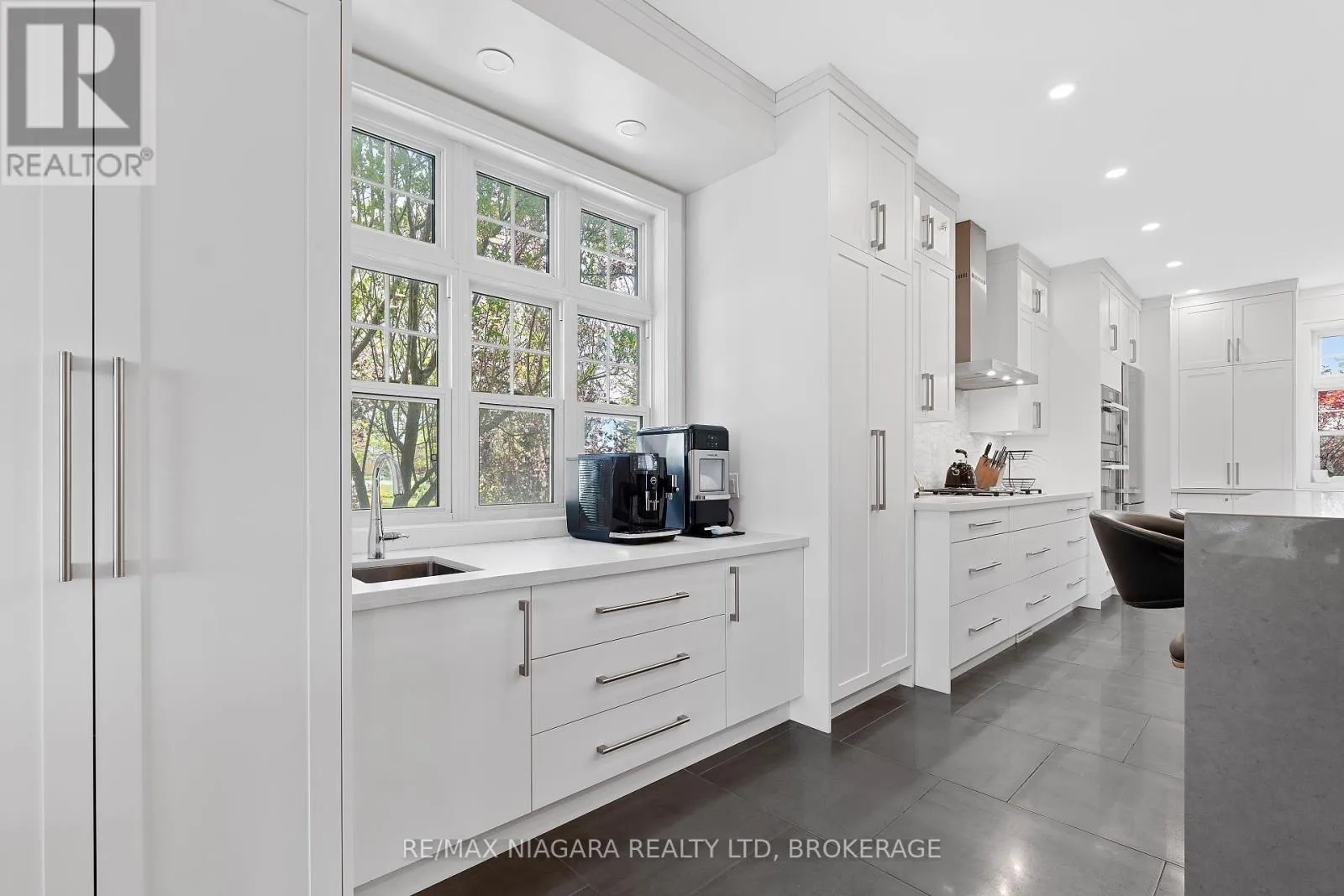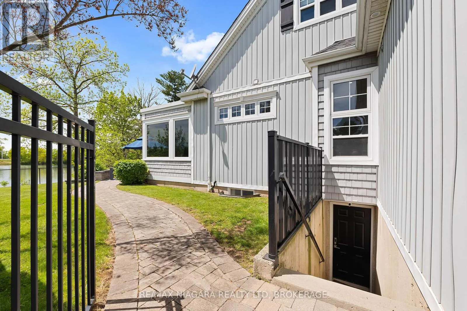 Between Line 3 and Line 2 Rd This custom-built, newly renovated home is the epitome of Niagara-on-the-Lake living. It boasts beautiful water and vineyard views, all while still being minutes from wineries, restaurants, and shopping. Situated on an expansive lot along tranquil Four Mile Creek in the heart of Niagara-on-the-Lake, this home offers ample space and privacy. This professionally designed and updated home offers the perfect fusion of refined elegance and relaxed luxury. Step inside to discover almost 4000 sqft of living space with 4 bedrooms and 4 bathrooms. The open-concept living and dining area that connects to the large, covered deck featuring an outdoor kitchen and dining room, is perfect for entertaining. The showstopper is a custom wine room seamlessly integrated into the space designed to showcase your collection with sophistication and easy access. The kitchen features a bespoke gourmet chef's kitchen, Miele appliances, generous prep space, and gorgeous cabinetry. The main-floor laundry seamlessly blends practicality and multiple storage options. Wake up to water views in your primary bedroom, complete with gas fireplace, generous walk-in closet and 4 pc stylish ensuite. A private separate entrance to the lower level provides a family room, 3pc bath, bar and cantina, and an exceptional opportunity for an in-law suite or guest quarters. With its generous lot, this property offers the potential to add a custom detached garage and a resort-style pool. Already equipped with a generous 2 car garage and ample parking for 8 vehicles, every detail of this home has been thoughtfully crafted to embrace the region's serene natural beauty. Whether you're enjoying a quiet morning coffee by the water or entertaining guests in style with indoor and outdoor living spaces, this one-of-a kind residence offers the ultimate luxury lifestyle and all the benefits that Niagara's Wine country has to offer. (id:27476)