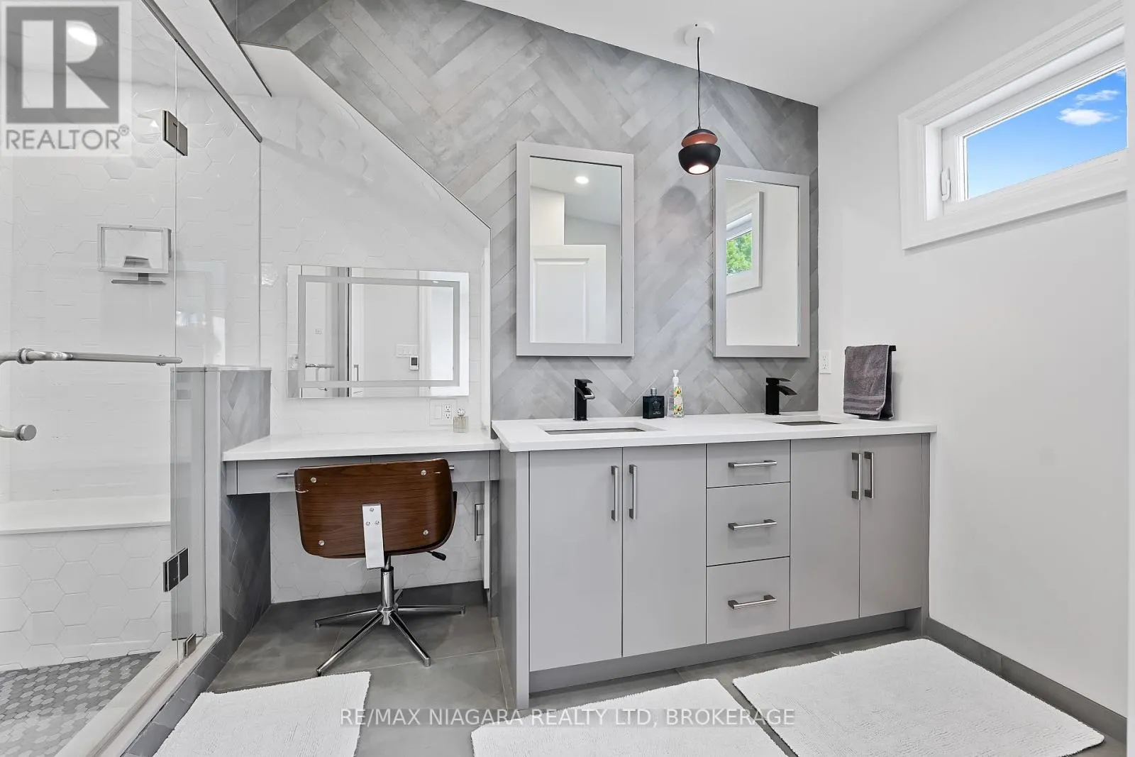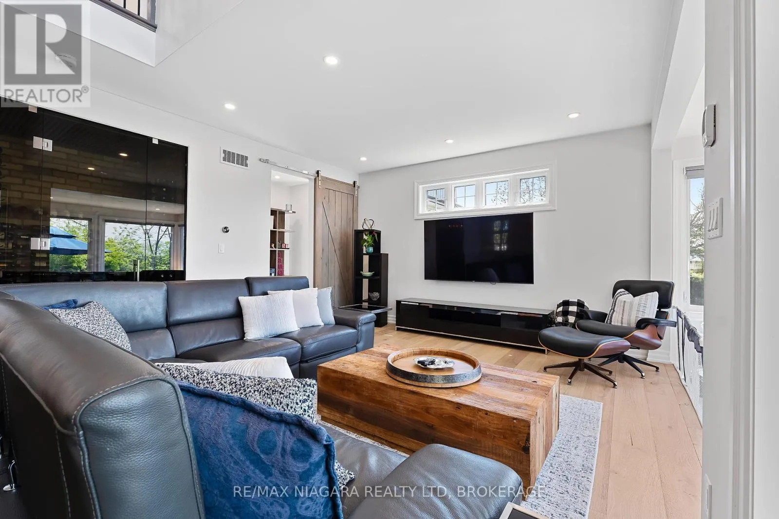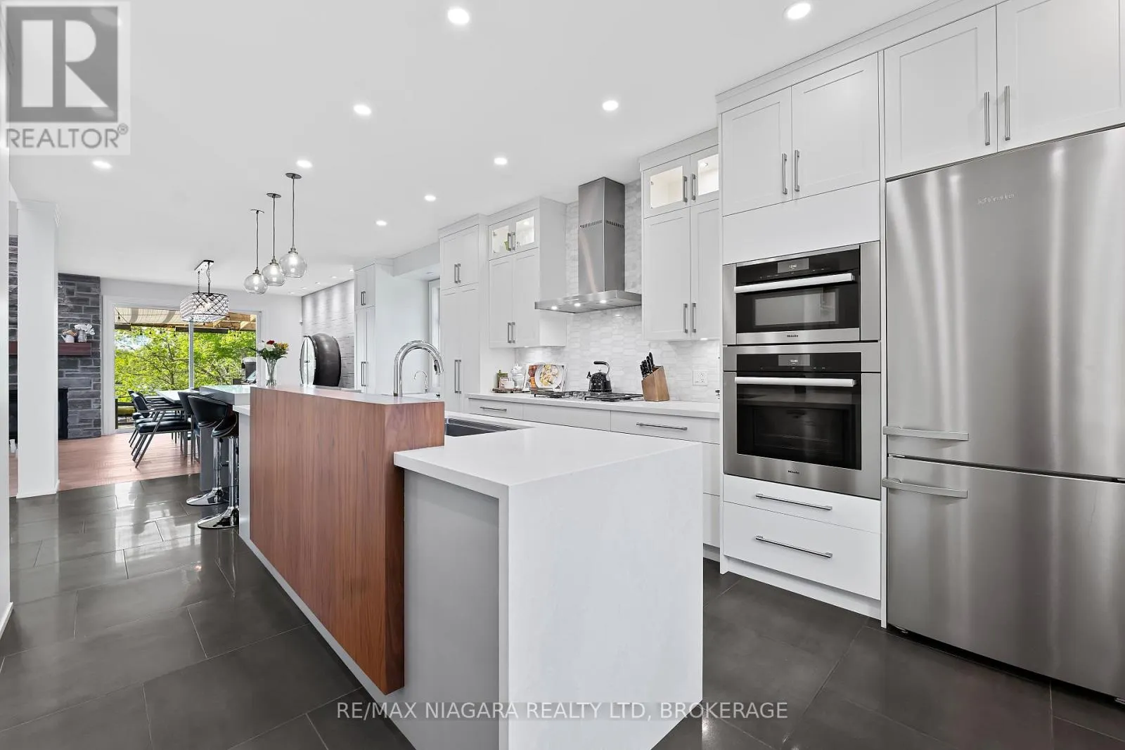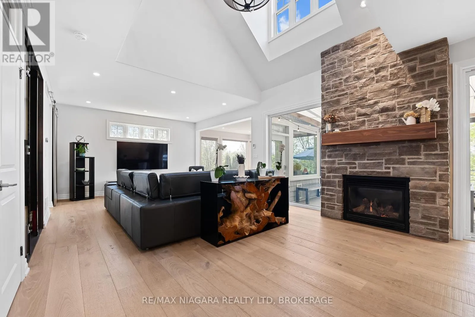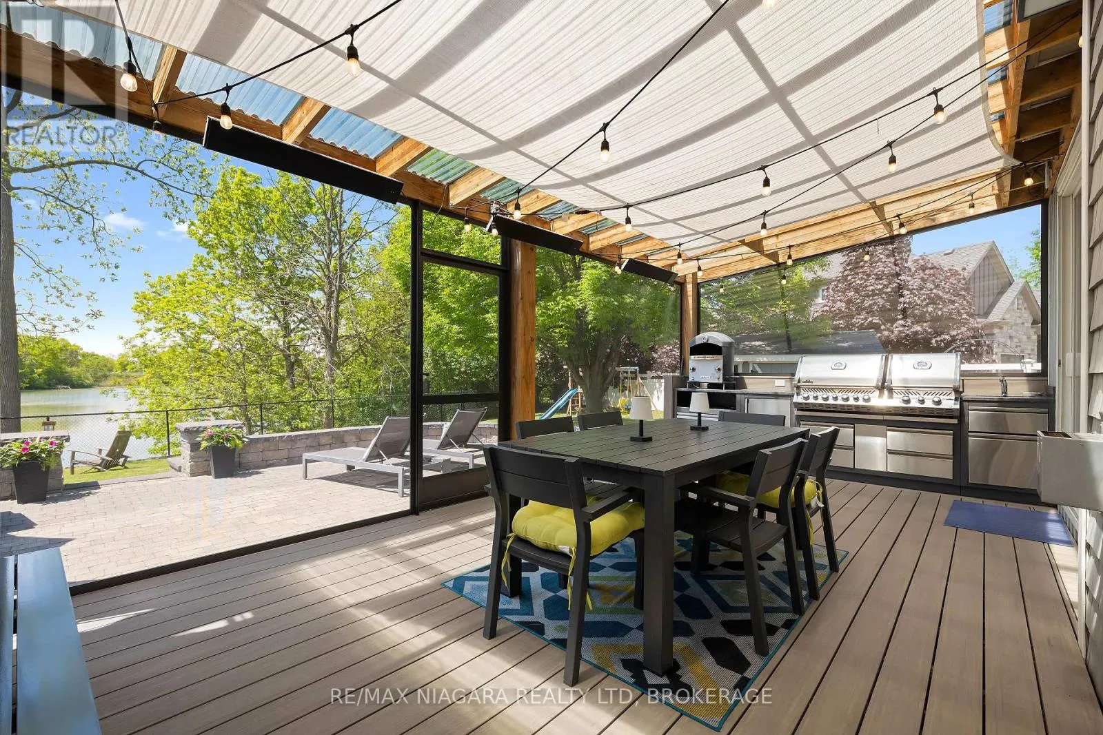 Between Line 3 and Line 2 Rd This custom-built, newly renovated home is the epitome of Niagara-on-the-Lake living. It boasts beautiful water and vineyard views, all while still being minutes from wineries, restaurants, and shopping. Situated on an expansive lot along tranquil Four Mile Creek in the heart of Niagara-on-the-Lake, this home offers ample space and privacy. This professionally designed and updated home offers the perfect fusion of refined elegance and relaxed luxury. Step inside to discover almost 4000 sqft of living space with 4 bedrooms and 4 bathrooms. The open-concept living and dining area that connects to the large, covered deck featuring an outdoor kitchen and dining room, is perfect for entertaining. The showstopper is a custom wine room seamlessly integrated into the space designed to showcase your collection with sophistication and easy access. The kitchen features a bespoke gourmet chef's kitchen, Miele appliances, generous prep space, and gorgeous cabinetry. The main-floor laundry seamlessly blends practicality and multiple storage options. Wake up to water views in your primary bedroom, complete with gas fireplace, generous walk-in closet and 4 pc stylish ensuite. A private separate entrance to the lower level provides a family room, 3pc bath, bar and cantina, and an exceptional opportunity for an in-law suite or guest quarters. With its generous lot, this property offers the potential to add a custom detached garage and a resort-style pool. Already equipped with a generous 2 car garage and ample parking for 8 vehicles, every detail of this home has been thoughtfully crafted to embrace the region's serene natural beauty. Whether you're enjoying a quiet morning coffee by the water or entertaining guests in style with indoor and outdoor living spaces, this one-of-a kind residence offers the ultimate luxury lifestyle and all the benefits that Niagara's Wine country has to offer. (id:27476)