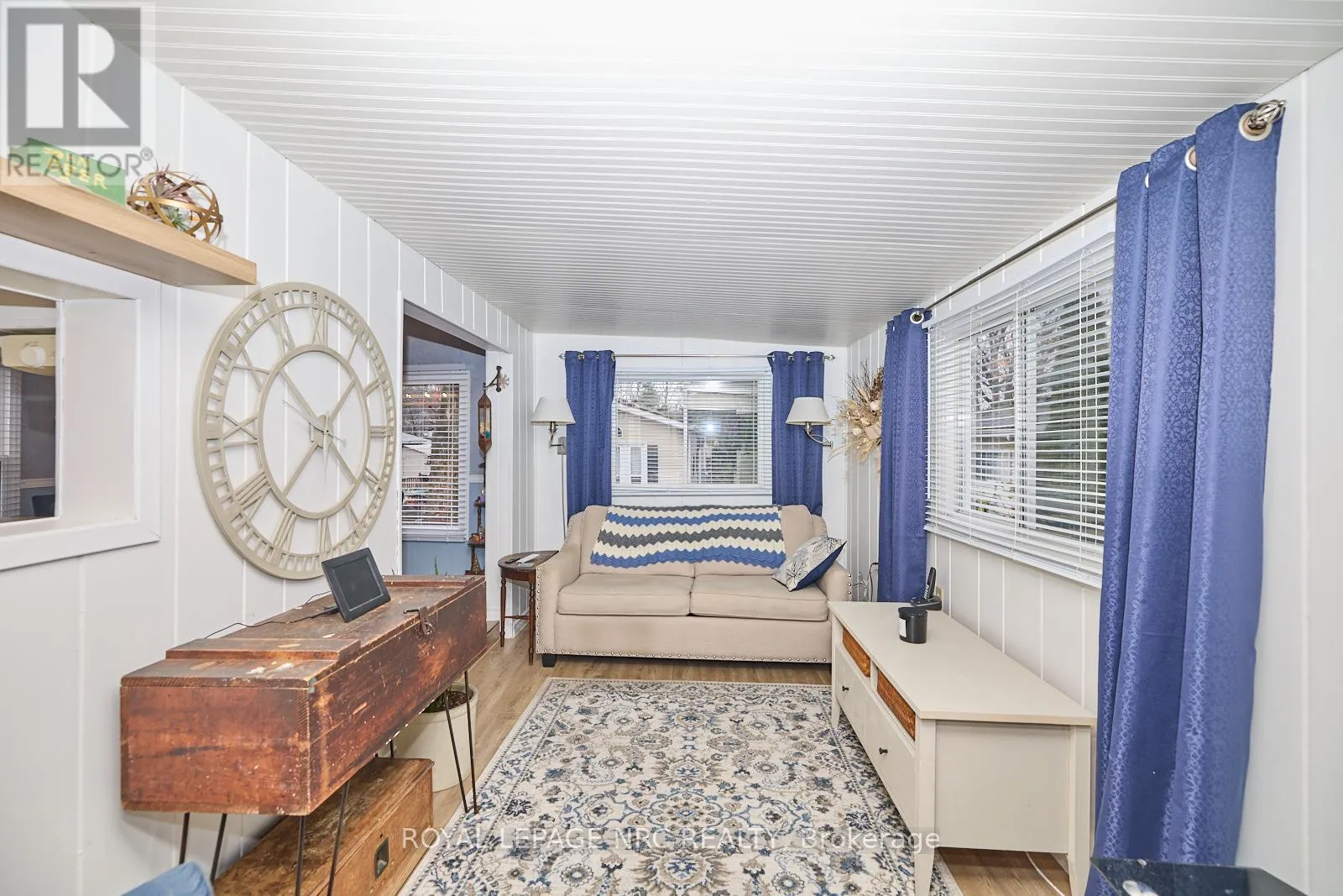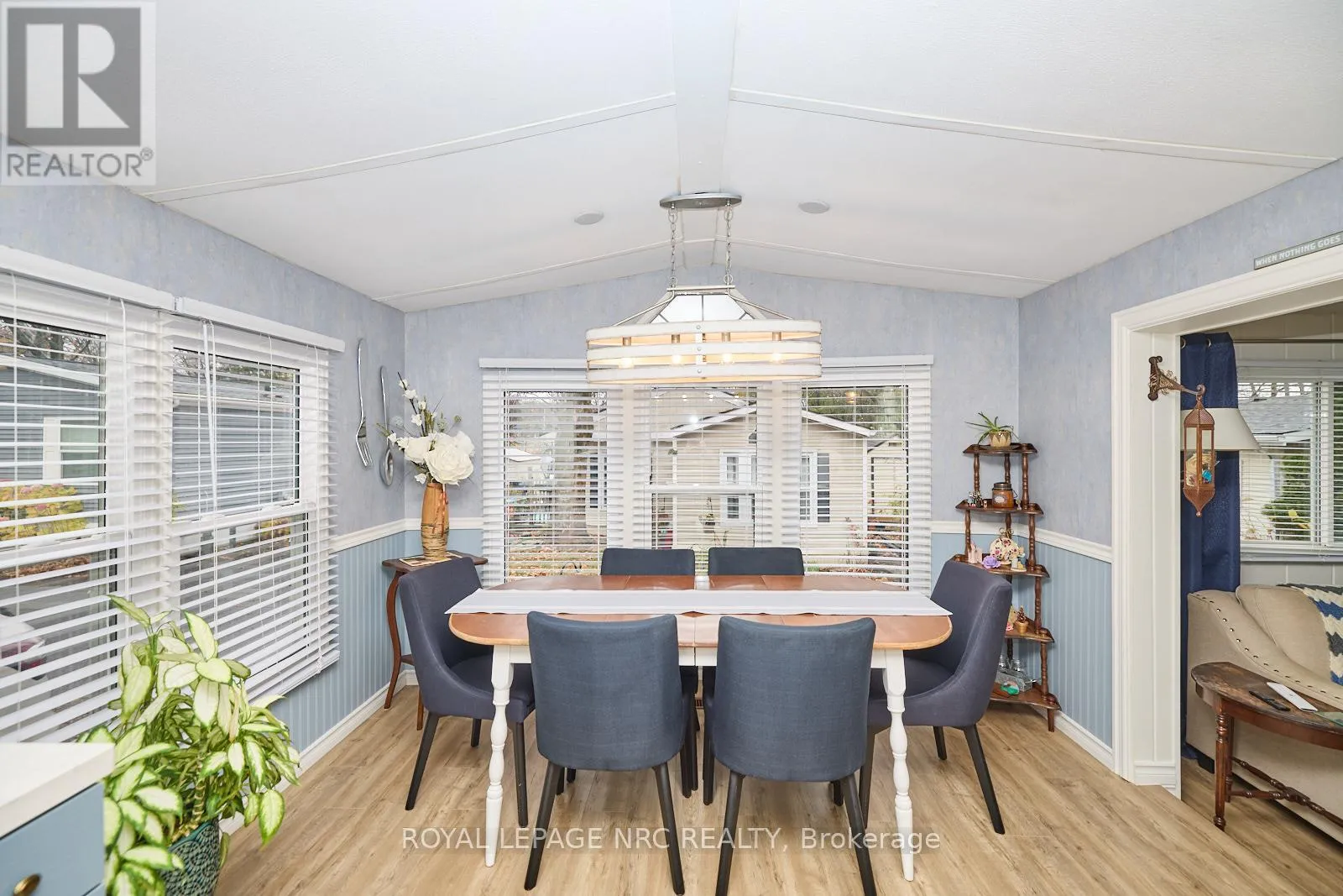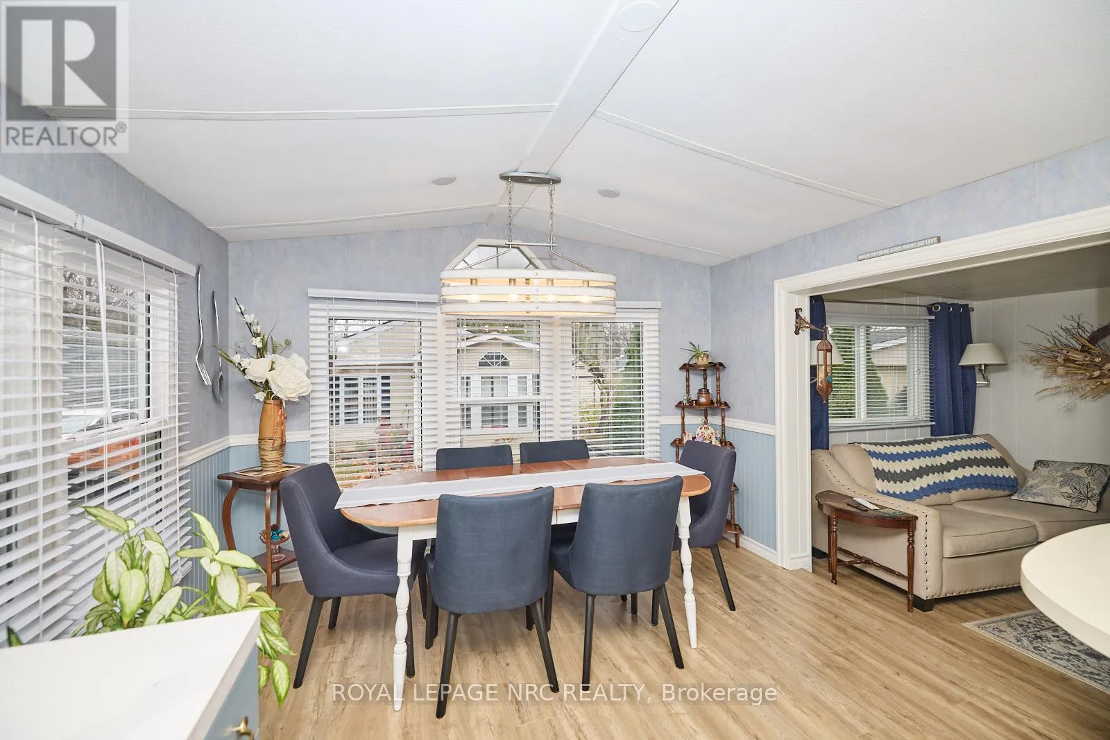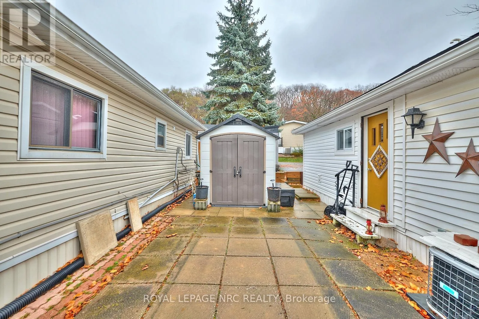 Cross Streets: FOUR MILE CREEK AFTER YORK (TIN LIZZY IN PARK). ** Directions: down Richard just before pool. **LOW MONTHLY FEES** WELCOME TO THE DESIRABLE SENIOR COMMUNITY AT CREEKSIDE SENIOR ESTATES NESTLED IN THE HEART OF WINE COUNTRY OF PRESTIGIOUS NIAGARA-ON-THE-LAKE!! Just minutes from the U.S. border and situated in a treed, hillside community in an upscale neighbourhood, this development is a 55+ community that offers an Inground pool, a Recreation centre with activities and amenities galore!! This property offers the unique advantage of lower monthly fees as this unit comes with shares in the cooperative at a value of $25,000! This is transferable to the new owner and reduces the monthly fee to $235.00 per month. This adorable 2 bedroom unit has been very well maintained with a bright and open concept kitchen/dining room and separate living room. Enjoy two ways to access the unit and has plenty of side yards on BOTH sides of the property. There is a single private drive for one car parking BUT there is ample space on the North side to create a driveway there. *Note: the left side of the unit belongs to this property and is used as a side yard/sitting area but can be converted to another driveway or grass planted for a greenspace. Furnace 2021, A/C 2022, 1/2 of roof redone 2022. Located on Tin Lizzy inside the Park, it is only steps from the pool. (id:27476)
