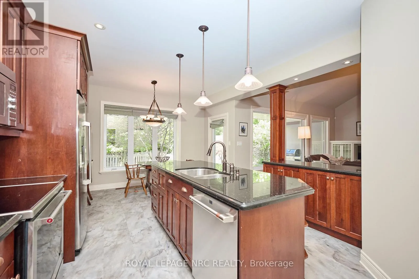 Cross Streets: Four Mile Creek Rd & Warner Rd. ** Directions: Four Mile Creek Road to Warner Road. Welcome to 776 Warner Road, a stunning custom-built bungalow by Jenko Homes (2006) in a prestigious neighbourhood of Niagara-on-the-Lake, just moments from world-class wineries, wine country charm, and breathtaking vineyard views. This 3+1 bedroom, 3-bathroom home offers 1,903 sq. ft. of above-grade living space, blending timeless craftsmanship with elegant modern features. High 9-foot ceilings, custom trim work, engineered hardwood flooring and quality doors set the tone throughout. The open-concept design centers around a great room with vaulted ceilings, huge windows for plentiful natural light, a gas fireplace with floor-to-ceiling stone veneer and custom built-in cabinetry. The spacious kitchen boasts custom maple cabinetry, quartz countertops, island and built-in desk space with walk-out access to a large covered patio. The formal dining room is accented with a custom lighted ceiling tray and offers a refined setting for entertaining. The main-floor primary suite is a private retreat with cove lighting, large walk-in closet, and a 4-piece en-suite featuring a walk-in shower and double sinks. Two additional bedrooms share a convenient Jack-and-Jill bathroom and enjoy the ease of main floor laundry and inside access to the double garage. The partially finished basement offers excellent In-Law Potential with private separate entrance from garage, expanding the living space with a fourth bedroom, gas fireplace, huge rec room area, ample storage, and a cedar-lined cold room. There is a kitchen plumbing rough-in located in the center of the basement, perfect for a second kitchen. Set on a beautifully landscaped lot, the outdoor space is a serene escape with mature trees and gardens, a concrete patio, and a gas line for your BBQ. This exceptional home offers rare privacy, luxurious finishes, and an enviable location in the heart of Niagara-on-the-Lakes wine country, making it the perfect blend of elegance, comfort, and lifestyle. (id:27476)