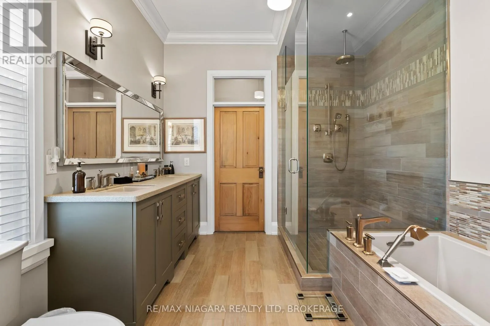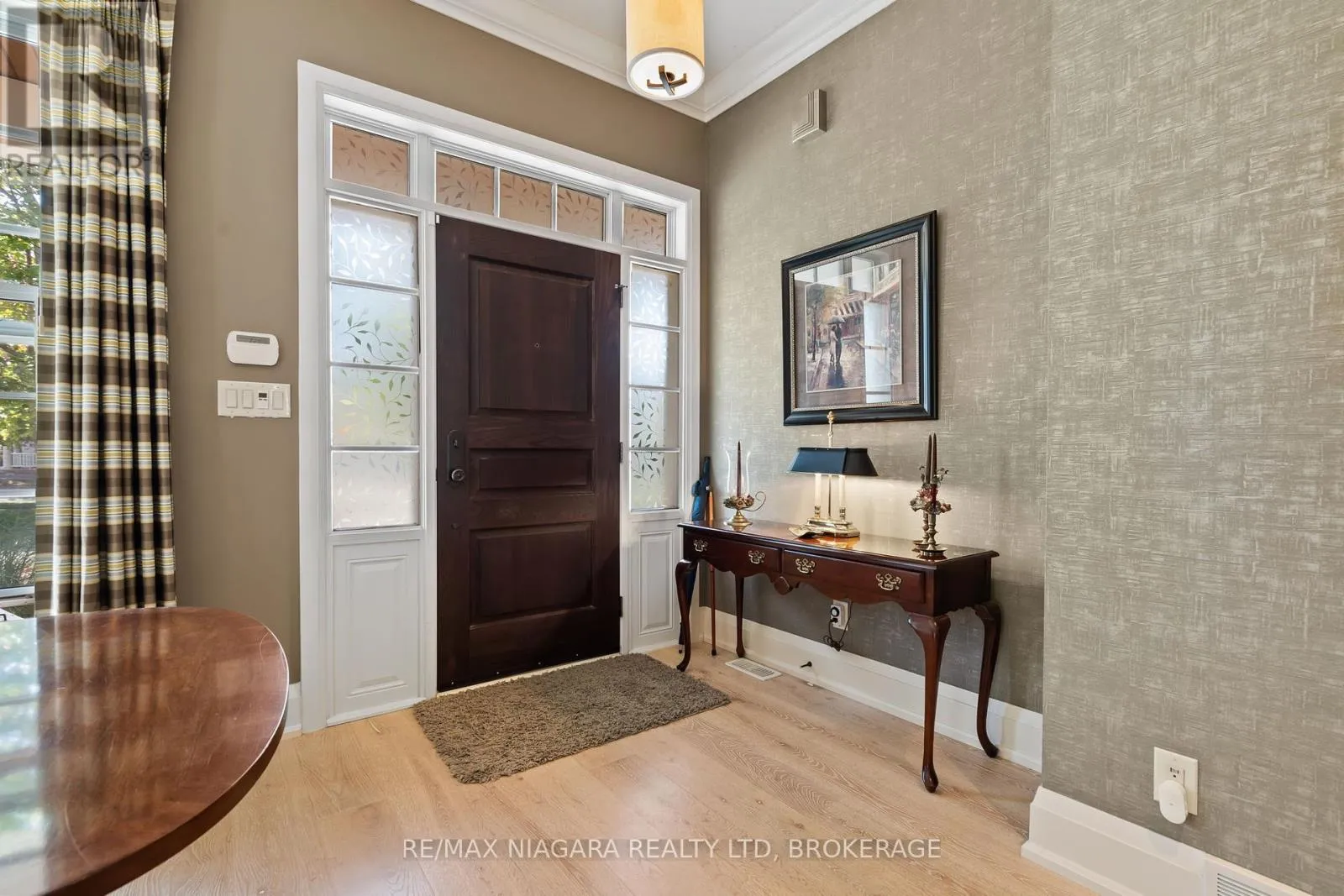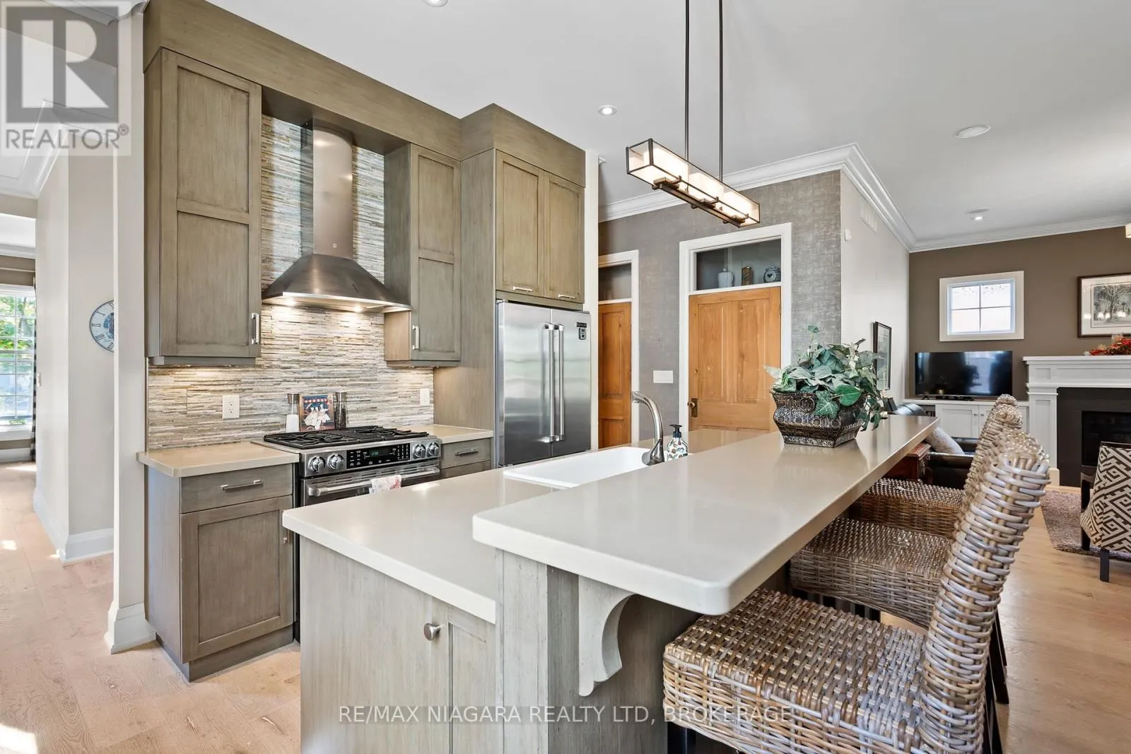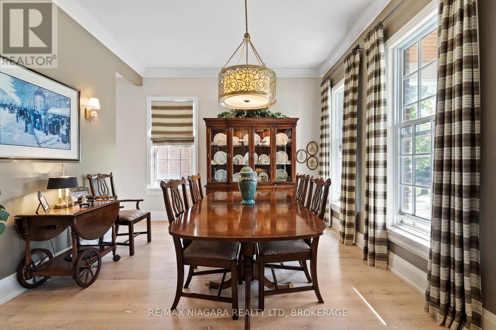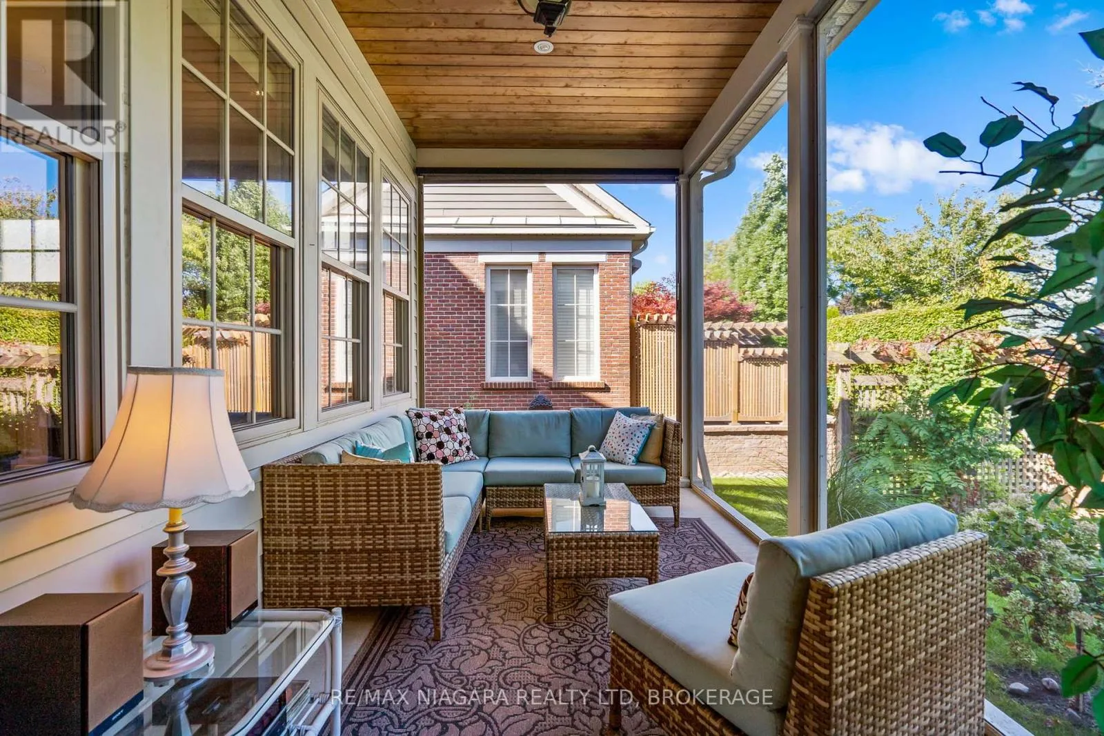 NIAGARA STONE - GARRISON VILLAGE DR Welcome to 52 Garrison Village Drive, an exceptional residence that perfectly captures the elegance and craftsmanship that define Gatta Homes one of Niagara's most trusted luxury builders. Originally built as the model home for Gattas award-winning Village community, this property showcases the builders signature attention to architectural detail, quality materials, and thoughtful design. Set on a quiet, tree-lined street in The Village, one of Niagara-on-the-Lakes most coveted neighbourhoods, this stately Georgian-inspired home blends classic red brick, elegant symmetry, and a welcoming columned veranda. Inside, the space feels warm yet refined, with Austrian Admont natural wood flooring, custom millwork, and high ceilings that create a sense of timeless sophistication. The homes layout was designed for comfort and flexibility, featuring three spacious bedrooms, each with its own private ensuite, including a main-floor suite ideal for guests or multigenerational living. The kitchen opens to a bright, airy living space and extends outdoors to a professionally landscaped yard complete with a cedar deck, lattice fencing, and an enclosed screen porch perfect for summer entertaining or quiet relaxation. Practical luxury continues with main-floor laundry, heated floors in the primary ensuite, in-ceiling sound. Updates include new roof (2019), Lennox A/C (2020), and furnace (2021) add confidence and comfort. Located steps from wineries, boutiques, cafés, and scenic trails, this home embodies refined Niagara living a perfect blend of quality, character, and location thats rarely available in The Village. (id:27476)