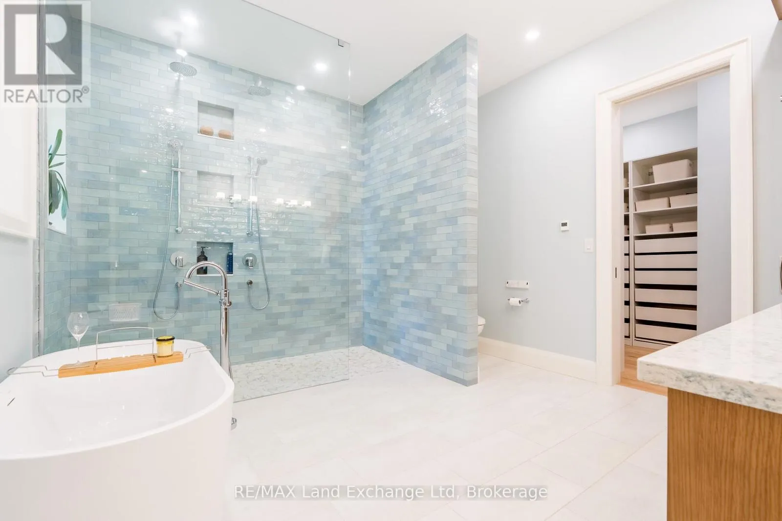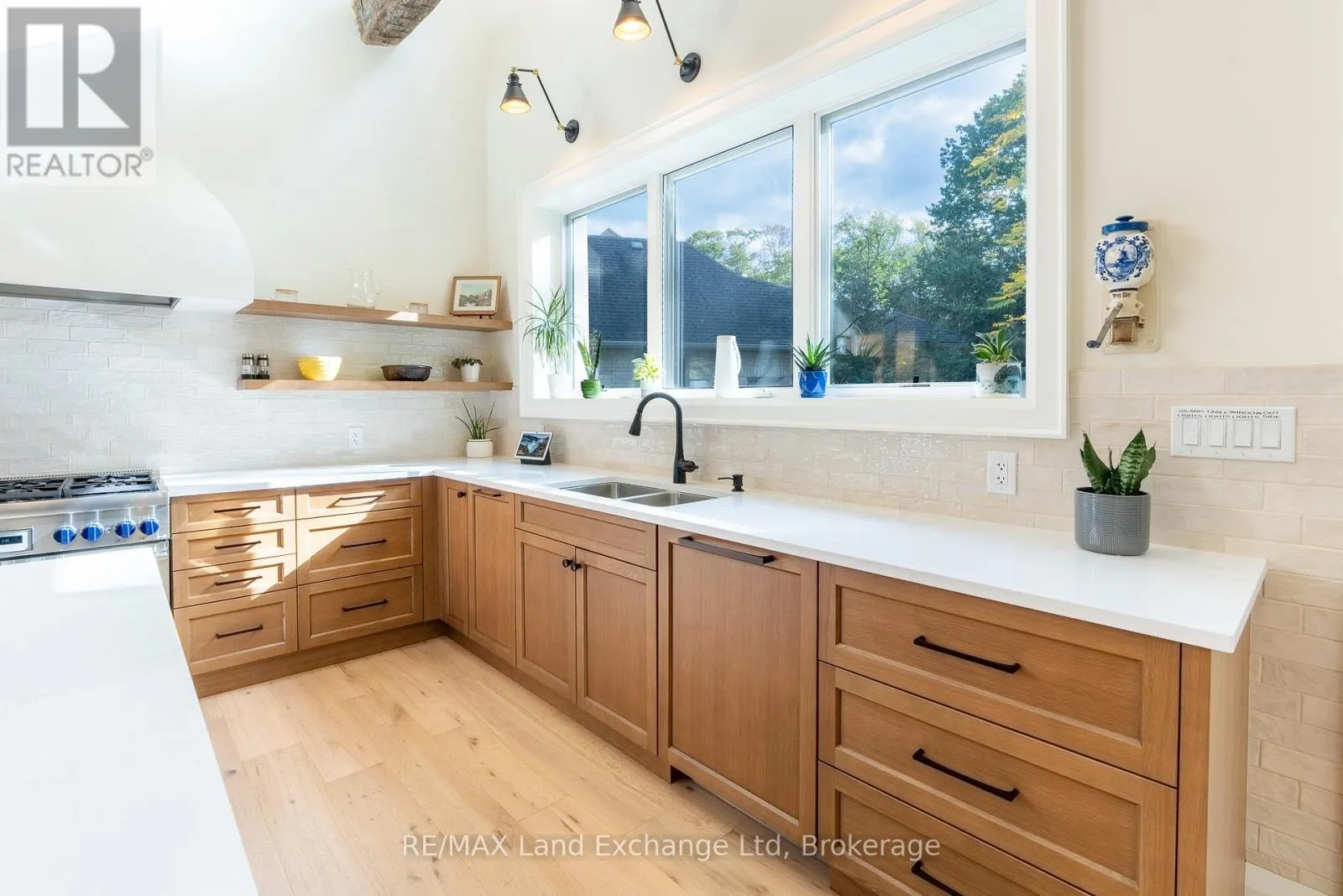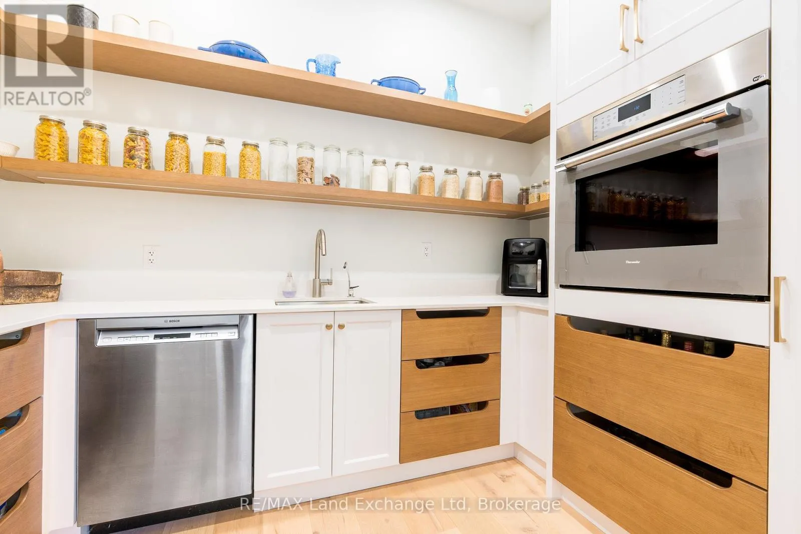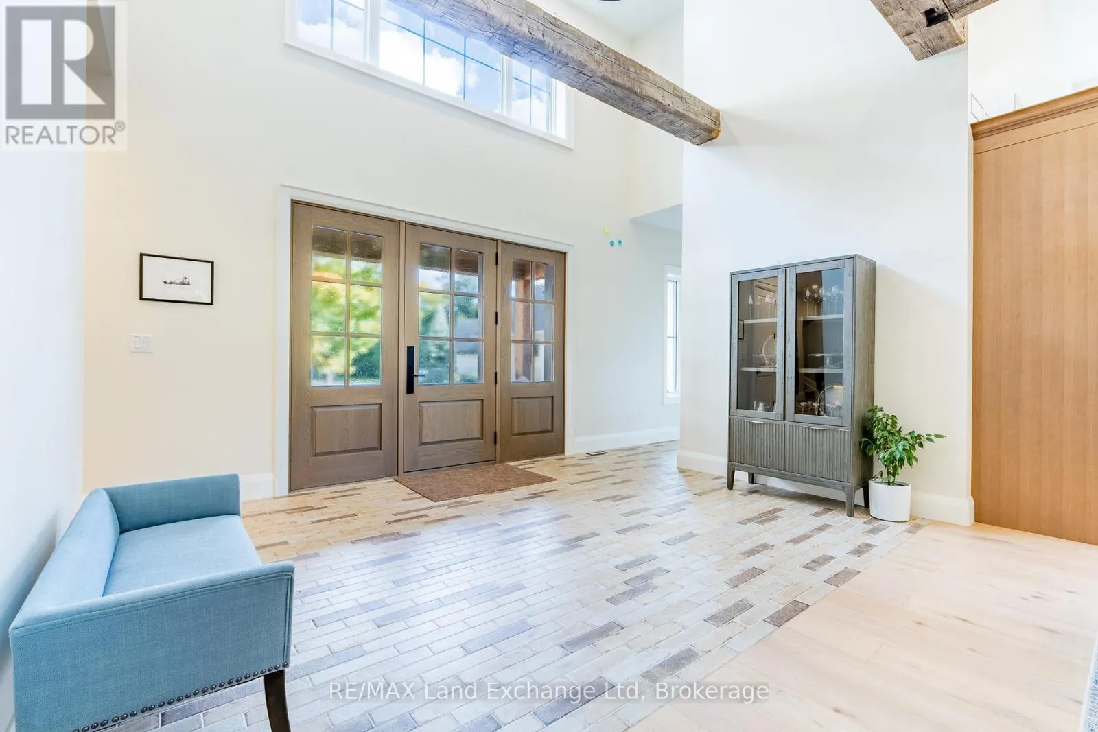 Cross Streets: Wall rd and Four Mile Creek Rd. ** Directions: From down-town NOTL, Head East on RR 87, Turn Left on Four-Mile-Creak rd. Property is on right (across from Enns Battery & Tire). Welcome home to this gorgeous 5 bedroom, 4 bath, New Build. Tucked away and hidden from the road, situated just 2 minutes from the beaches of Lake Ontario and Historic NOTL. Feels like you're living in a Hallmark movie! 18 ft ceilings welcome you into the front entrance with a floor-to-ceiling custom stone wood-burning fireplace, inviting you in to sit back and relax. A seamless flow from the expansive open concept main living room, kitchen and dining room, accented brilliantly by 6 authentic Niagara barn beams and an abundance of windows all around. Enjoy your morning coffee, looking out toward your own enchanting private forest, as you walk out onto your back patio (with heated floors), through the 12 ft kitchen patio doors. Comfort and elegance are all wrapped up in every detail of over 5500 sq ft of living space in this custom home. The spacious primary bedroom boasts a stunning 6 piece en-suite with shower for two, a bathtub + 2 sinks, a spacious walk-in closet, and 10 ft doors leading to your walk-out patio and private hot tub. In-floor heating throughout every room, basement, front & back porch. 3 Car garage, (with one drive through bay), wired-in for EV hookup. Finely detailed kitchen with stainless steel appliances, customized oak drawers and cabinets with quartz counters leading into a private butler's pantry complete with its own sink, dishwasher & high-quality oven. Main Floor Laundry, office and 2 piece powder room. This home was built with ICF foundation and walls for ideal temperature control. Above garage features 2 bedrooms with a shared 4 piece bathroom, and an open sitting/music room. The lower level with 2100 sq ft, includes a large rec room, 2 bedrooms, a 3 piece bath and the mechanical room. Almost an acre backing on the forest and 4 Mile Creek. The Perfect Location. This is a rare find, in the heart of Niagara wine country. The perfect layout for large family gatherings or a cozy night in with the kids. Completely custom. No detail spared. (id:27476)