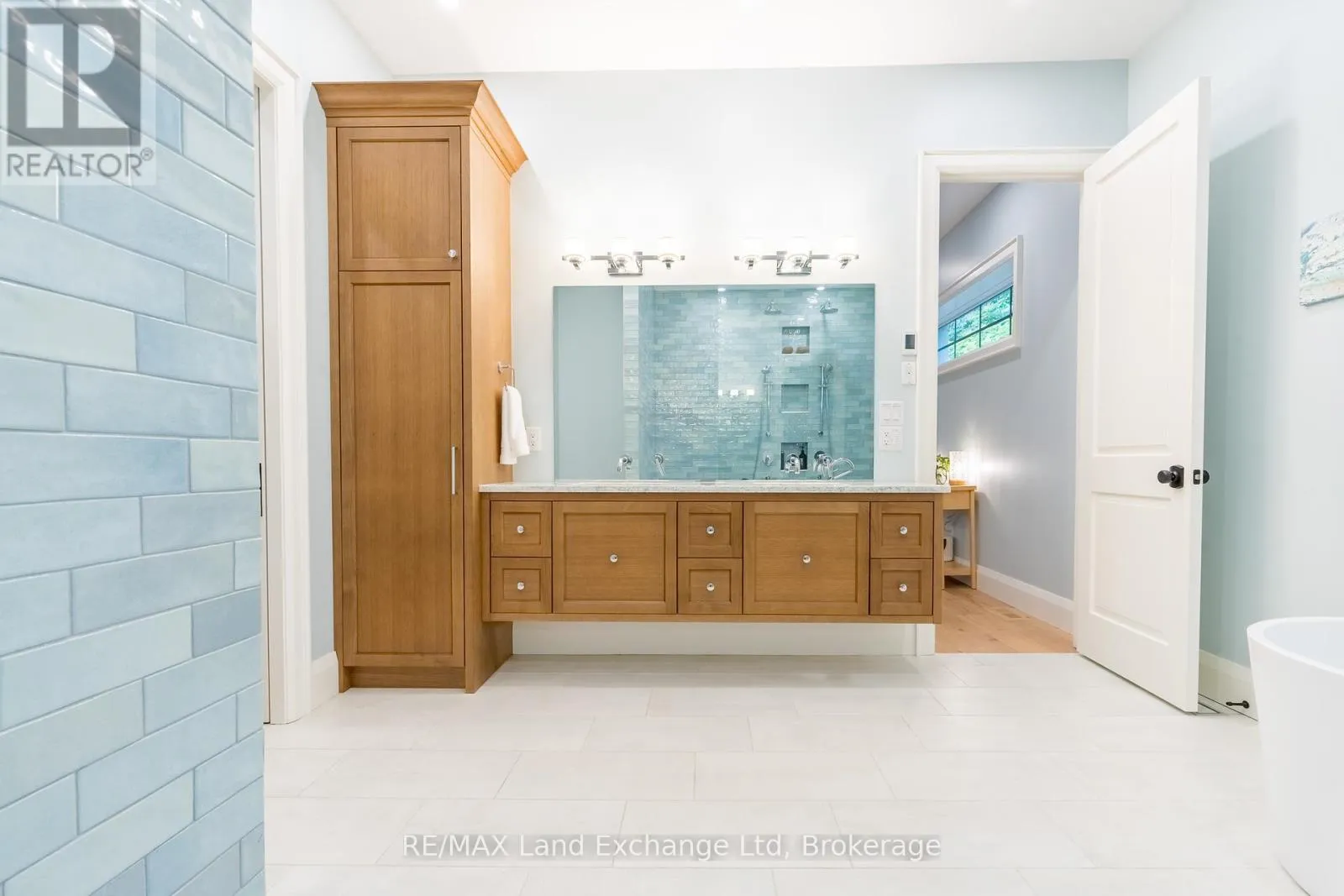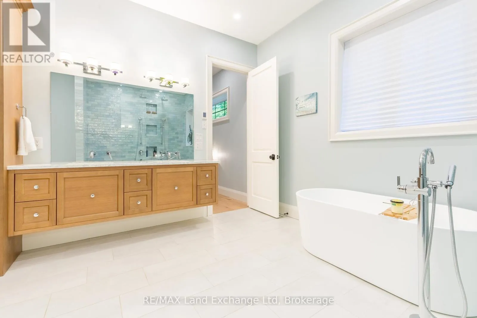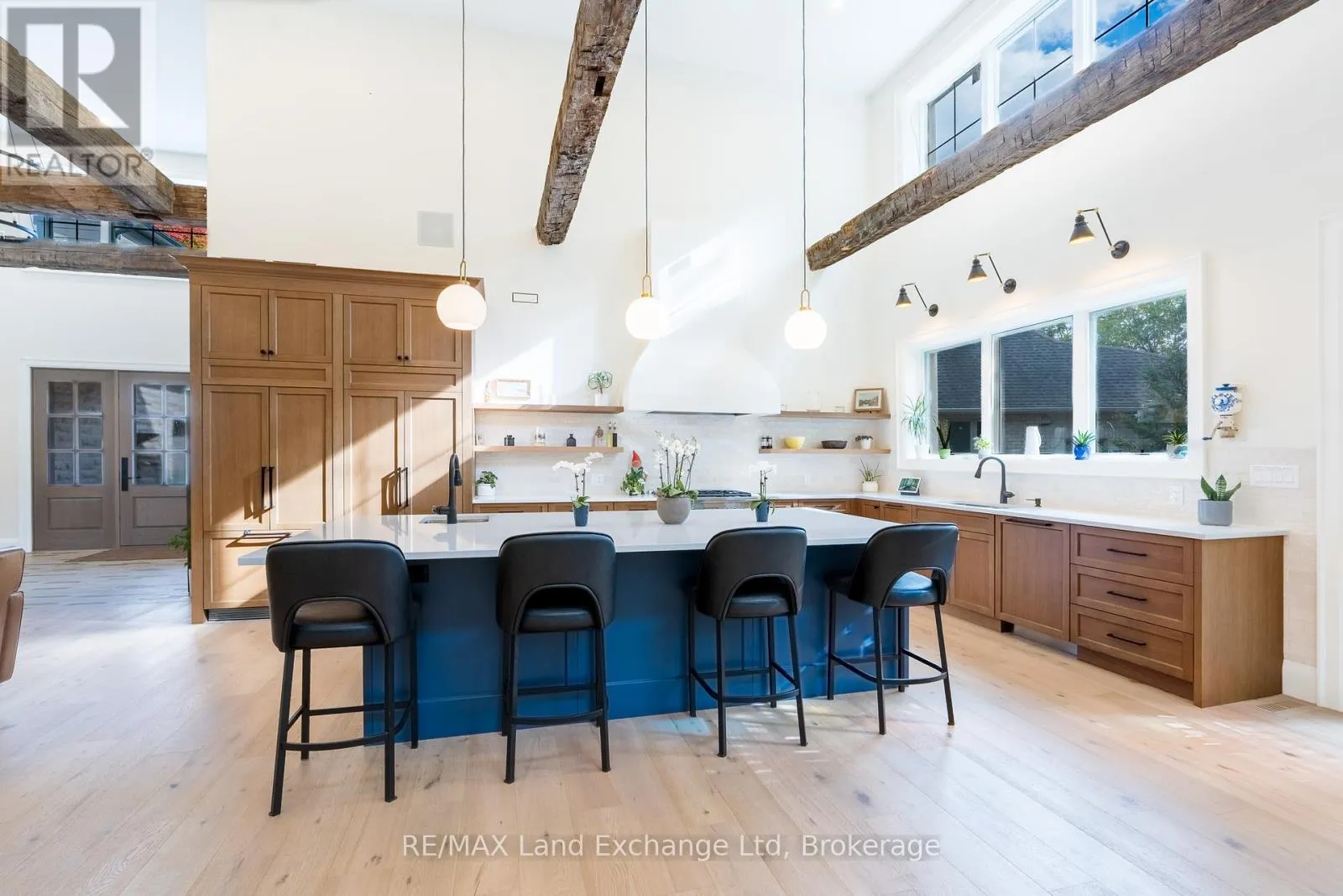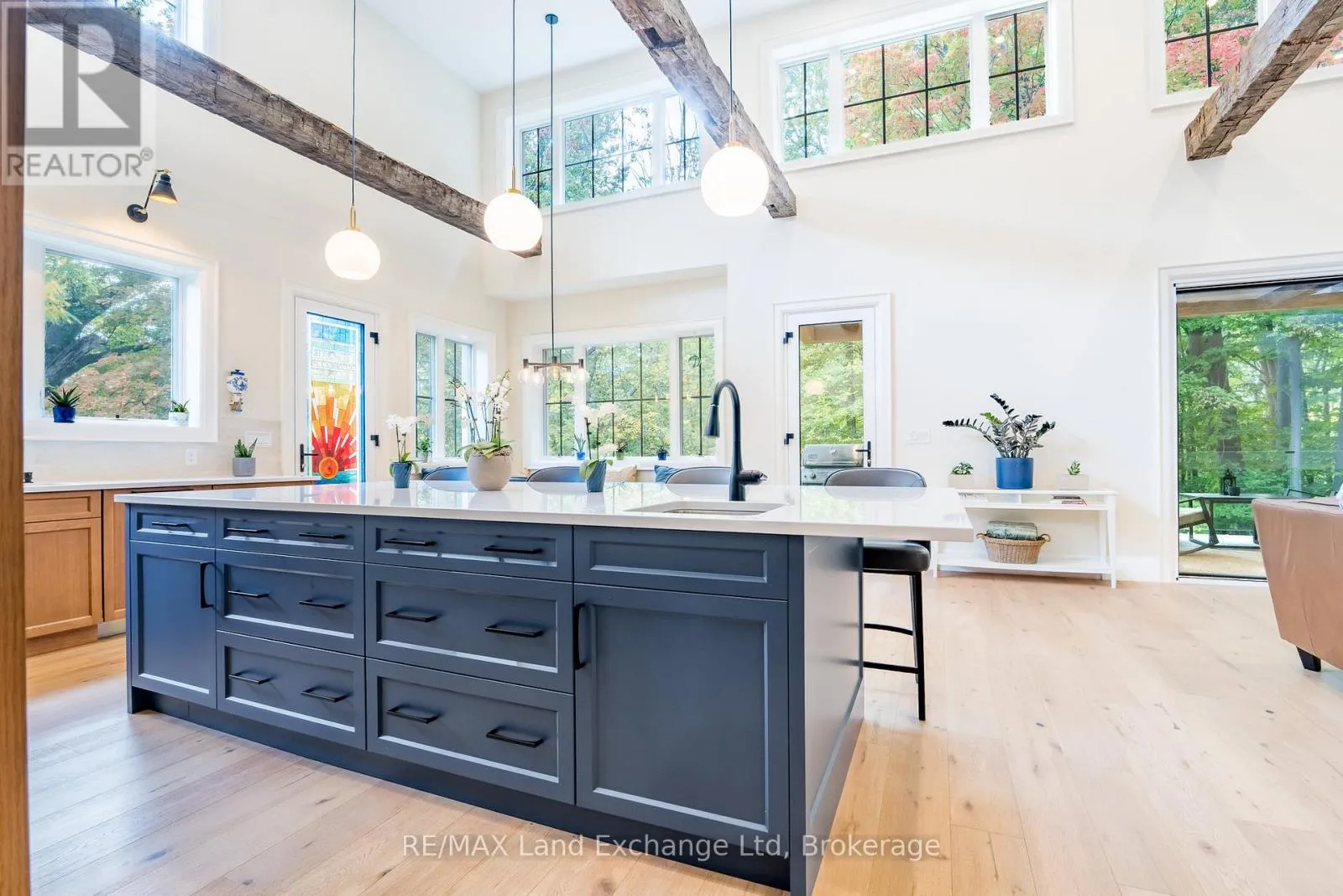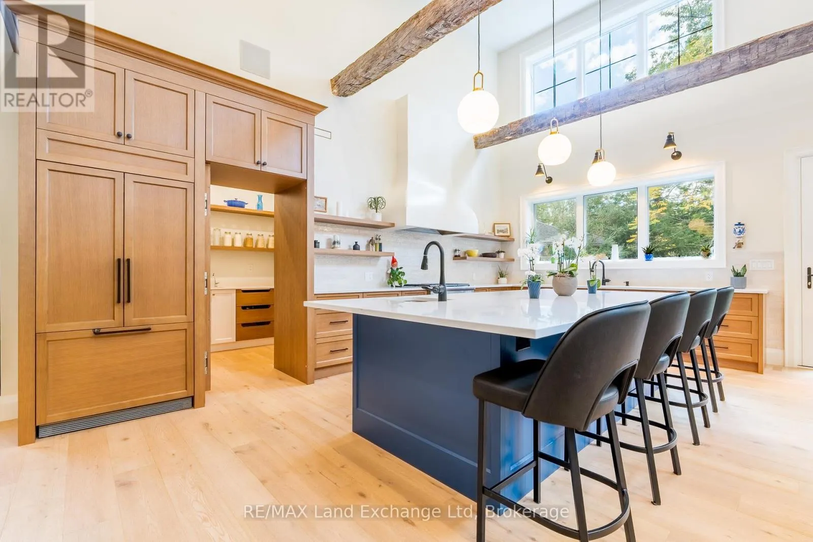 Cross Streets: Wall rd and Four Mile Creek Rd. ** Directions: From down-town NOTL, Head East on RR 87, Turn Left on Four-Mile-Creak rd. Property is on right (across from Enns Battery & Tire). Welcome home to this gorgeous 5 bedroom, 4 bath, New Build. Tucked away and hidden from the road, situated just 2 minutes from the beaches of Lake Ontario and Historic NOTL. Feels like you're living in a Hallmark movie! 18 ft ceilings welcome you into the front entrance with a floor-to-ceiling custom stone wood-burning fireplace, inviting you in to sit back and relax. A seamless flow from the expansive open concept main living room, kitchen and dining room, accented brilliantly by 6 authentic Niagara barn beams and an abundance of windows all around. Enjoy your morning coffee, looking out toward your own enchanting private forest, as you walk out onto your back patio (with heated floors), through the 12 ft kitchen patio doors. Comfort and elegance are all wrapped up in every detail of over 5500 sq ft of living space in this custom home. The spacious primary bedroom boasts a stunning 6 piece en-suite with shower for two, a bathtub + 2 sinks, a spacious walk-in closet, and 10 ft doors leading to your walk-out patio and private hot tub. In-floor heating throughout every room, basement, front & back porch. 3 Car garage, (with one drive through bay), wired-in for EV hookup. Finely detailed kitchen with stainless steel appliances, customized oak drawers and cabinets with quartz counters leading into a private butler's pantry complete with its own sink, dishwasher & high-quality oven. Main Floor Laundry, office and 2 piece powder room. This home was built with ICF foundation and walls for ideal temperature control. Above garage features 2 bedrooms with a shared 4 piece bathroom, and an open sitting/music room. The lower level with 2100 sq ft, includes a large rec room, 2 bedrooms, a 3 piece bath and the mechanical room. Almost an acre backing on the forest and 4 Mile Creek. The Perfect Location. This is a rare find, in the heart of Niagara wine country. The perfect layout for large family gatherings or a cozy night in with the kids. Completely custom. No detail spared. (id:27476)