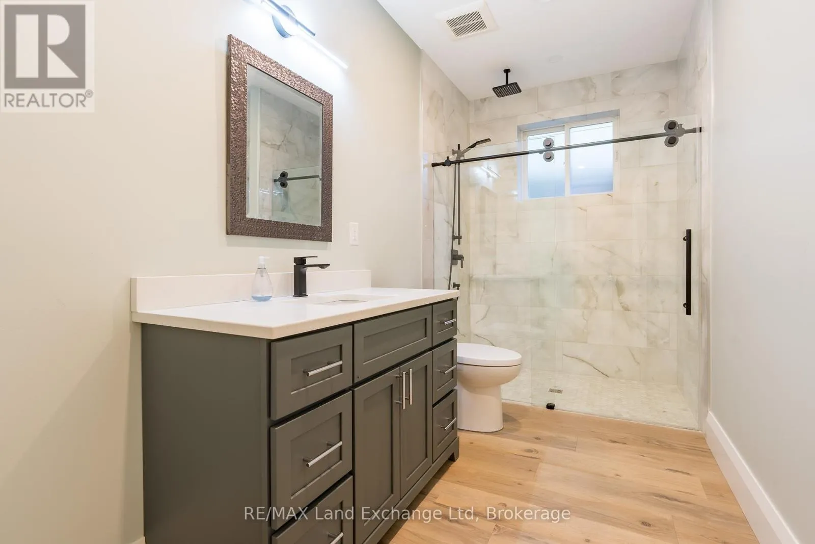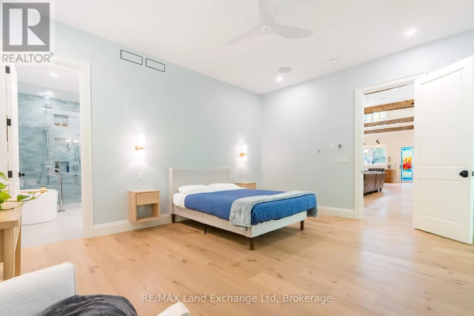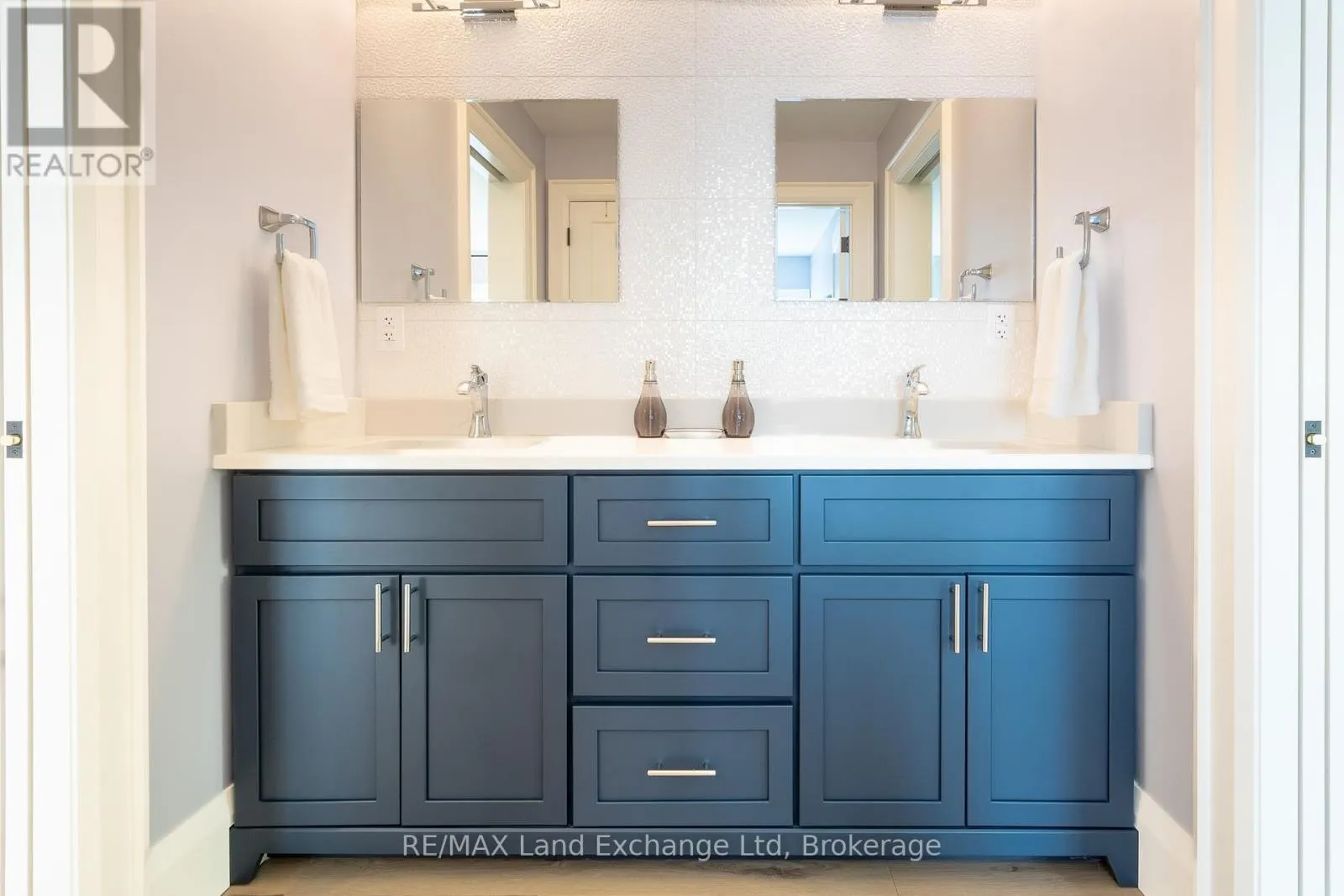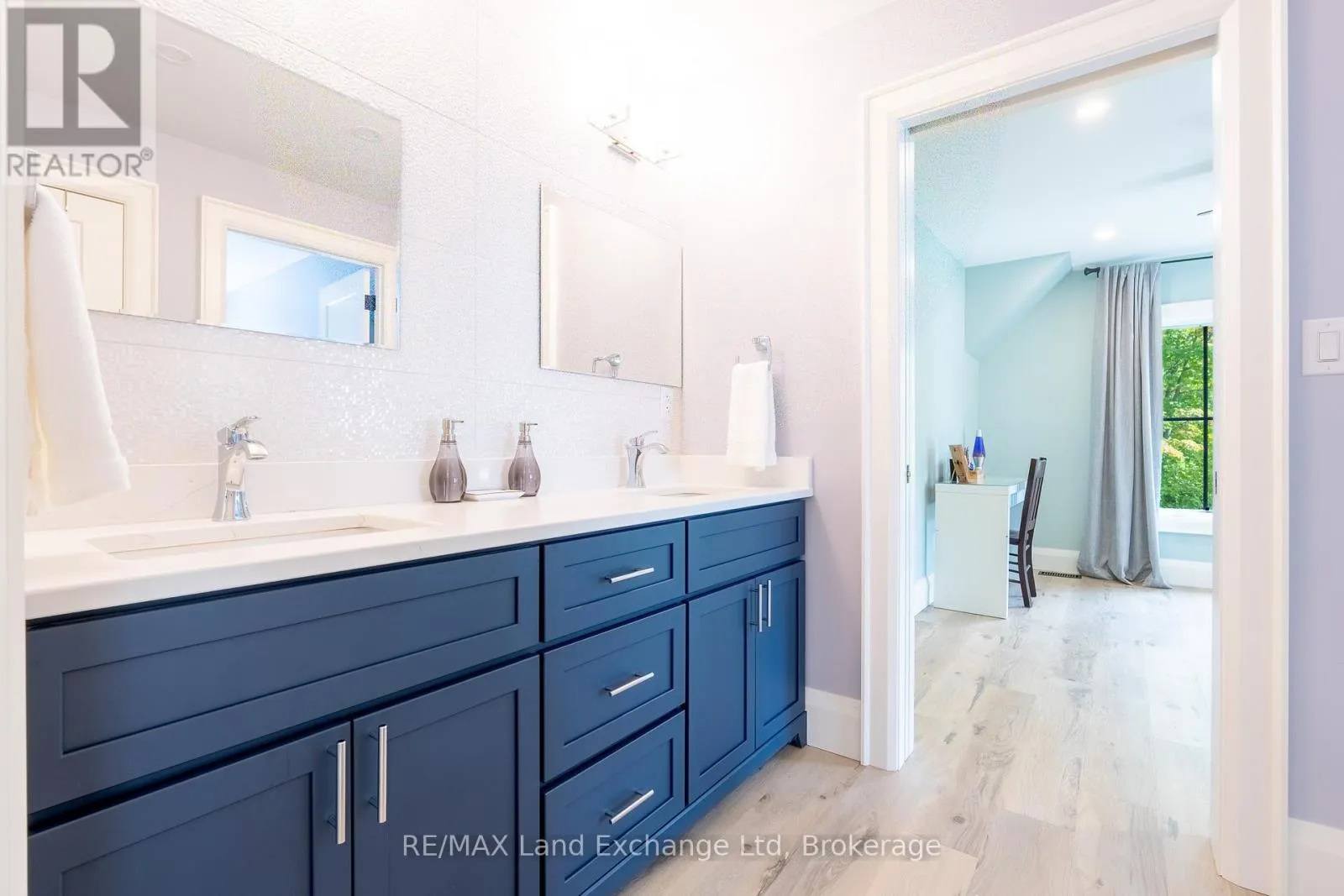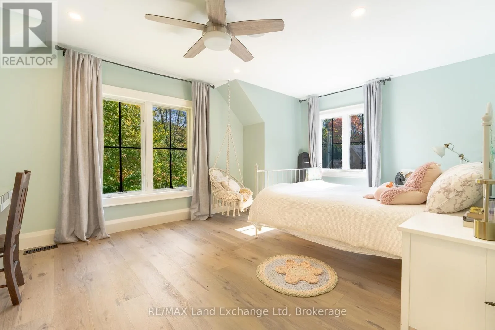Cross Streets: Wall rd and Four Mile Creek Rd. ** Directions: From down-town NOTL, Head East on RR 87, Turn Left on Four-Mile-Creak rd. Property is on right (across from Enns Battery & Tire). Welcome home to this gorgeous 5 bedroom, 4 bath, New Build. Tucked away and hidden from the road, situated just 2 minutes from the beaches of Lake Ontario and Historic NOTL. Feels like you're living in a Hallmark movie! 18 ft ceilings welcome you into the front entrance with a floor-to-ceiling custom stone wood-burning fireplace, inviting you in to sit back and relax. A seamless flow from the expansive open concept main living room, kitchen and dining room, accented brilliantly by 6 authentic Niagara barn beams and an abundance of windows all around. Enjoy your morning coffee, looking out toward your own enchanting private forest, as you walk out onto your back patio (with heated floors), through the 12 ft kitchen patio doors. Comfort and elegance are all wrapped up in every detail of over 5500 sq ft of living space in this custom home. The spacious primary bedroom boasts a stunning 6 piece en-suite with shower for two, a bathtub + 2 sinks, a spacious walk-in closet, and 10 ft doors leading to your walk-out patio and private hot tub. In-floor heating throughout every room, basement, front & back porch. 3 Car garage, (with one drive through bay), wired-in for EV hookup. Finely detailed kitchen with stainless steel appliances, customized oak drawers and cabinets with quartz counters leading into a private butler's pantry complete with its own sink, dishwasher & high-quality oven. Main Floor Laundry, office and 2 piece powder room. This home was built with ICF foundation and walls for ideal temperature control. Above garage features 2 bedrooms with a shared 4 piece bathroom, and an open sitting/music room. The lower level with 2100 sq ft, includes a large rec room, 2 bedrooms, a 3 piece bath and the mechanical room. Almost an acre backing on the forest and 4 Mile Creek. The Perfect Location. This is a rare find, in the heart of Niagara wine country. The perfect layout for large family gatherings or a cozy night in with the kids. Completely custom. No detail spared. (id:27476)