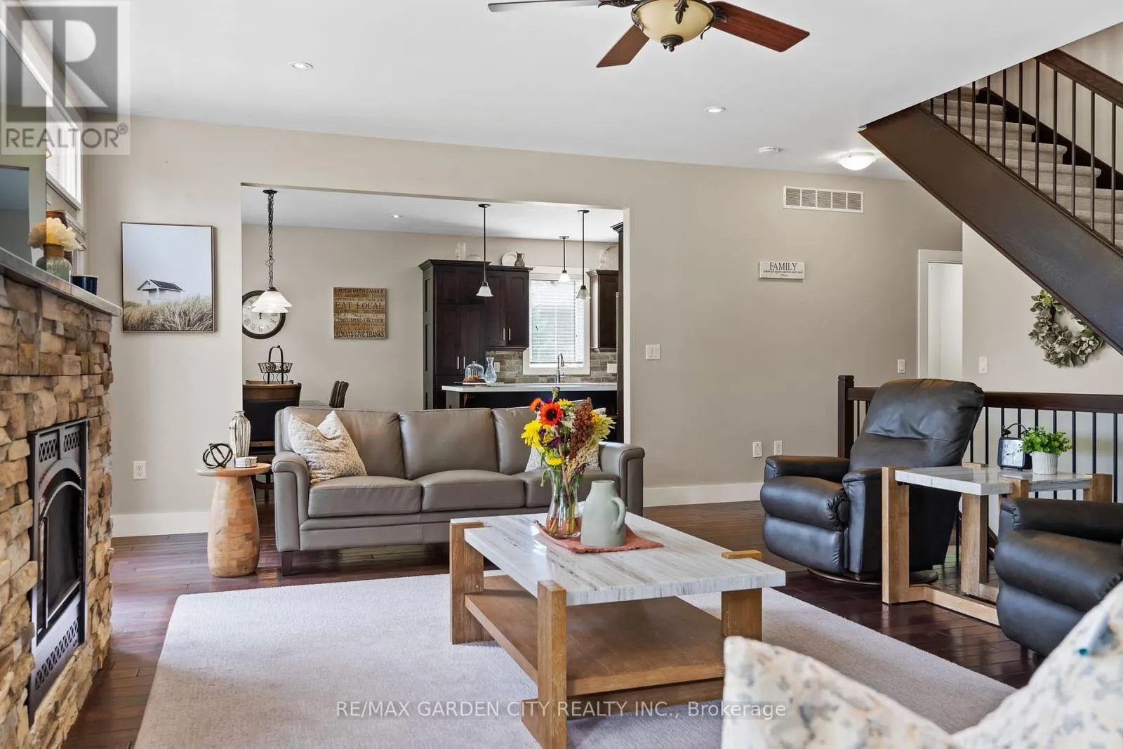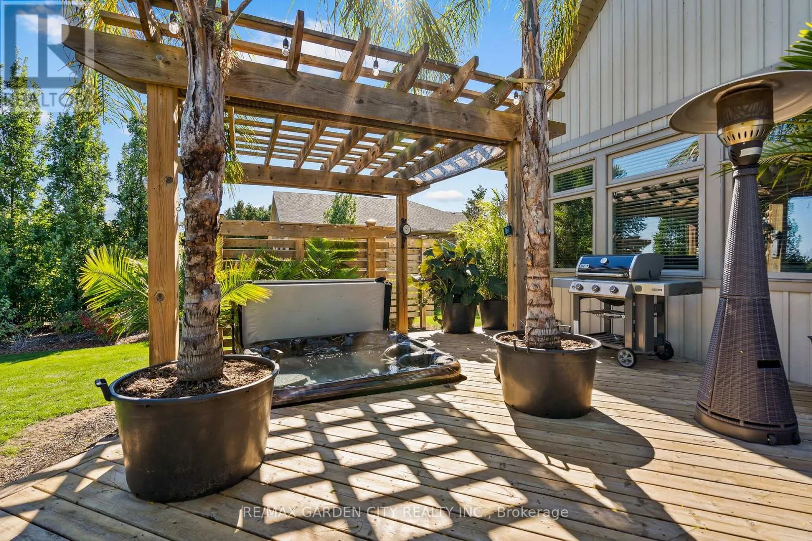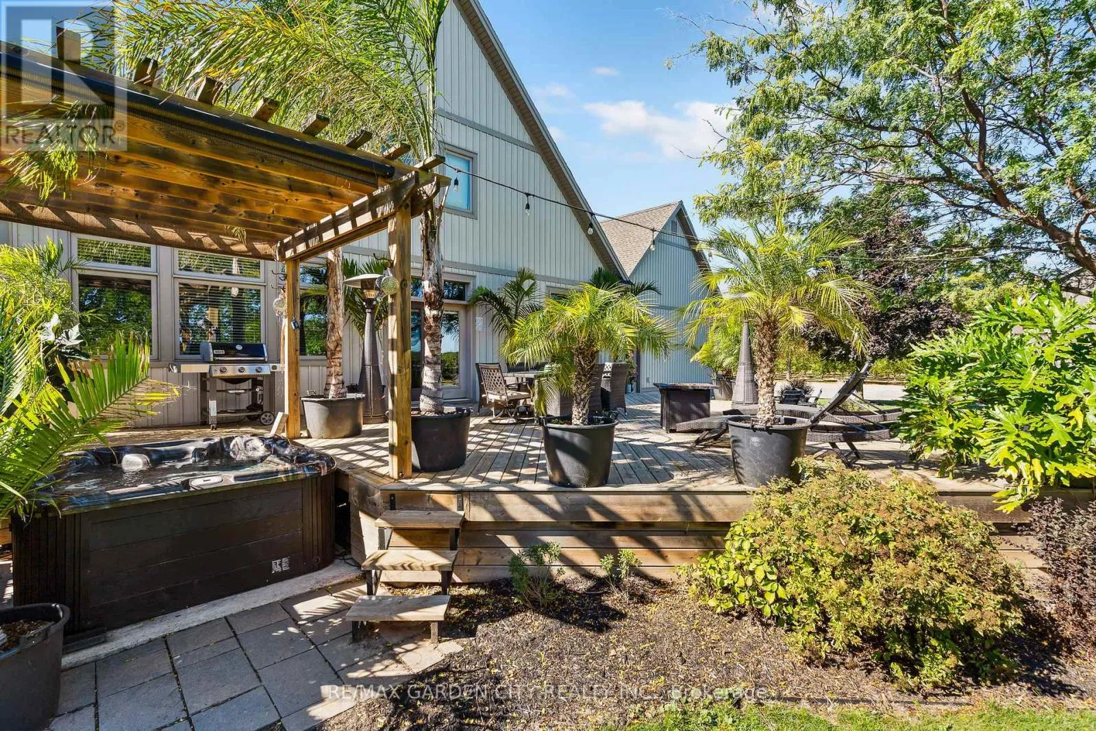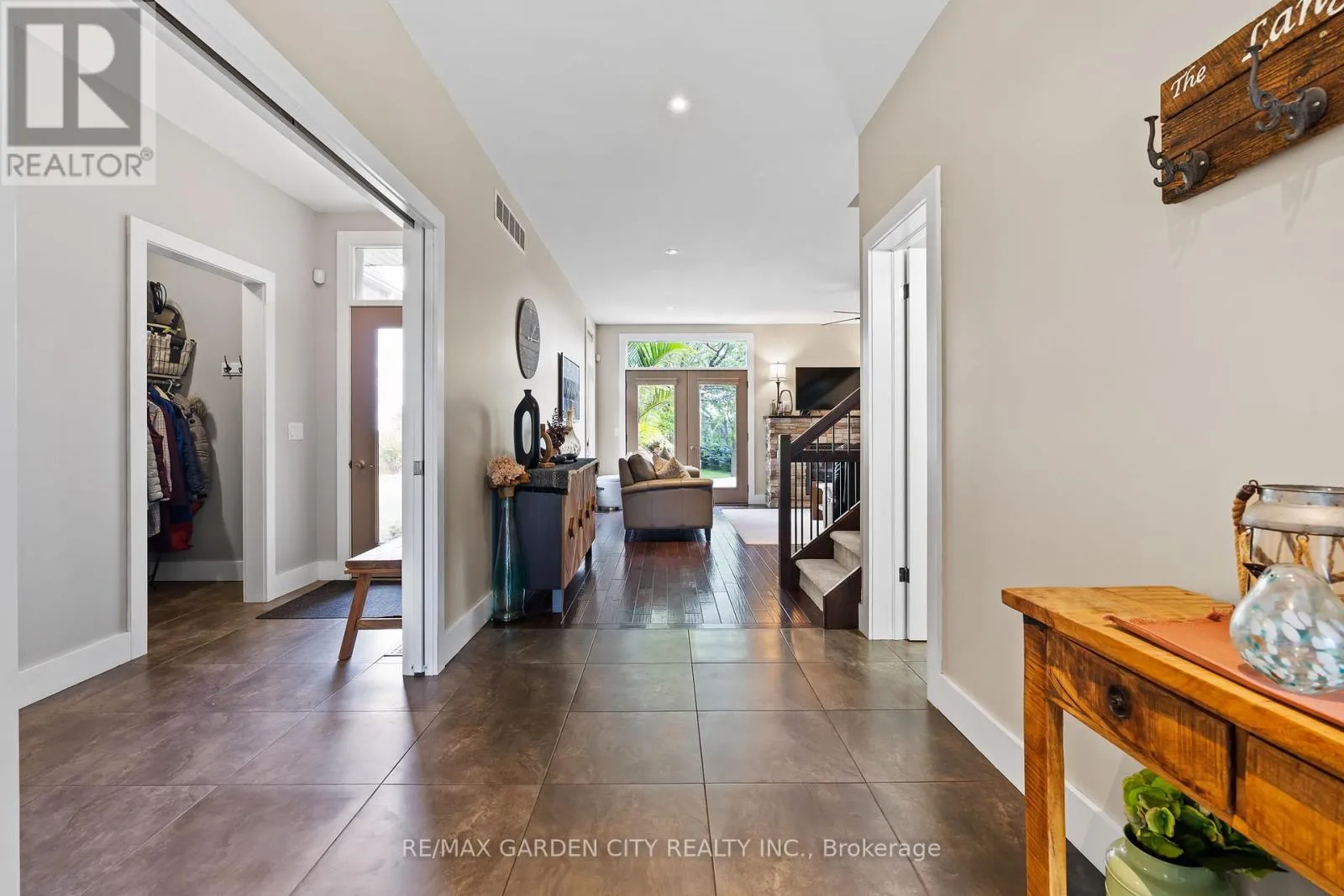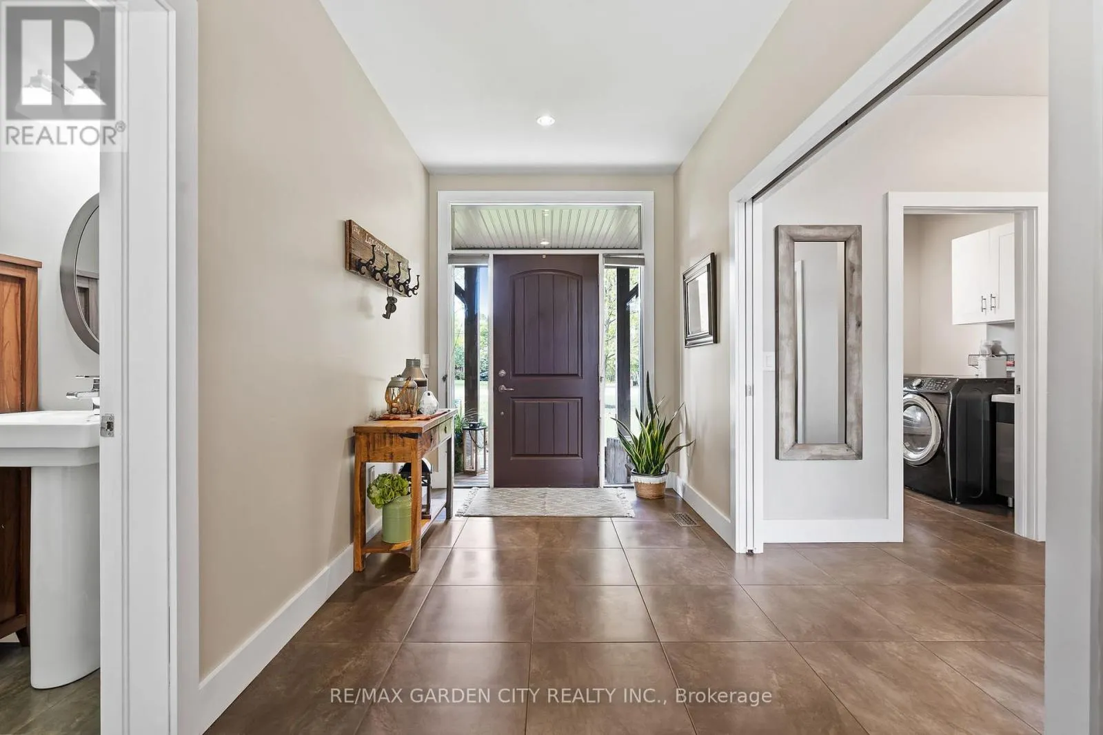 Cross Streets: Lakeshore Rd. ** Directions: Turn right off Lakeshore Rd. Welcome to 411 Read Road, Niagara on the Lake where timeless charm meets modern convenience in the heart of wine country. This beautifully maintained home, built in 2011, offers over 2,400 sq ft of thoughtfully designed living space on a 1.2-acre lot, combining the peace of country living with the benefits of city water and a high end septic system. Step onto the large covered front porch, perfect for morning coffee or sunset views, and enter a grand foyer with an elegant sliding door concealing a functional back hall. Here you'll find a spacious mudroom, laundry area, and access to the oversized triple garage. At the heart of the home is a warm and inviting living room featuring a cozy gas fireplace and two sets of garden doors that open to the back deck, offering seamless indoor-outdoor living. The dinette area easily accommodates a large table, flowing into a gorgeous kitchen with generous cabinetry, brand-new quartz countertops, and a stunning backsplash perfect for entertaining or everyday living. A neatly tucked-away office nook provides a quiet space to work or study. The main floor primary suite is a private retreat, featuring his and hers walk-through closets and a luxurious 4-piece ensuite with a soaker tub, corner shower, and stylish vanity. Upstairs, two massive bedrooms each boast walk-in closets and share a 4-piece ensuite, ideal for family or guests. The finished basement offers comfortable additional living space with in-floor heating, 9 ft ceilings, and a fourth bedroom. Outside, enjoy unobstructed orchard views, a huge deck, hot tub, and ample yard space perfect for kids, entertaining, or even adding a pool. A bonus barn offers dry storage, with a newer steel roof. Above the garage, theres potential for an in-law suite or studio, giving you options for extended family or additional income. If you're dreaming of a country lifestyle without compromising on modern comforts, now is the time to make this Your Niagara Home. (id:27476)