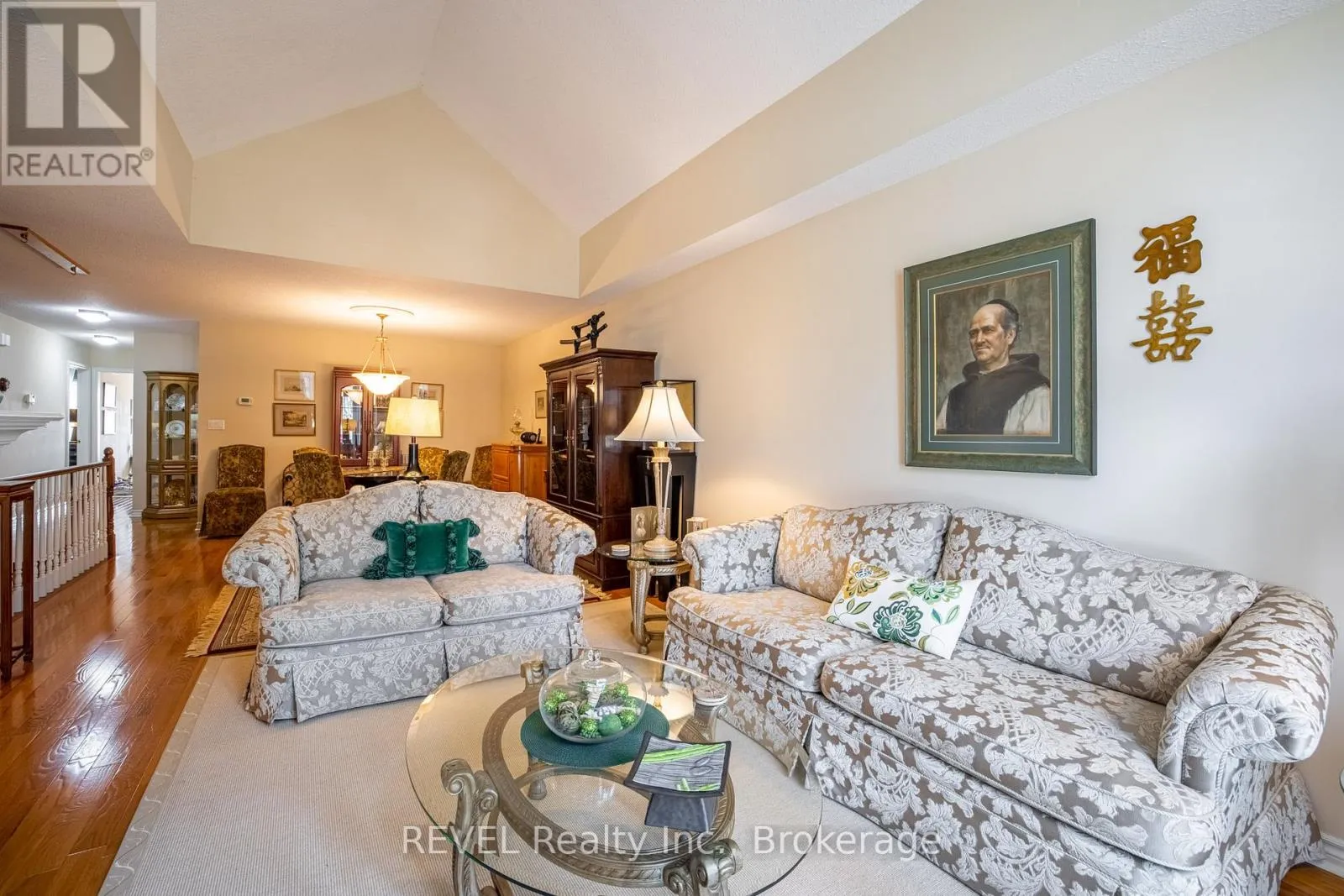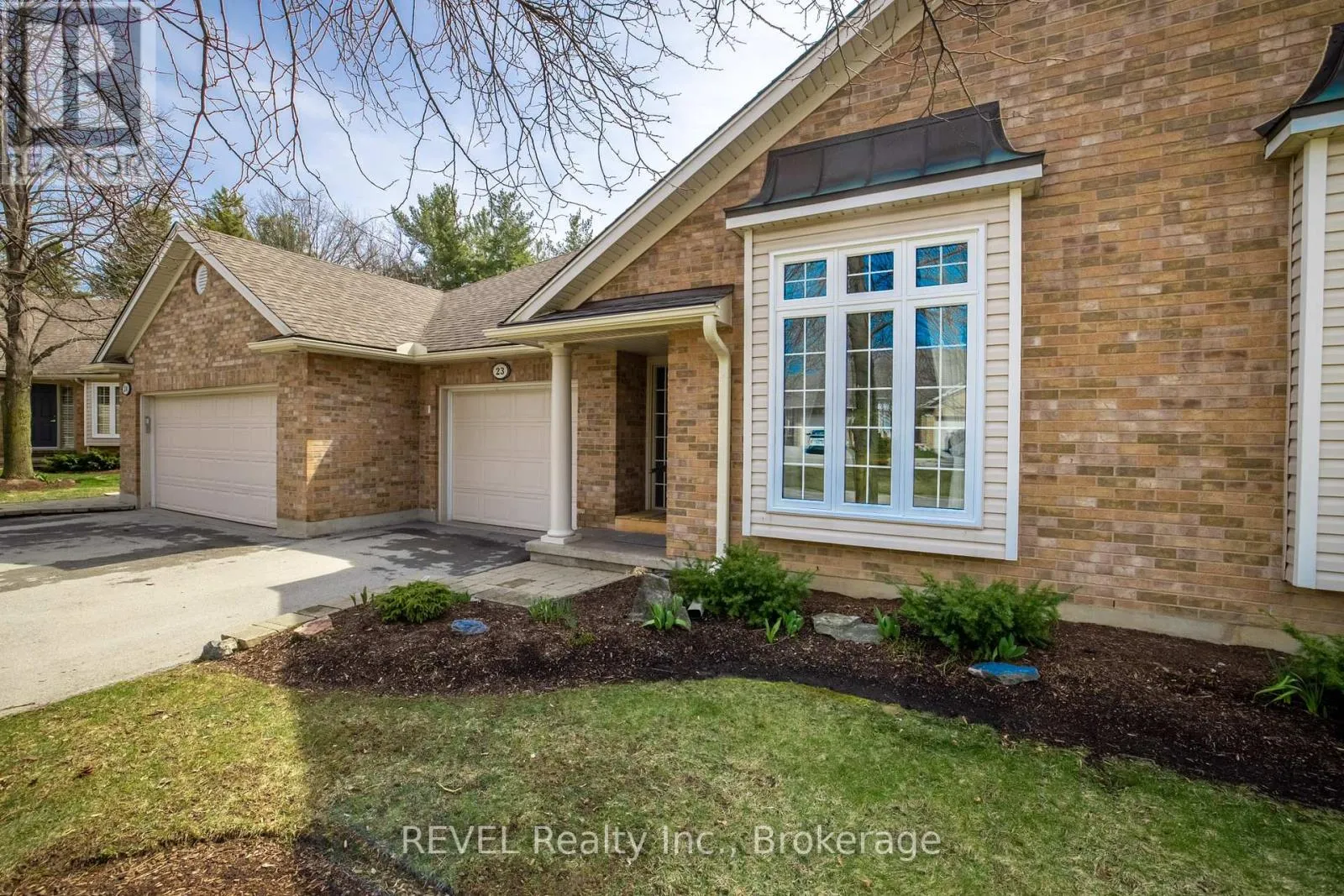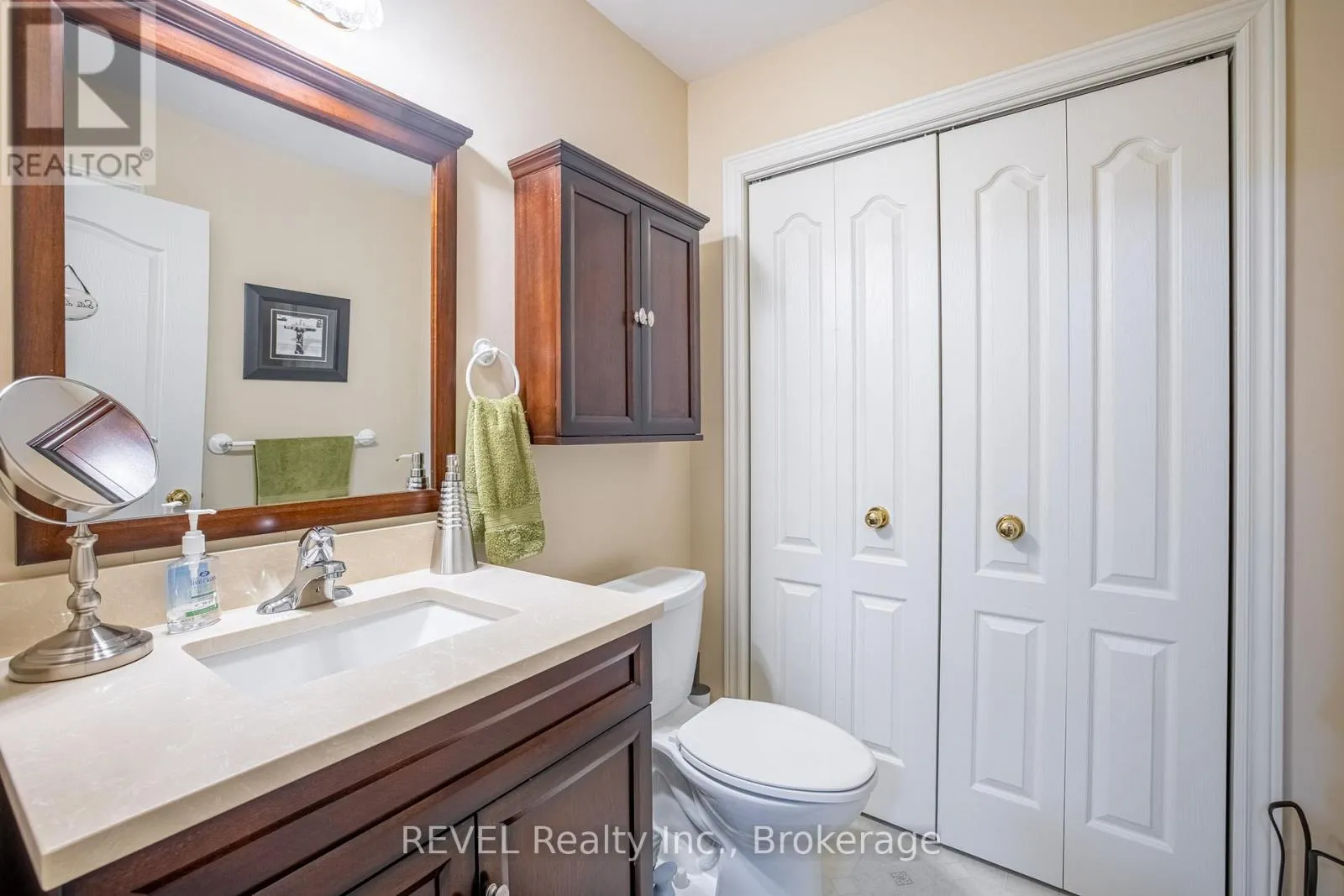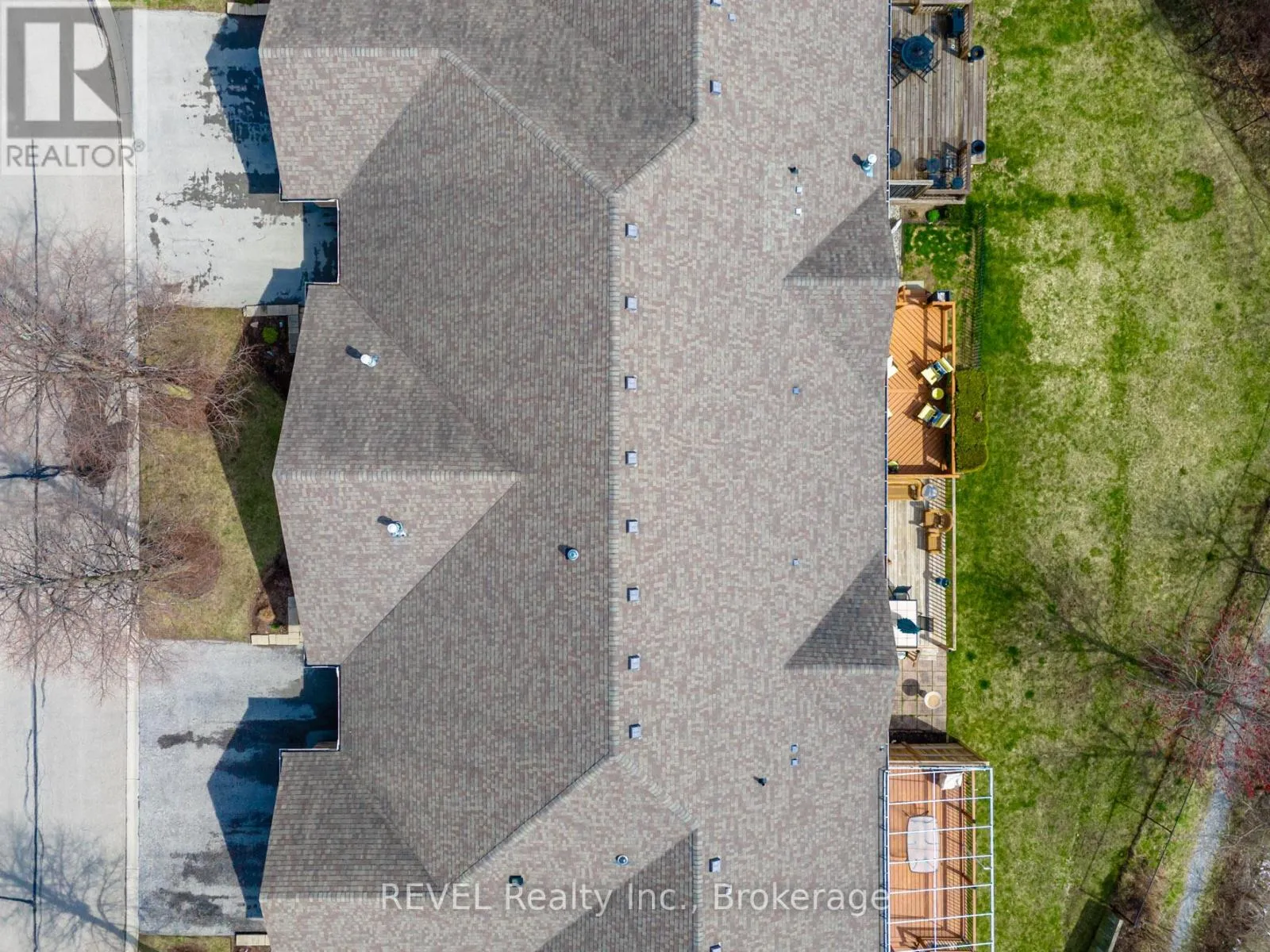 Cross Streets: Creek Road. ** Directions: Niagara Stone Rd (Hwy 55). Welcome to this meticulously cared-for brick bungalow in Glen Brooke Estates, offering 1,360 sq ft of elegant main floor living in the heart of Niagara-on-the-Lake. The main level features a bright and spacious living room with cathedral ceilings and a cozy gas fireplace, a separate formal dining room, and a generous kitchen with Corian countertops, built-in dishwasher, and a charming dinette. Sliding doors lead from the dinette to a 20 x 12 wood deck, perfect for relaxing or entertaining. The primary bedroom boasts a walk-in closet and a private 4-piece ensuite. A second bedroom has been thoughtfully converted into a versatile den, study, or home office. There is also a convenient 2-piece bathroom off the dining room and main-floor laundry just off the kitchen. Direct access to the attached single-car garage adds ease and convenience. The finished lower level offers a large family room, a spacious guest bedroom, a 3-piece bathroom, and a substantial utility room with a new high-efficiency Lennox furnace and A/C. Additional features include a dedicated workshop, and storage area. Backing onto city-owned green space and a peaceful municipal reservoir fed by Four Mile Creek, this home combines natural beauty with low-maintenance living. Condo fees cover all exterior maintenance, lawn care, snow removal, building insurance, water costs, Bell Fibe Internet & TV. This well-maintained one-story townhome complex is highly sought-after in the vibrant community of Virgil. (id:27476)