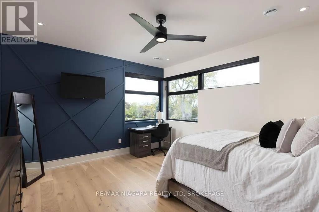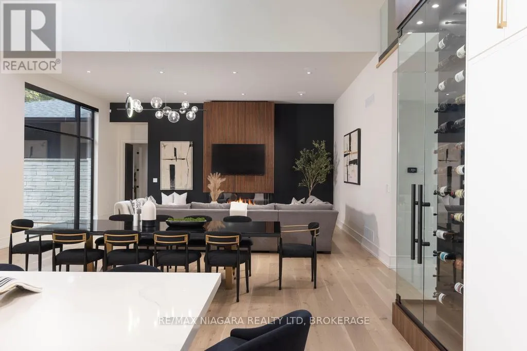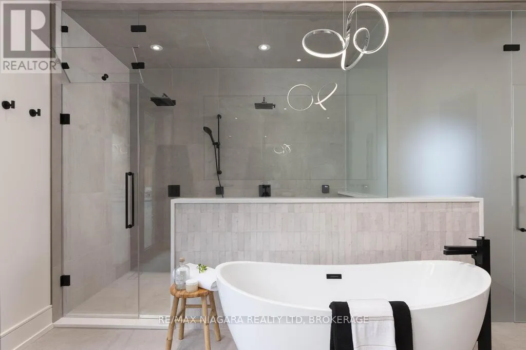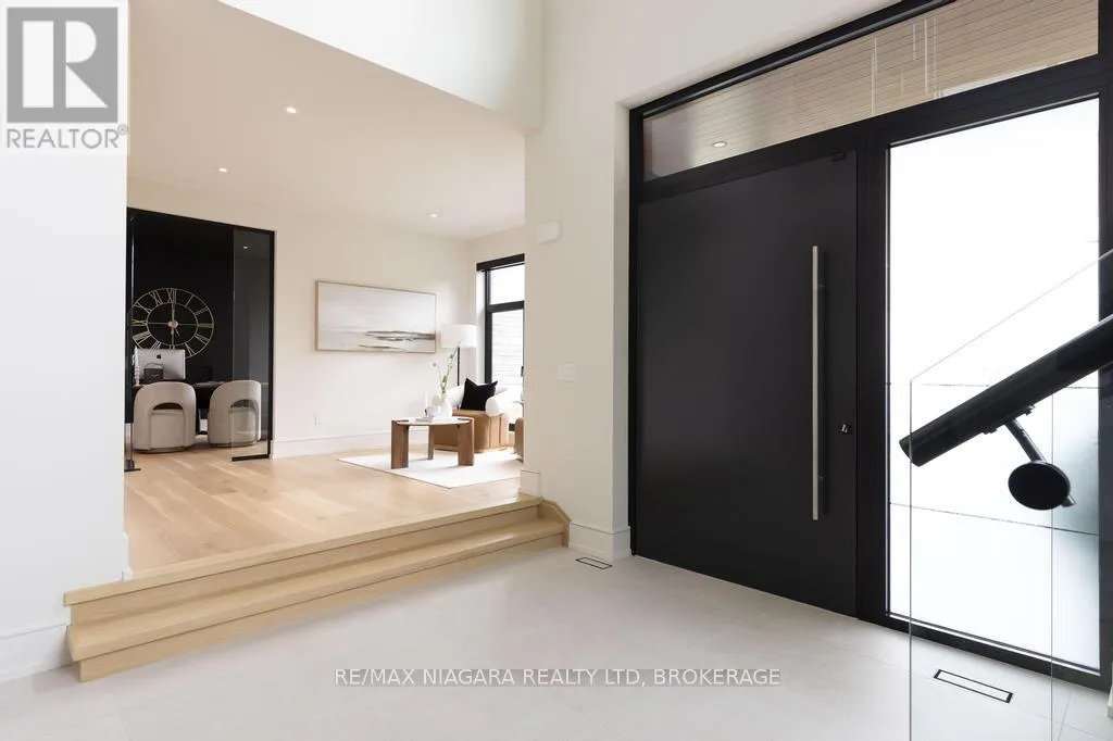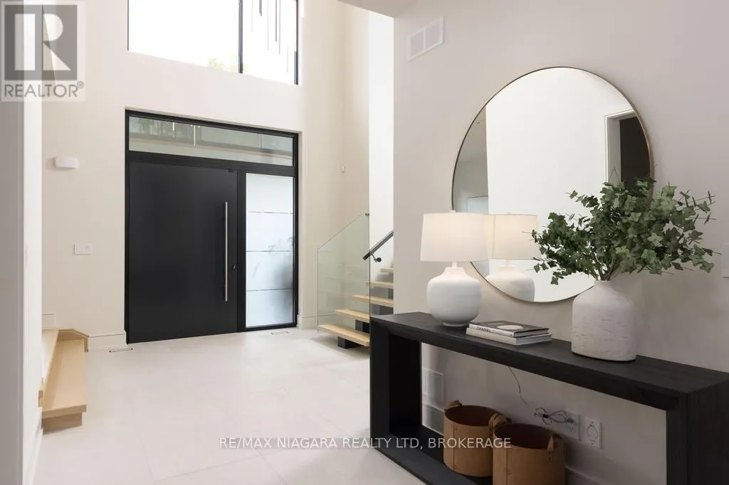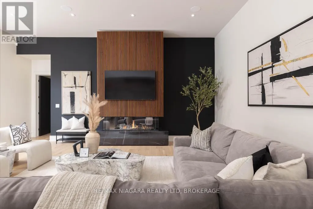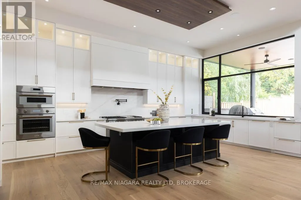 NIAGARA PARKWAY/QUEENSTON. Nestled in the heart of Niagara-on-the-Lake, 2005 York Road is a one-of-a-kind, Portofino-inspired bungaloft offering over 7,500 square feet of luxurious living space. This exquisite residence features oversized garages, 4 bedrooms, 4 bathrooms, and the utmost privacy, backing onto the protected greenspace of the Niagara Escarpment. Seamlessly blending timeless European elegance with contemporary design and cutting-edge smart home technology, the home's open-concept layout showcases soaring ceilings, an expansive European Luxury Aluminum Window System with Premium Reynaer Window System by VIIU, and exceptional craftsmanship throughout. The chef's kitchen serves as the true centrepiece, boasting Thermador appliances, an oversized island, quartz countertops, and custom cabinetry designed for both function and style. The main-floor primary suite occupies its own private wing, offering a serene retreat complete with a spa-inspired ensuite featuring a steam shower, heated floors, and direct access to the backyard. A striking mono-stringer staircase with glass railings leads to the upper loft, which features 2 additional bedrooms, a flex space, a bathroom, a secondary laundry area, and an outdoor balcony with sweeping views of the surrounding landscape. The lower level provides a full walkout to the backyard, expanding the living and future theatre room. Every detail has been meticulously curated, from in-floor heated bathrooms, power shades, a Generac backup generator and a flat roof featuring heat tracers. The professionally landscaped grounds create a private resort-like oasis, complete with an inground pool, hot tub, covered patio with an outdoor kitchen and outdoor gas fireplace. Designed with both comfort and sophistication in mind, this remarkable residence embodies the pinnacle of modern luxury living in one of Niagara-on-the-Lake's most sought-after locations. Luxury Certified. (id:27476)