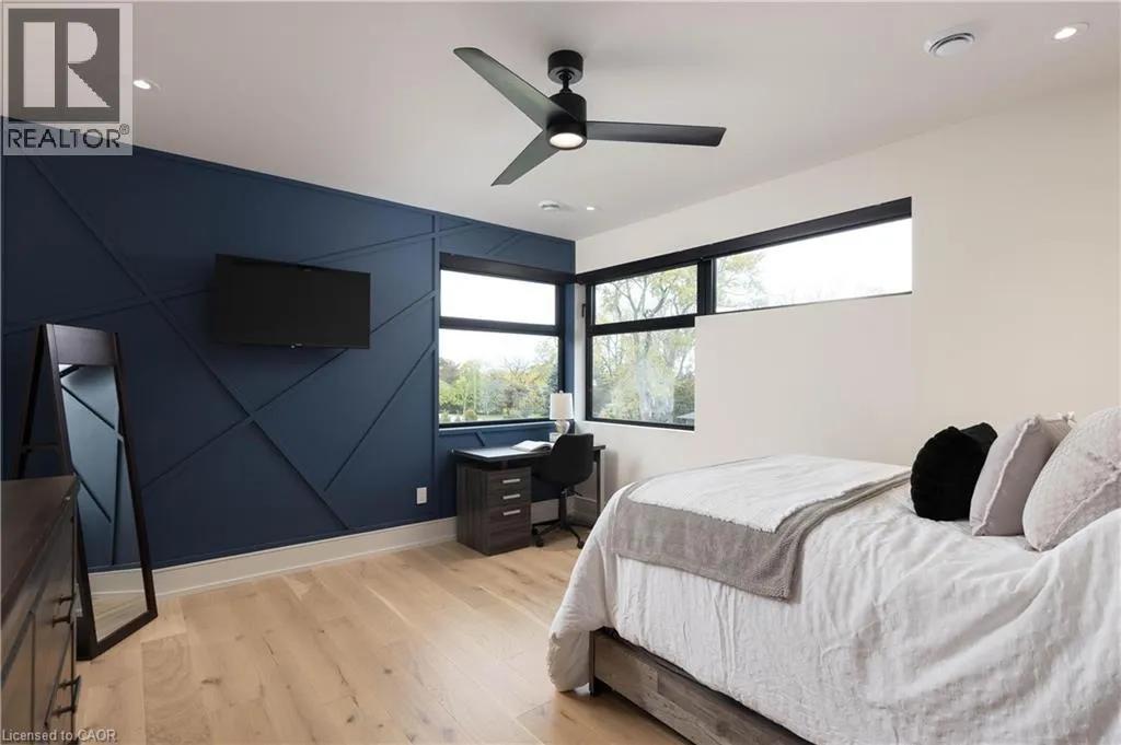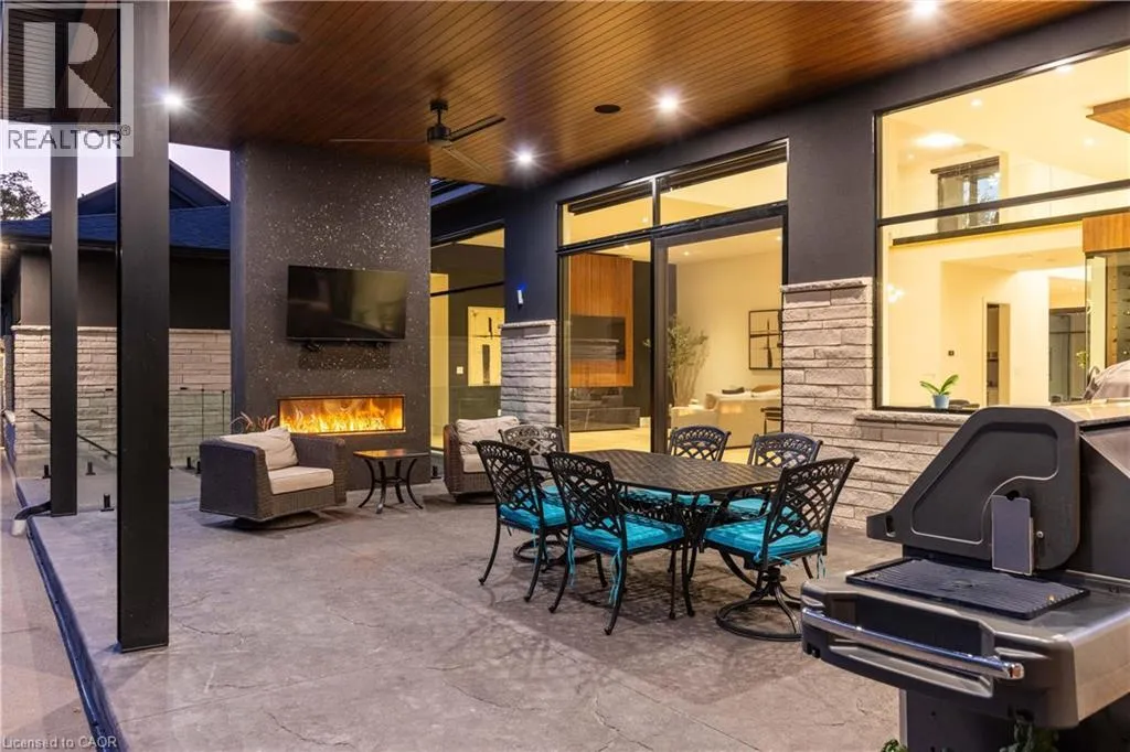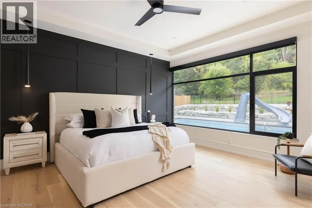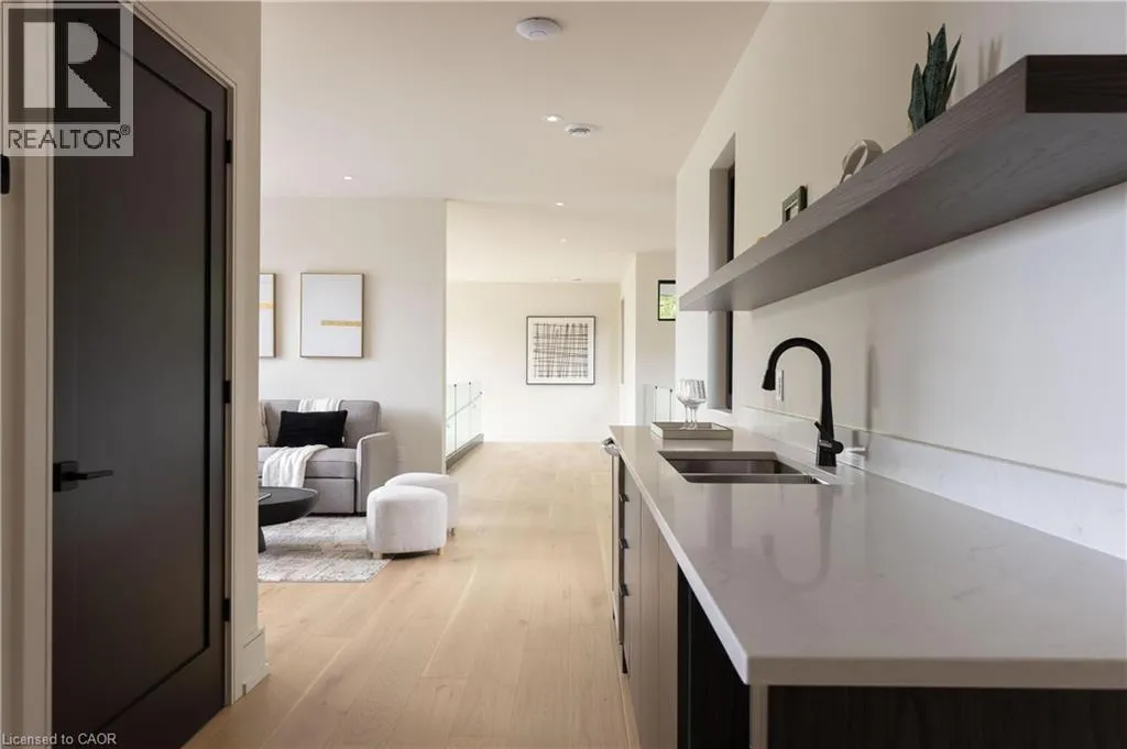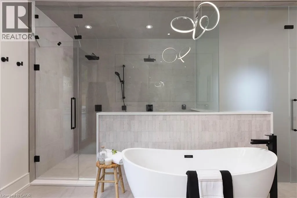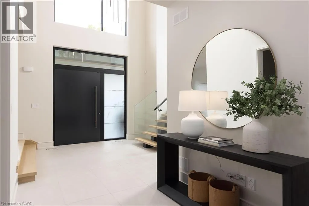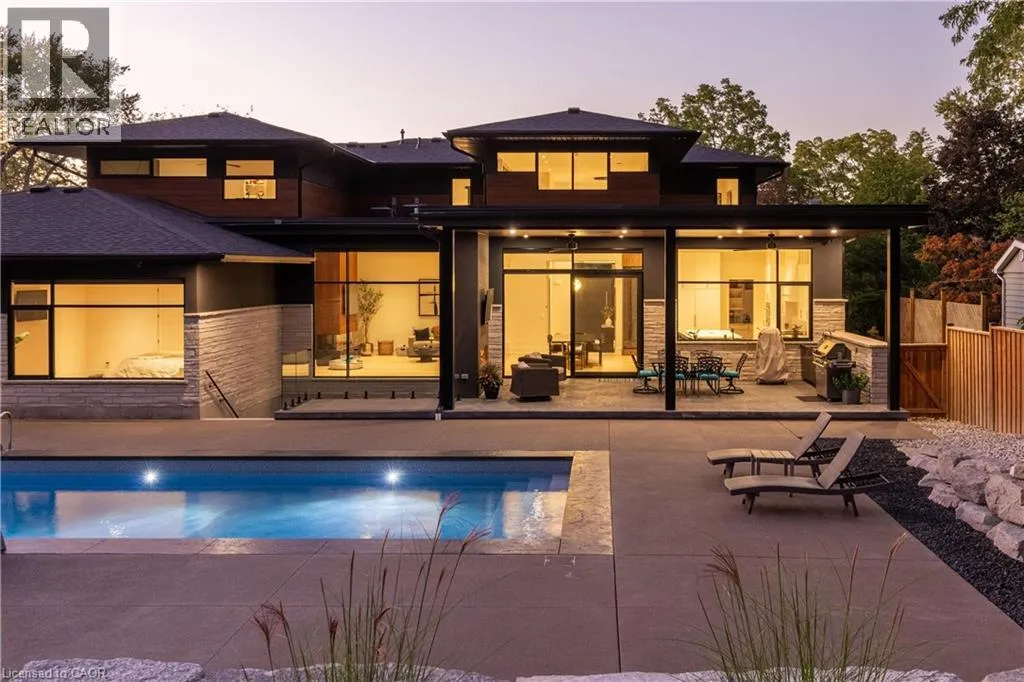 NIAGARA PARKWAY/QUEENSTON Nestled in the heart of Niagara-on-the-Lake, 2005 York Road is a one-of-a-kind, Portofino-inspired bungaloft offering over 7,500 square feet of luxurious living space. This exquisite residence features oversized garages, 4 bedrooms, 4 bathrooms, and the utmost privacy, backing onto the protected greenspace of the Niagara Escarpment. Seamlessly blending timeless European elegance with contemporary design and cutting-edge smart home technology, the home's open-concept layout showcases soaring ceilings, an expansive European Luxury Aluminum Window System with Premium Reynaer Window System by VIIU, and exceptional craftsmanship throughout. The chef's kitchen serves as the true centrepiece, boasting Thermador appliances, an oversized island, quartz countertops, and custom cabinetry designed for both function and style. The main-floor primary suite occupies its own private wing, offering a serene retreat complete with a spa-inspired ensuite featuring a steam shower, heated floors, and direct access to the backyard. A striking mono-stringer staircase with glass railings leads to the upper loft, which features 2 additional bedrooms, a flex space, a bathroom, a secondary laundry area, and an outdoor balcony with sweeping views of the surrounding landscape. The lower level provides a full walkout to the backyard, expanding the living and future theatre room. Every detail has been meticulously curated, from in-floor heated bathrooms, power shades, a Generac backup generator and a flat roof featuring heat tracers. The professionally landscaped grounds create a private resort-like oasis, complete with an inground pool, hot tub, covered patio with an outdoor kitchen and outdoor gas fireplace. Designed with both comfort and sophistication in mind, this remarkable residence embodies the pinnacle of modern luxury living in one of Niagara-on-the-Lake's most sought-after locations. (id:27476)