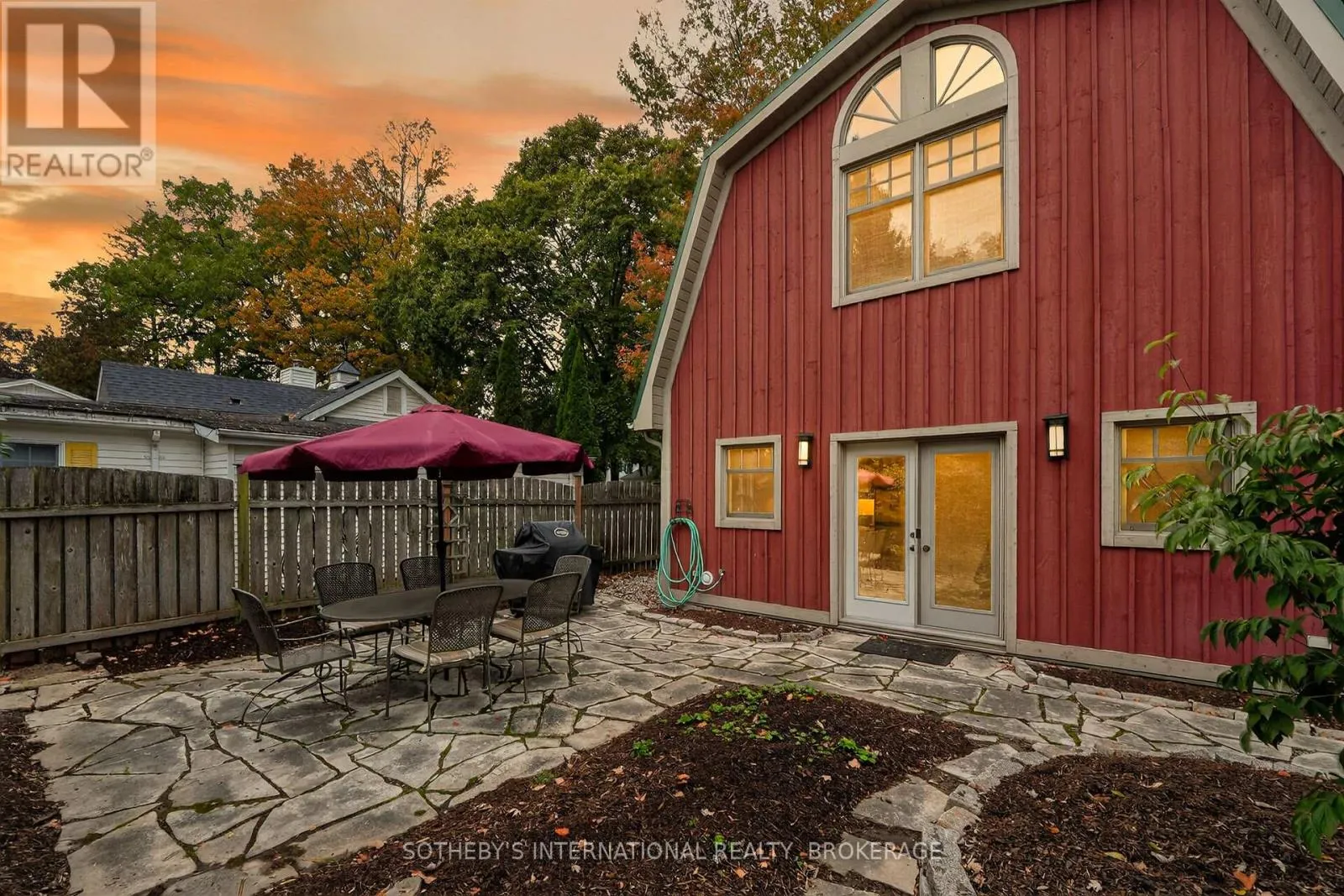 Cross Streets: Platoff St and Davy St. ** Directions: North on King St. East on. Welcome to Abigail House - A Quintessential Niagara-on-the-Lake Retreat that you can call home. Tucked away on a quiet tree-lined street and yet walking distance to all that Old Town offers, this charming property captures the essence of Niagara-on-the-Lake living - storybook charm, modern comfort, and dual-purpose income potential. At the front of the property, Abigail House operates as a successful short-term rental (as seen on Abigail-House.com), beloved by guests for its warmth, character, and unbeatable location. The home's inviting layout, classic details, and beautifully landscaped gardens create the kind of relaxed sophistication visitors travel from all over the world to experience. Behind the main home sits the Carriage House - a striking red Mabec siding exterior with rustic beams and an artist's-loft feel. The sellers use this private space when visiting town, but it also offers incredible flexibility - perfect for multi-generational living, an owner's suite, a guest house, or an expanded Airbnb footprint. Inside, natural wood floors, exposed beams, and a vaulted ceiling with a statement arched window flood the living area with light. A cozy wood stove anchors the open-concept space, while the upper level features two serene bedrooms and a spa-inspired bath. The patio doors open to a flagstone courtyard surrounded by mature gardens - the ideal setting for morning coffee or evening wine under the stars. This rare, income-producing gem invites you to experience the timeless charm of Niagara-on-the-Lake with its steps to shops, restaurant and theatre - whether you're looking to invest, host, or simply live beautifully, this property is a must see! HST is applicable which can be deferred if the buyer is an HST registrant. (Please Note: Realtor.ca displays the combined room count for both dwellings. The property includes a Main House and Carriage House. The Carriage House has its own kitchen, 2 bedrooms, and 1 bath-ideal for guests, family, or income use.) (id:27476)