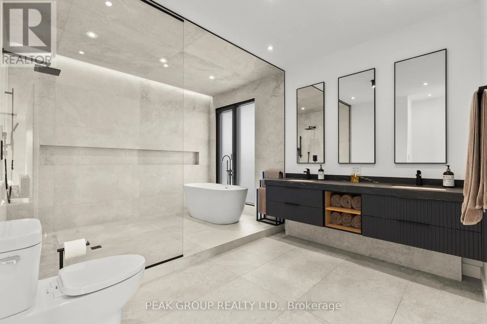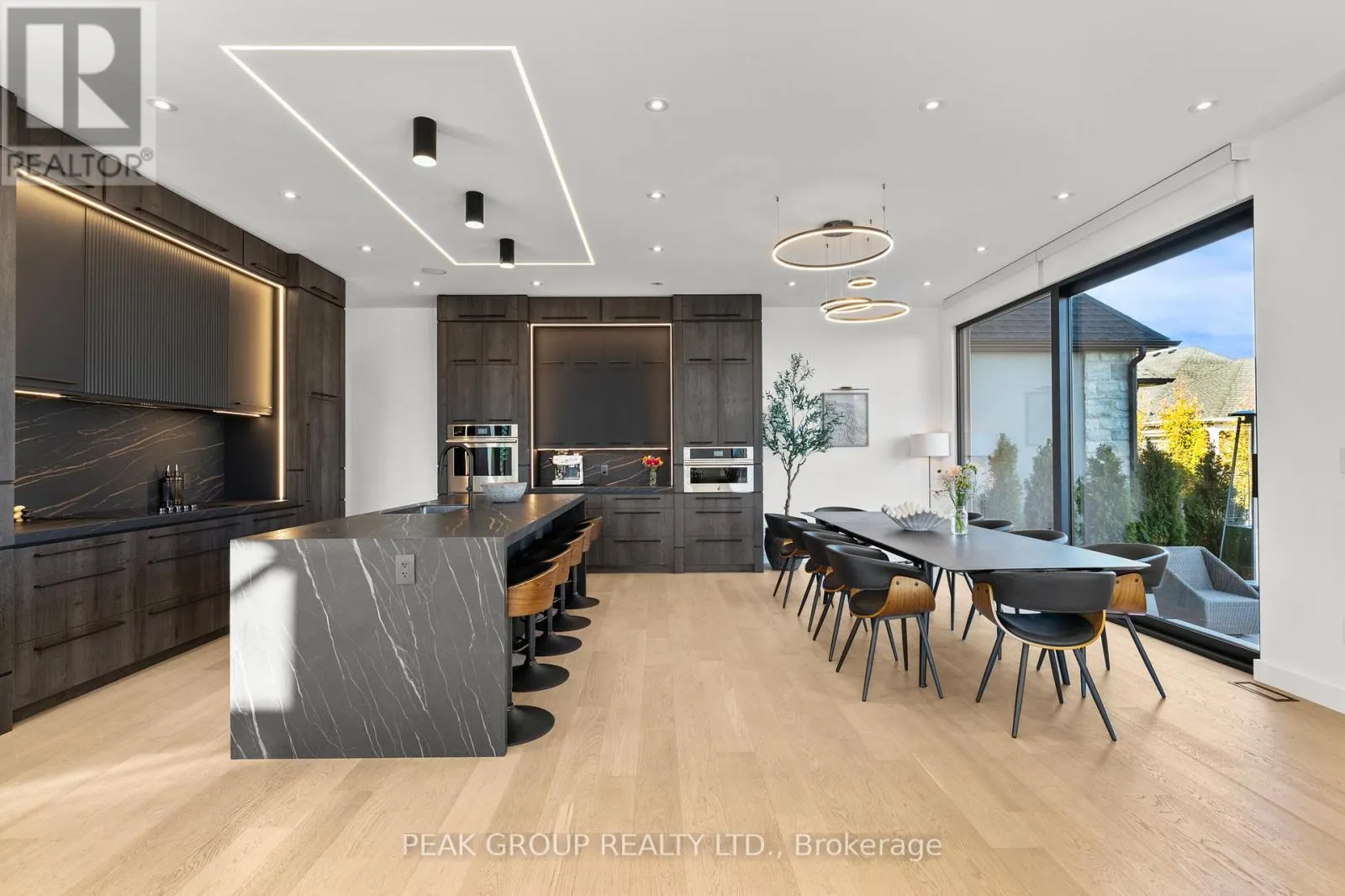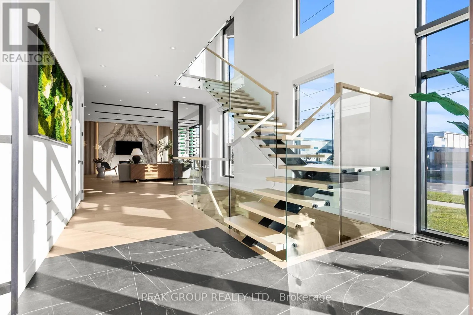 Cross Streets: York Rd / Four Mile Creek Rd. ** Directions: Four Mile Creek Millpond. Modern Luxury Meets Refined Design Built by Rahnama Homes, this masterpiece two-storey residence is ideally located in the highly sought-after community of St. Davids in Niagara-on-the-Lake. Perfectly positioned on a corner lot, this home exemplifies modern architecture and elegant craftsmanship. From the moment you step inside, you're greeted by a grand open staircase, soaring ceilings, and expansive windows that flood the space with natural light.Custom feature walls and designer finishes throughout create an immediate sense of sophistication. As you continue through the grand foyer, the home unfolds into a striking open-concept living space that seamlessly connects the great room, dining area, and kitchen. The kitchen serves as the heart of the home-anchored by a 10-foot island, surrounded by premium cabinetry, beautiful countertops, high-end appliances, and designer fixtures. Recessed lighting and commercial-grade windows enhance the serene, airy ambiance, while your 20-foot custom sliding doors blur the line between indoor and outdoor living, perfect for entertaining or quiet relaxation. Upstairs, discover four spacious bedrooms retreats, each with its own private ensuite and walk-in closet. The primary suite evokes the essence of a luxury hotel, where privacy and openness are masterfully balanced. The walk-in closet, adorned with floor-to-ceiling custom cabinetry, flows effortlessly into a spa-inspired 5-piece ensuite, complete with a soaking tub, glass shower, and designer double vanity. Luxurious living continues into your fully finished lower level -featuring a home gym, theatre room, and recreation area with walk-out access to the backyard. A stylish 3-piece glass-tiled bathroom, ample storage, and a cold cellar complete this versatile space.Every inch of this residence has been curated with care and precision. From its architectural details to its luxurious finishes, this home is more than a place to live-it's a statement in modern luxury living. (id:27476)