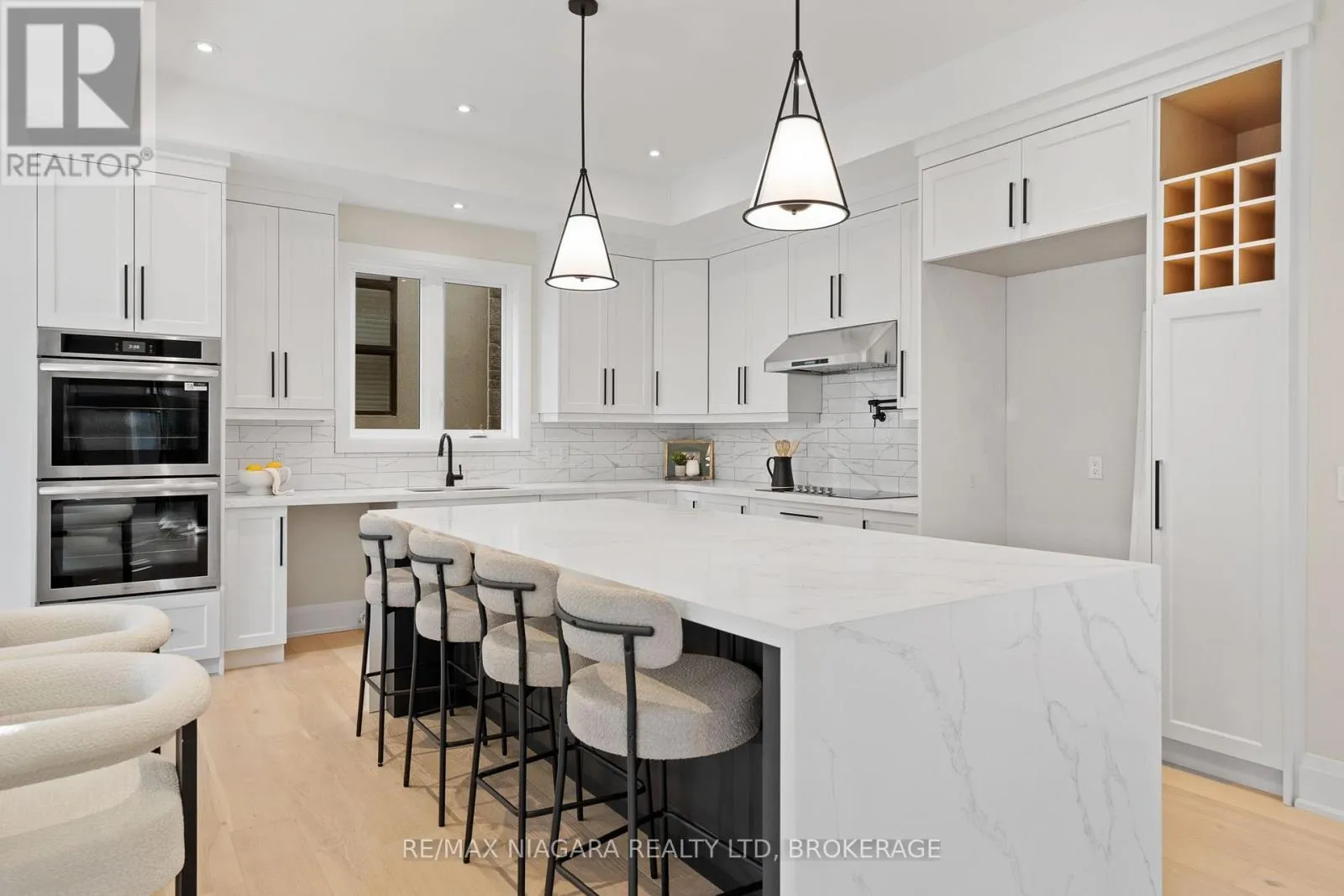 Tanbark Rd to Kenmir Ave Featuring over 4,400 finished sq. ft. of elegant living space, this exceptional residence offers 4 bedrooms plus an office and 4 full bathrooms. Designed for multi-generational living, the home showcases 2 kitchens and 2 laundry rooms, providing the perfect balance of convenience, privacy, and togetherness. A private elevator ensures effortless access to all levels, while the double-car garage and finished exposed aggregate driveway add both functionality and curb appeal. The lower level features a bright office, laundry area with a side door exit, a full bathroom, and a spacious kitchen. On the main floor, a chef's kitchen awaits, complemented by a second laundry room, a primary bedroom retreat with a spa-like ensuite, and two additional bedrooms sharing a main bathroom. Patio doors open from the kitchen to a covered deck, perfect for entertaining family and friends. The third level is an entertainer's dream, highlighted by a stunning great room with a balcony to savour sweeping views of the Niagara Escarpment, Lake Ontario, and the Toronto skyline. An additional bedroom and full bathroom complete this floor, offering even more flexibility and space. Situated in the beautiful village of St. Davids, this remarkable home is just steps from world-class wineries, local shops, and only a short drive to Historic Old Town Niagara-on-the-Lake and the world-famous Niagara Falls. 13 Kenmir Avenue, where luxury, comfort, and location come together to create an unparalleled lifestyle. (id:27476)