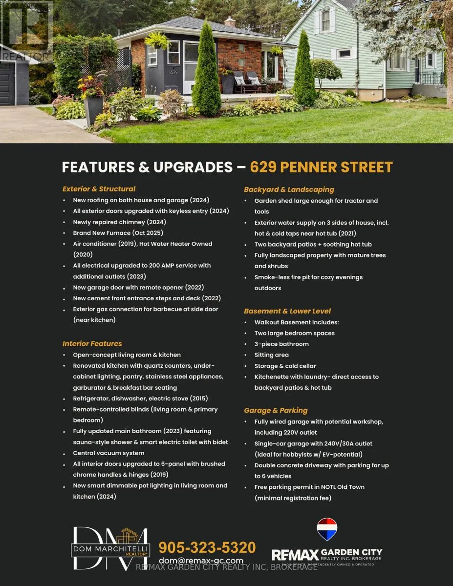 Cross Streets: Four Mile Creek Rd. & Niagara Stone Rd. ** Directions: Four Mile Creek Rd. to Penner St. Discover the charm and convenience of 629 Penner Street, a cozy bungalow in the heart of Virgil, one of Niagara-on-the-Lake's most desirable communities. Known for its small-town warmth, rural charm, vineyards, orchards, and local markets, Virgil combines convenience with the beauty of wine country. Just minutes from historic Old Town, you'll enjoy world-class wineries, award-winning restaurants, and boutique shops lining the picturesque main street-all without the congestion of peak-season crowds. The charming curb appeal immediately draws you in. Inside, natural light, hardwood flooring, and an open-concept design set the tone. The renovated kitchen features quartz countertops, SS appliances, and a pantry that flows seamlessly into the dining and living areas, ideal for daily living and entertaining. Two comfortable bedrooms and a fully renovated 3-piece bathroom complete the main level. The basement offers two additional bedroom spaces, a sitting area, a 3-piece bath, and a kitchenette perfect for guests, in-law living, or rental income. The walkout basement sets this home apart, leading to a backyard oasis embraced by mature trees, calming sounds of nature, and a bubbling hot tub. From summer evenings sipping wine to autumn's colours and winter nights under the stars, this retreat offers year-round enjoyment you'll love. The location is exceptional: just minutes to Virgil's everyday conveniences, groceries, schools, and parks, yet a short drive to world-class wineries, Old Town's boutique shops, renowned dining, and the Shaw Festival Theatre. Move-in ready with worry-free living- Furnace- 2025, Roof-2024, Electrical-200 Amp- 2023, A/C 2019, C/VAC, HWT owned. At 629 Penner Street, every day feels like a getaway where charm, nature, and convenience come together in one of the world's most picturesque and historically rich destinations. Ideal for downsizers, vacation home owners, short-term rental investors, or anyone dreaming of the Niagara-on-the-Lake lifestyle. (id:27476)
