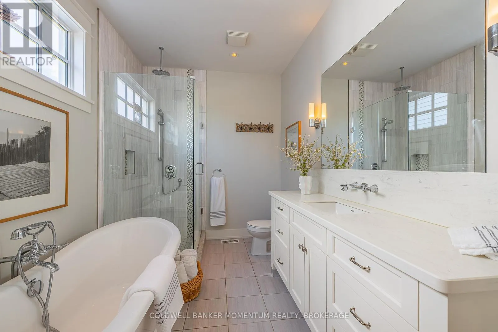 Cross Streets: ANDRES / LINE 2 HWY 55 - ANDRES - LINE 2. ** Directions: Niagara Stone Road to Line 2 Road. Custom designed and built absolutely stunning 4+ bedroom, 3.5 bath home that will exceed any meticulous buyers expectations. Great curb appeal and beautiful entrance welcomes you to the foyer which is flanked by the main floor primary bedroom with a spa like bath & walk-in closet, and a second bedroom which can easily be used as a den. Pass by the powder room and laundry and across the sun drenched back of the home is the great room with custom built-ins either side of the gas fireplace a gorgeous kitchen where you will find an abundance of storage and solid surface counters to prepare meals to entertain guests and family. The cozy dining room leads to the private fully fenced yard with pergola covered hot tub area an outdoor dining area and a very secluded gathering area. The upper level has two generous sized bedrooms, a full bath and a huge bright family room. Access to the basement is off the garage and through the laundry so one can easily accomodate a private multi generational setup in the basement. The basement offers a huge recreation / games room with bar. There is a fourth bedroom or craft room, ample storage, and full bath. This home is conveniently located close to all community amenities and schools. Don't hesitate to view this one of a kind truly turn key oppotunities (id:27476)